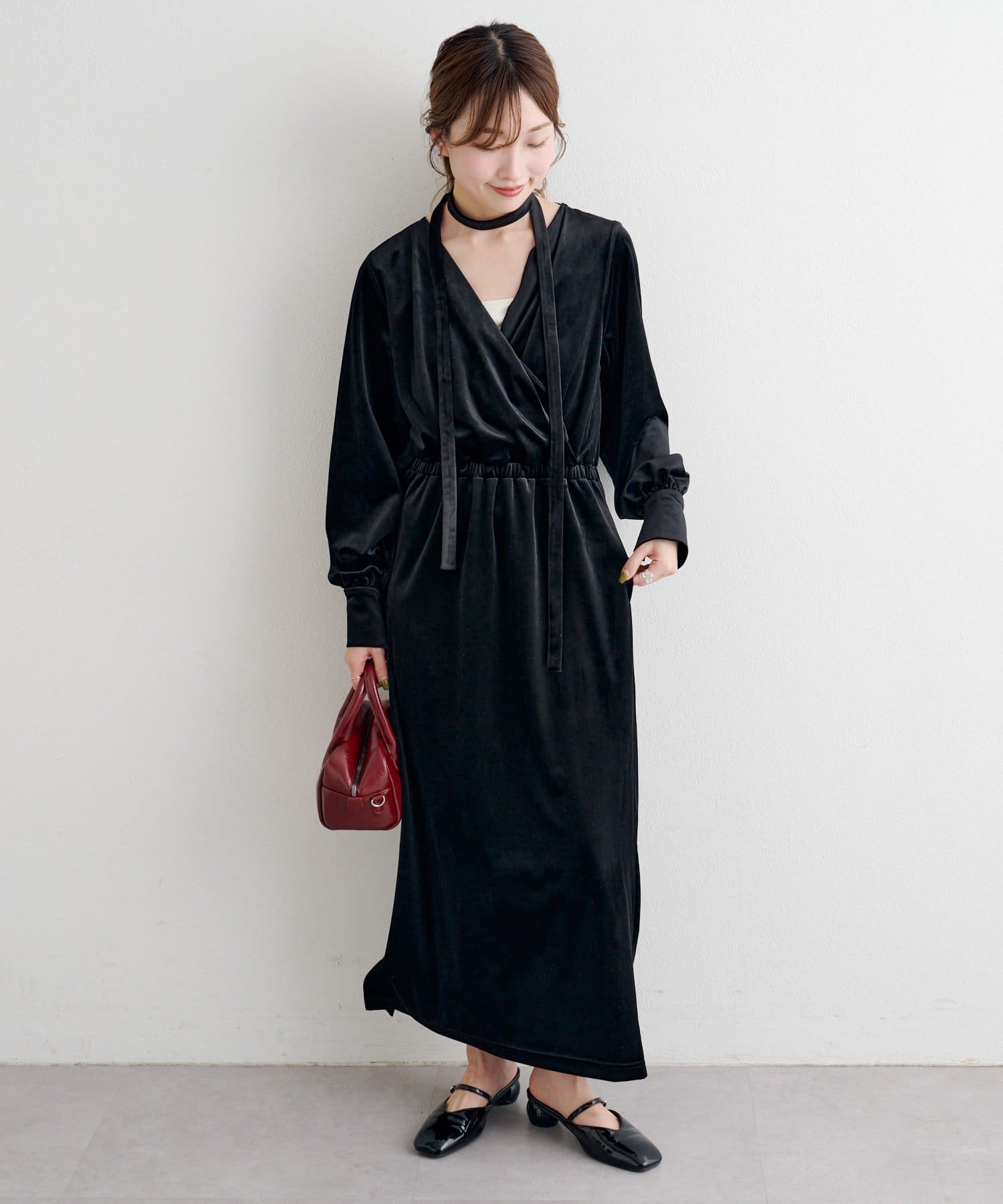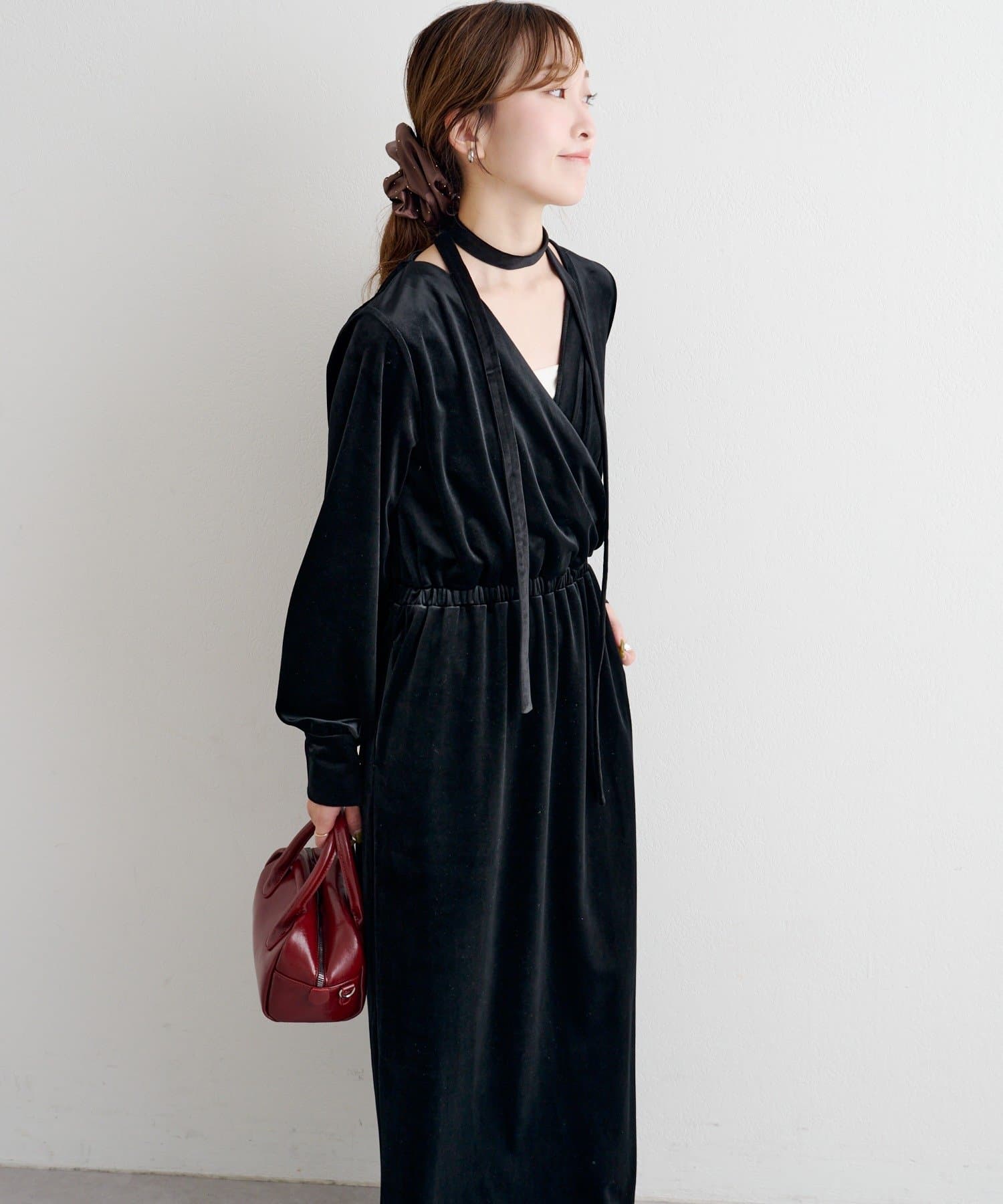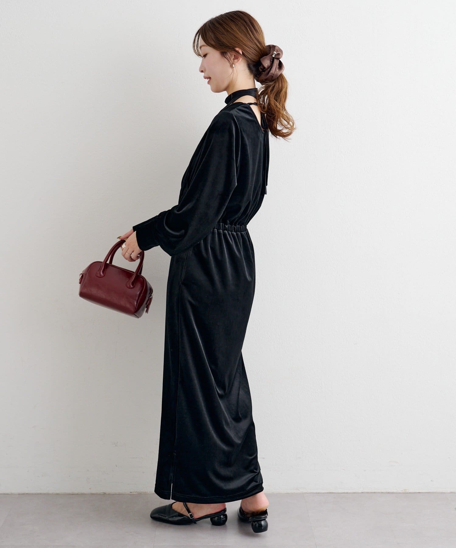 上品な光沢感が魅力のベロア素材を使用した2WAYワンピース