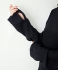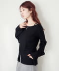 デコルテをきれいに見せてくれるボートネックデザインと、袖口のフレアシルエットが女性らしい抜け感を演出します。