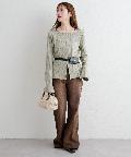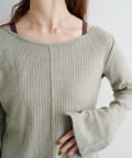デコルテをきれいに見せてくれるボートネックデザインと、袖口のフレアシルエットが女性らしい抜け感を演出します。