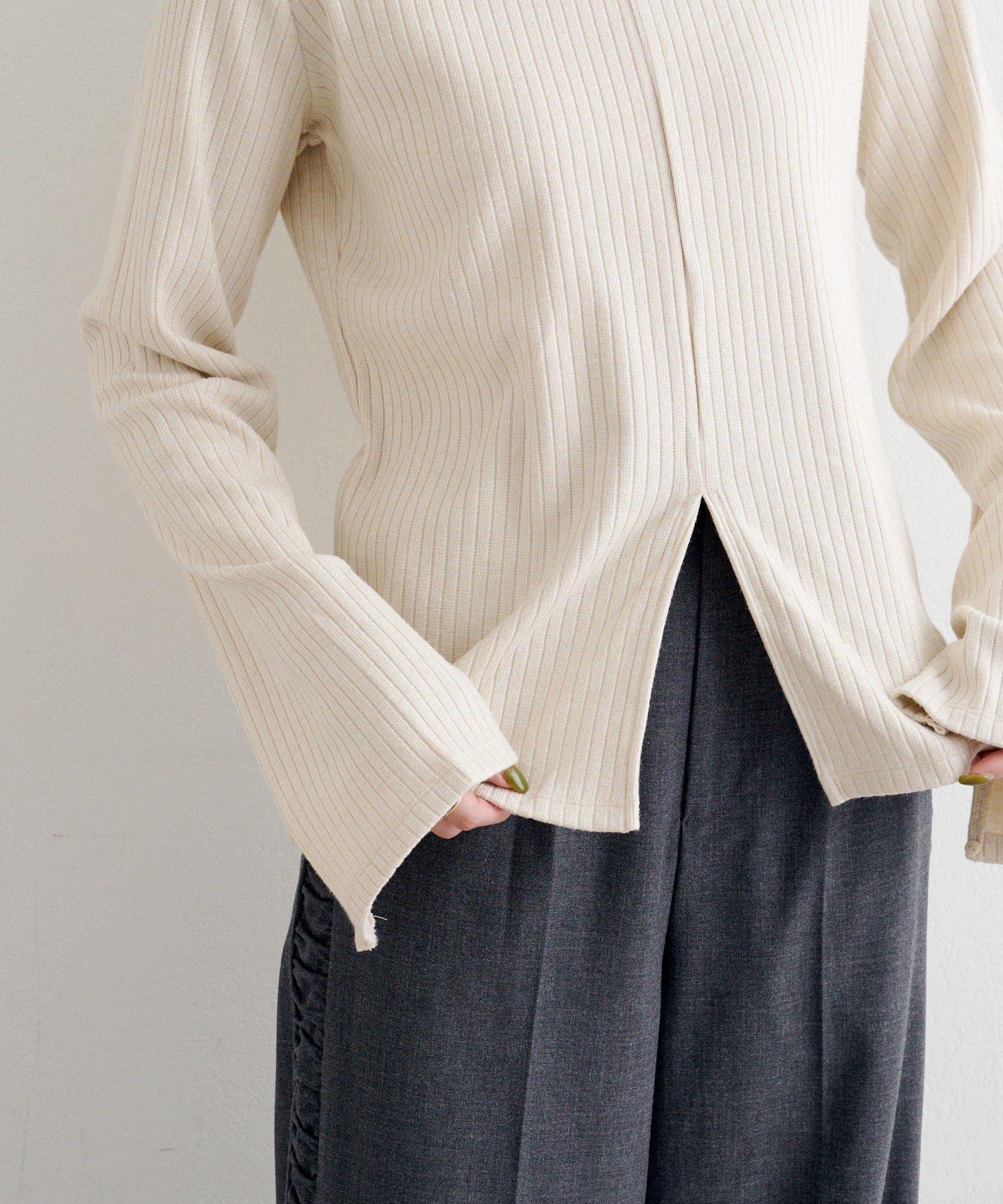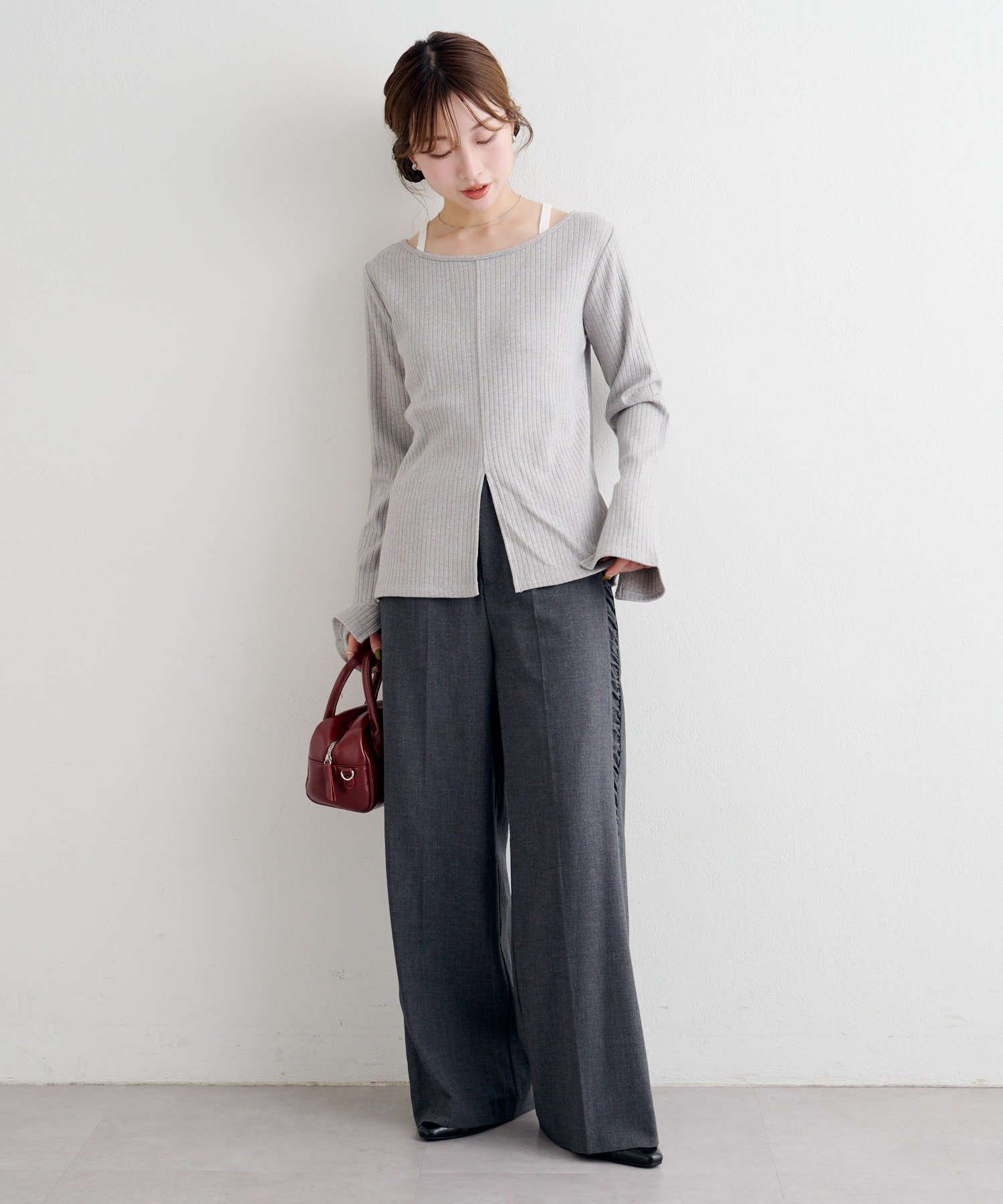 フロントのスリットがアクセントになり、タックイン・アウトどちらでもバランスよく着られる一枚。