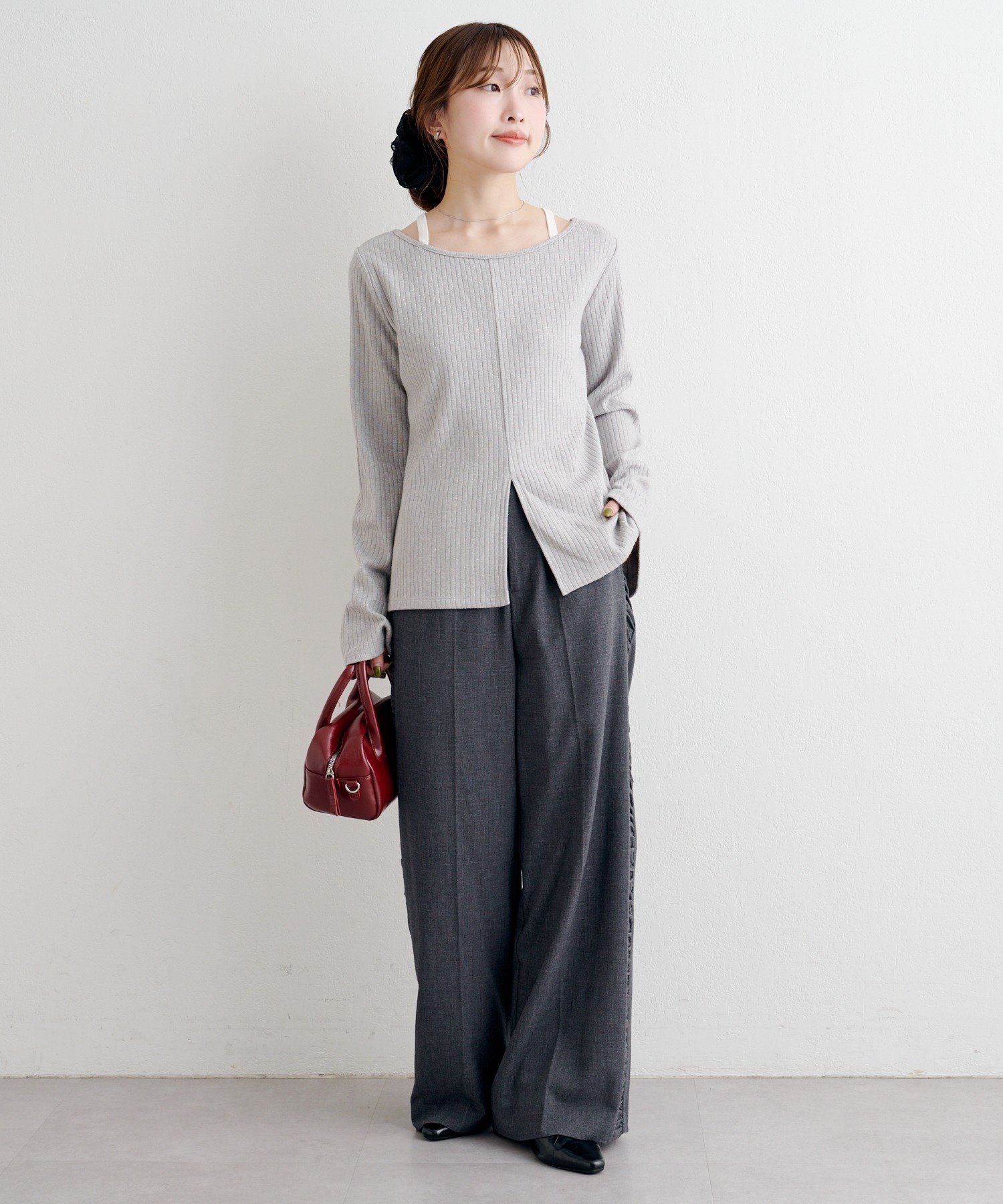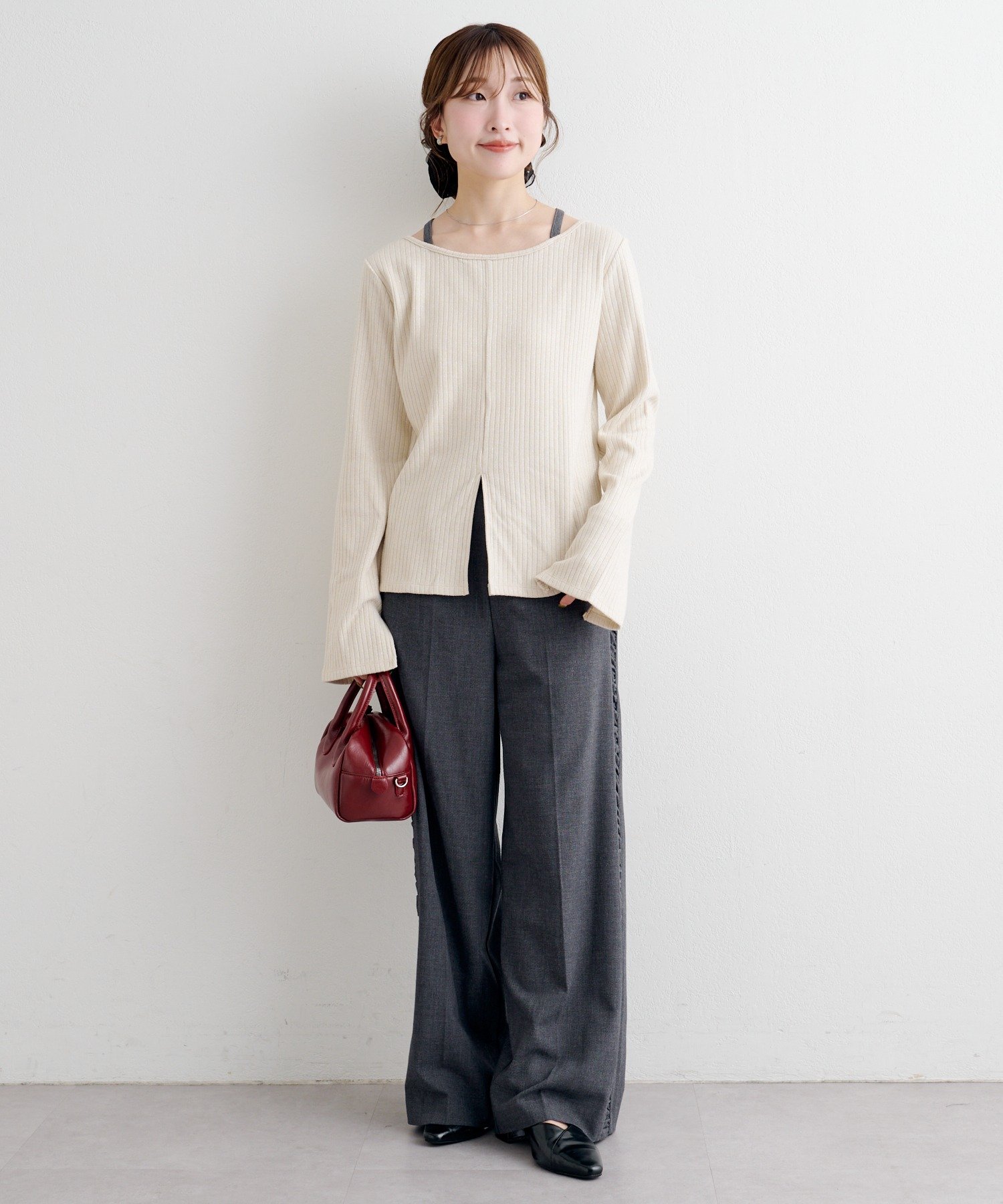 キャミワンピやベストのインナーとしてはもちろん、ワイドパンツやロングスカートと合わせたリラックススタイルにもおすすめ。