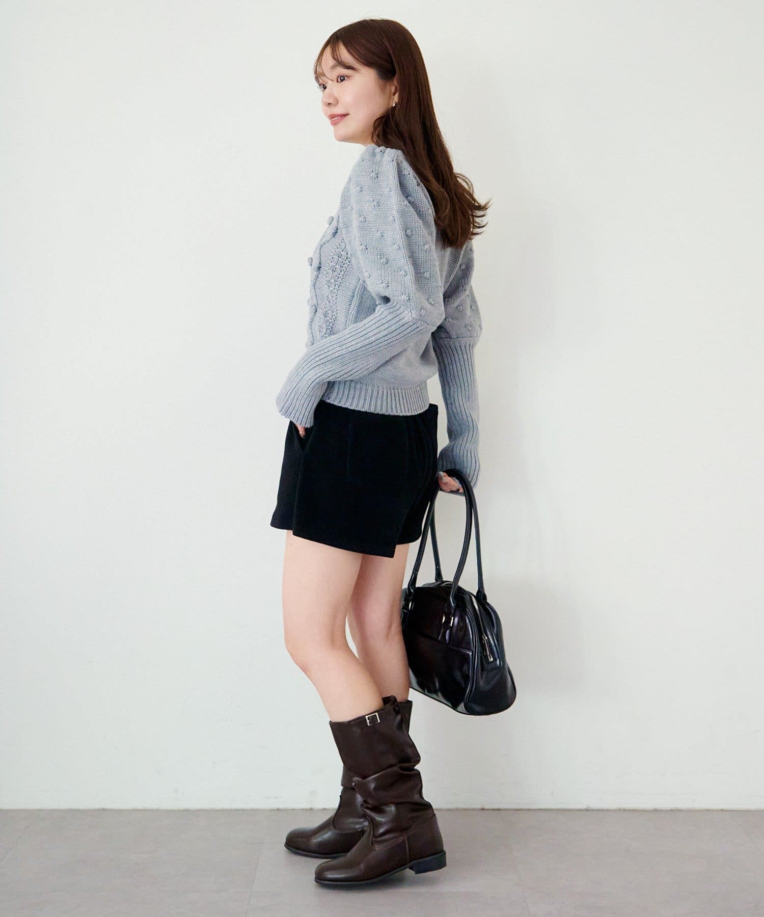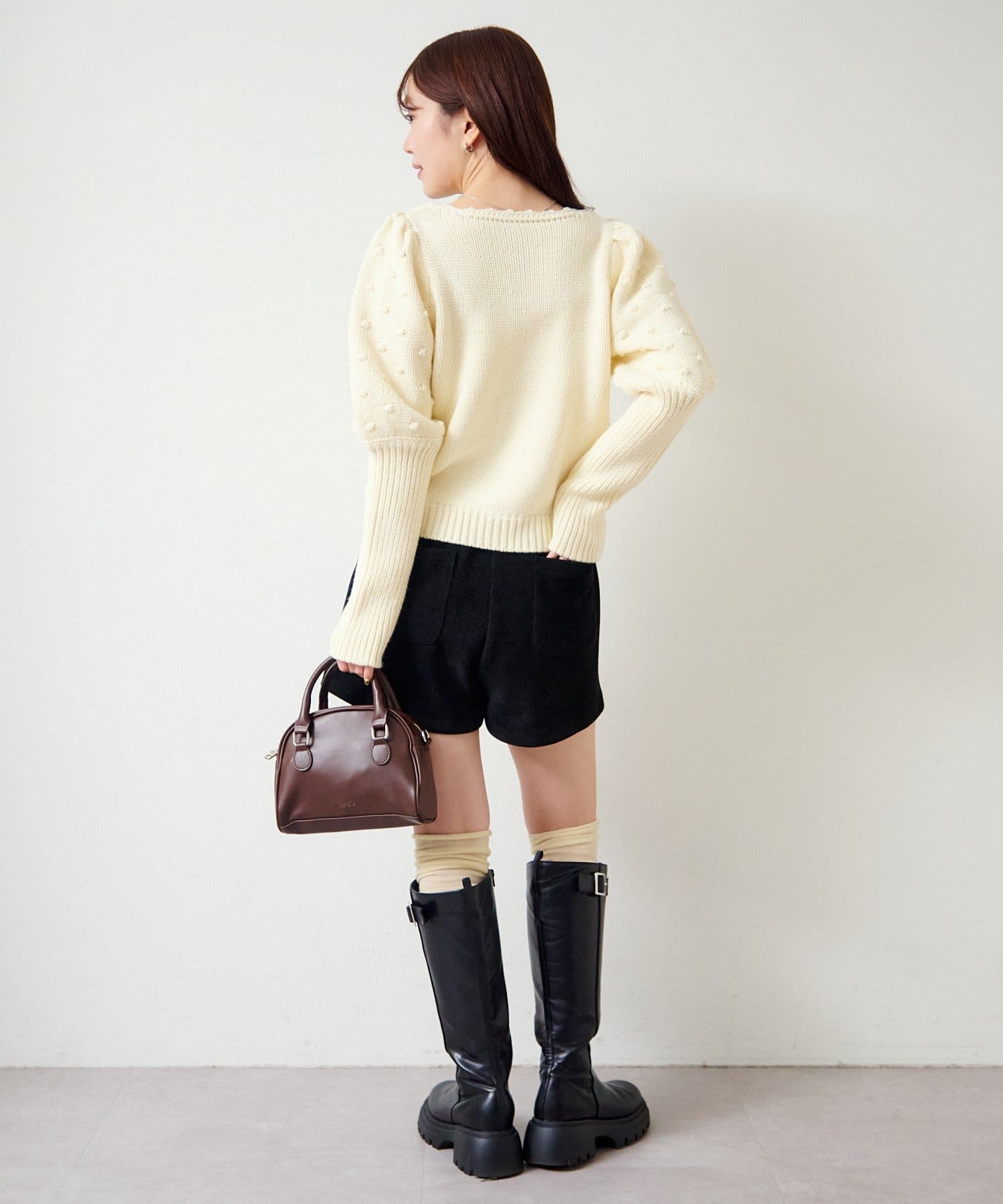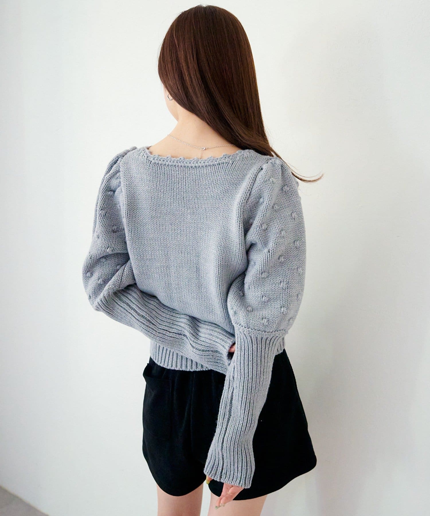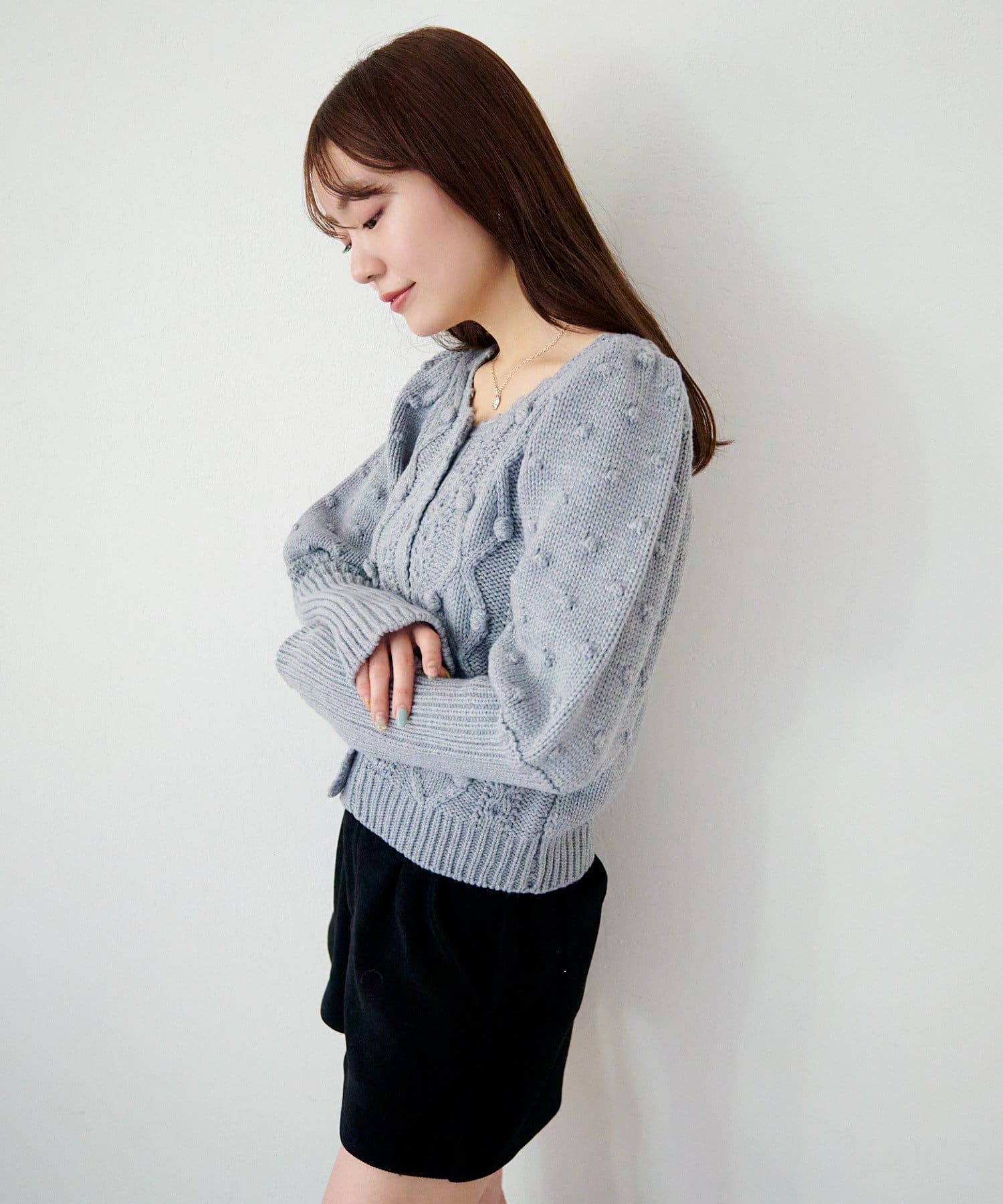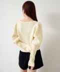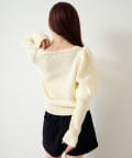 ふんわり柔らかなニット素材で仕立てられており、カジュアルにはもちろん、フェミニンなスタイルにも合わせやすい万能アイテム。