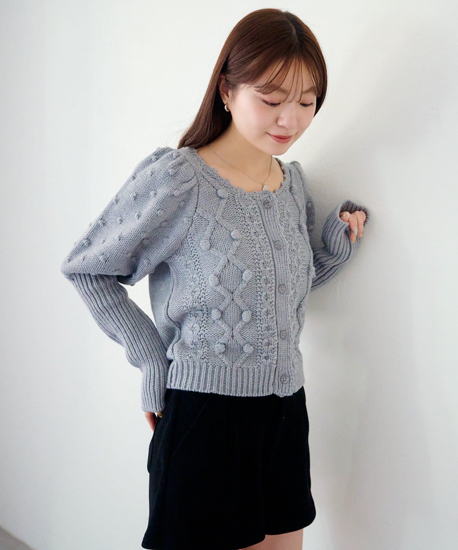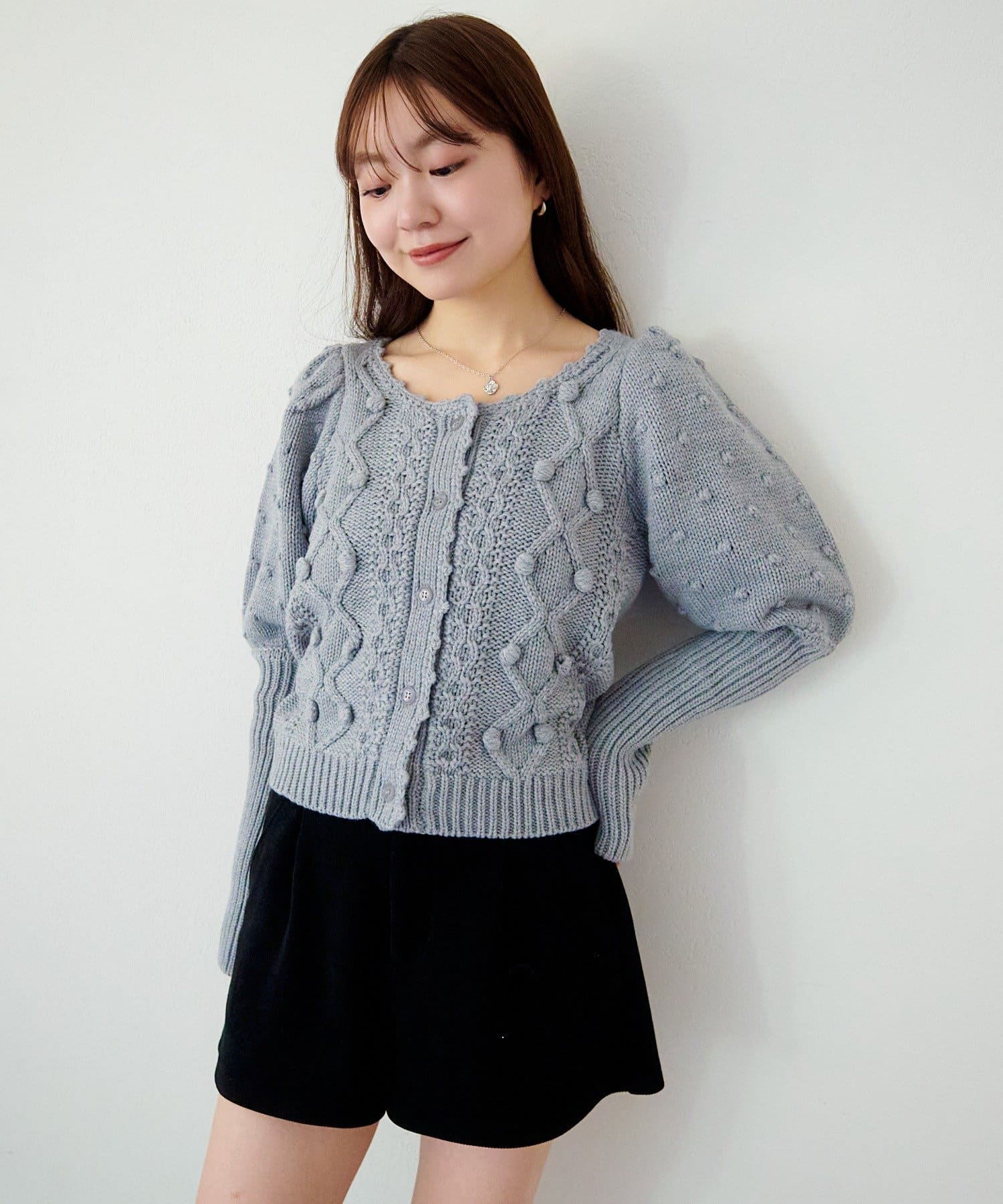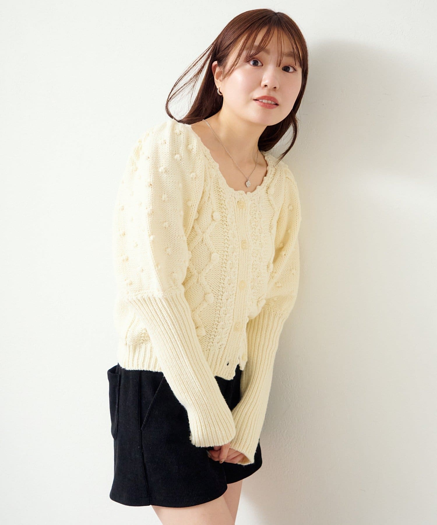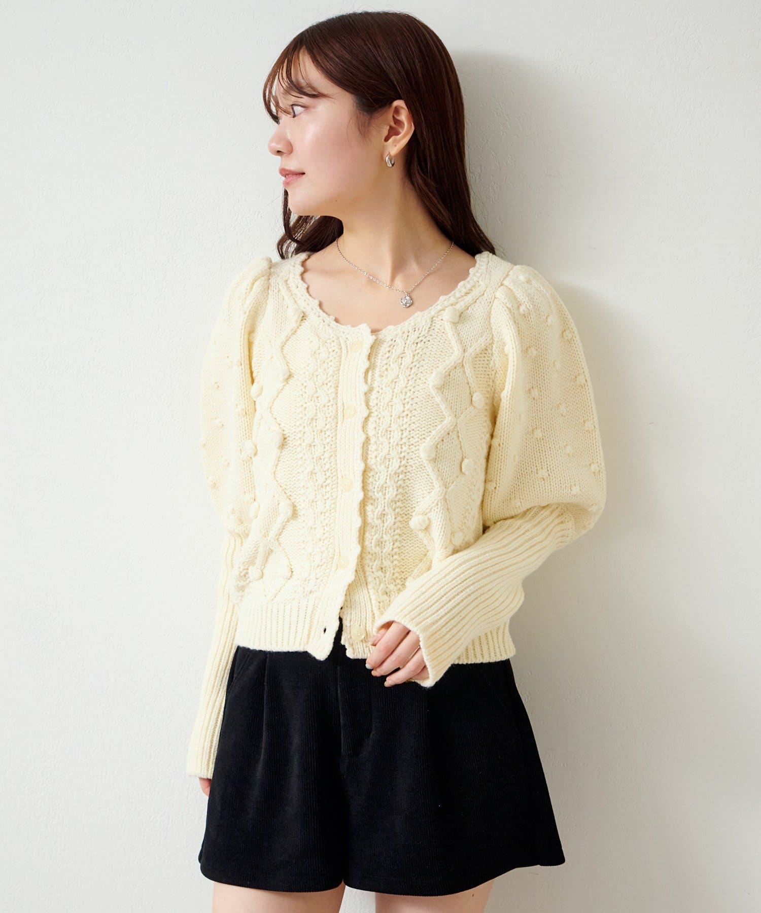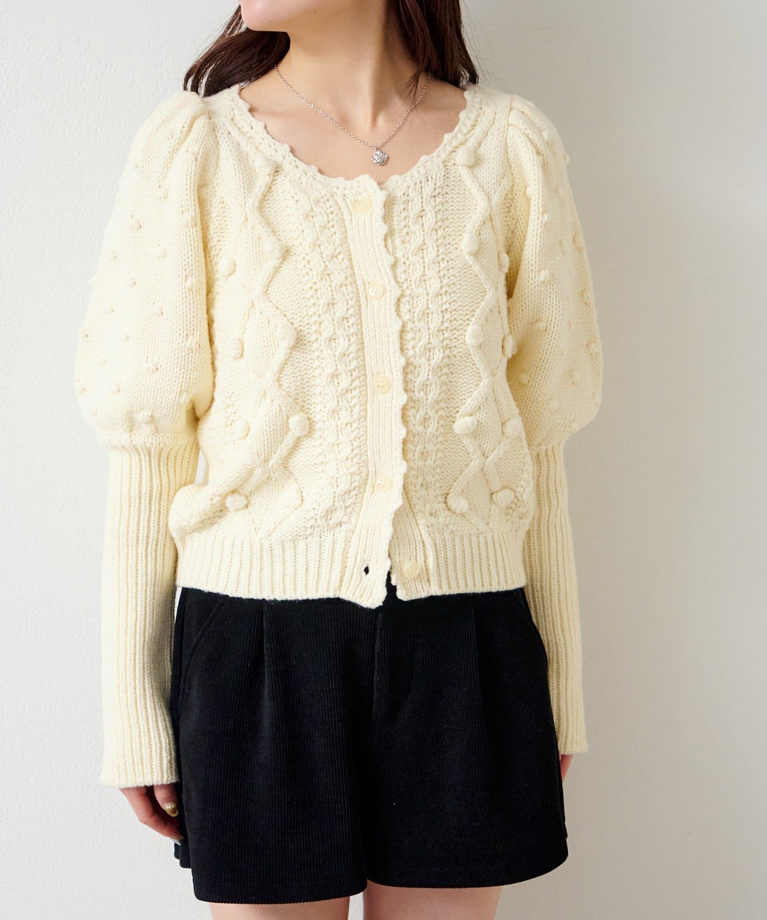 立体ポンポンが可愛さを添える、着るだけでコーデが華やぐニットカーディガン