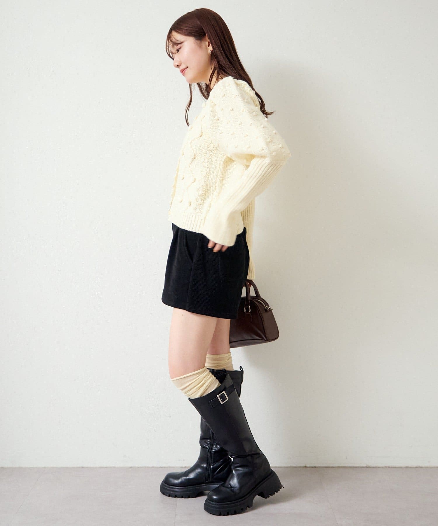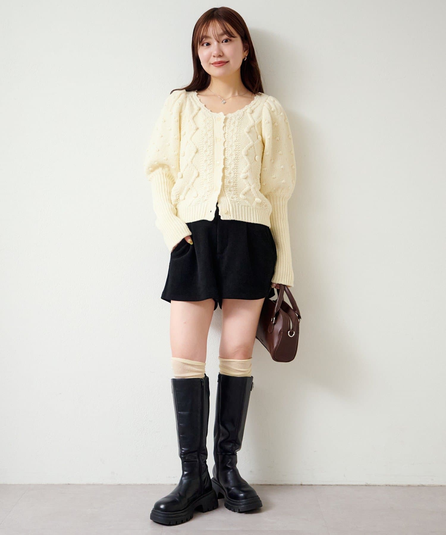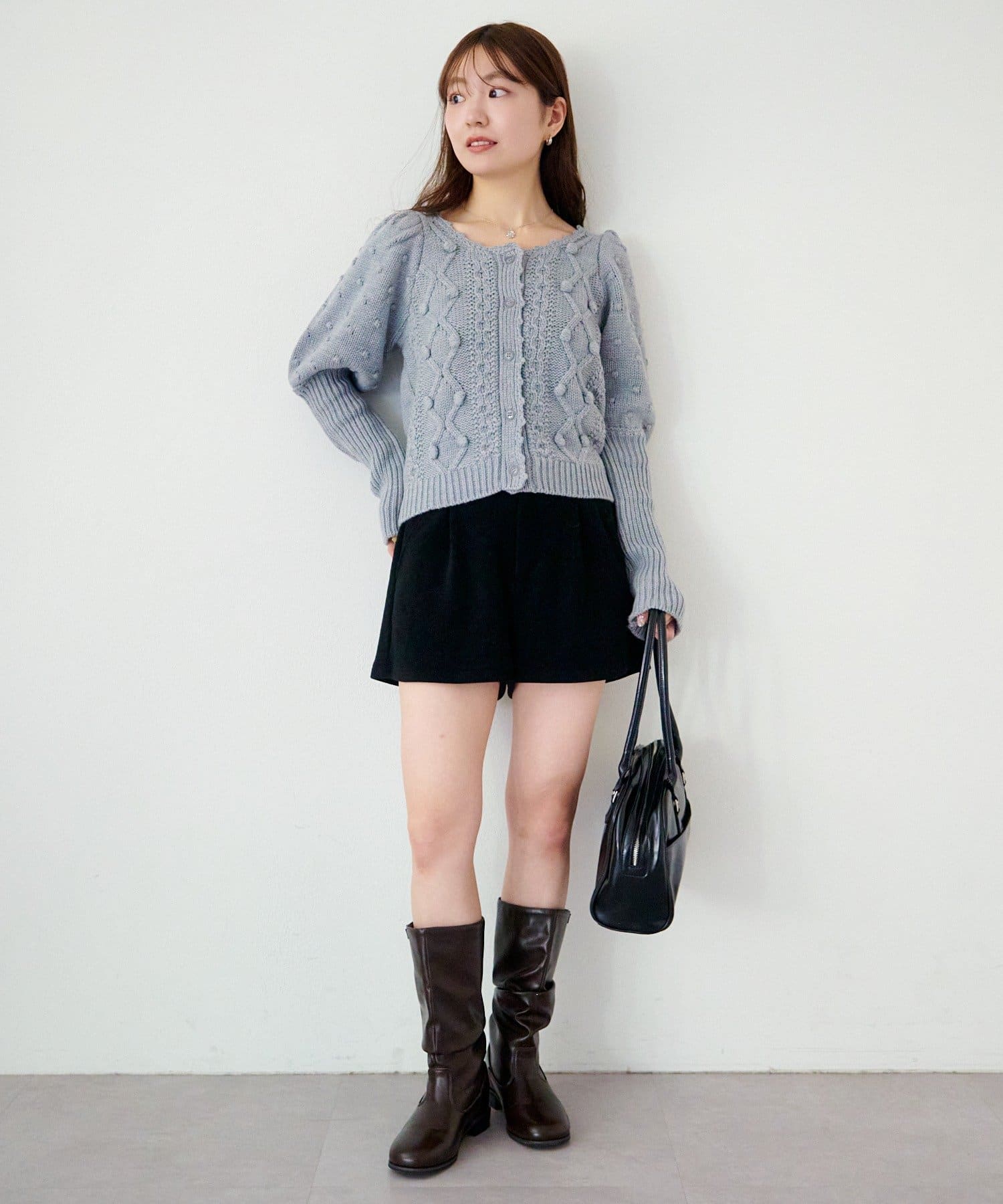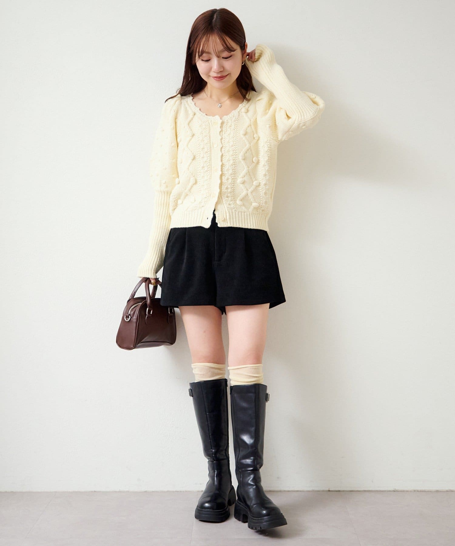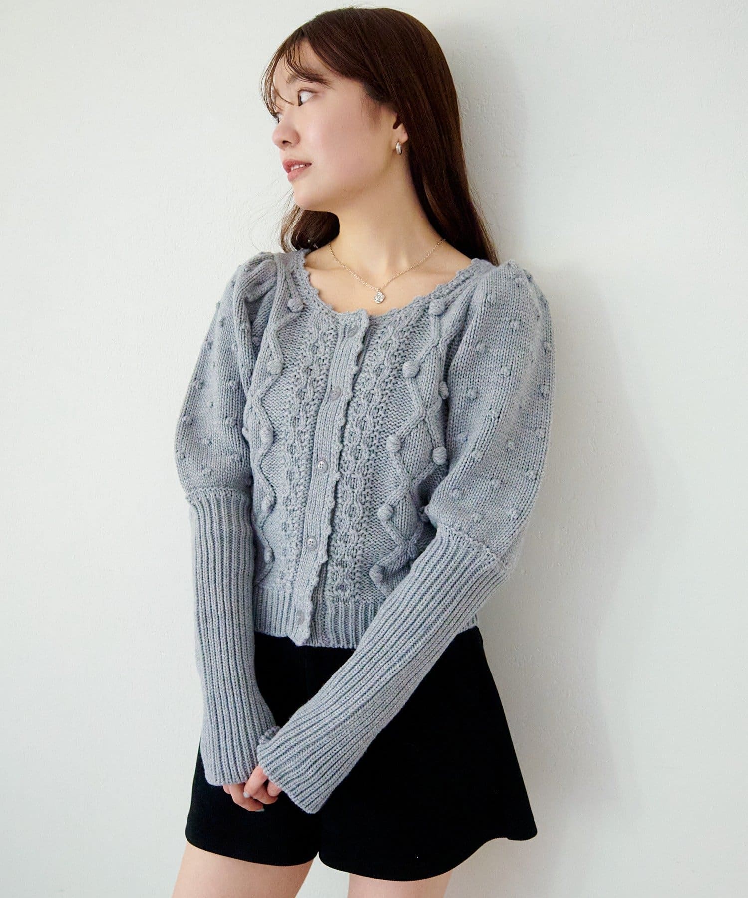 立体ポンポンが可愛さを添える、着るだけでコーデが華やぐニットカーディガン