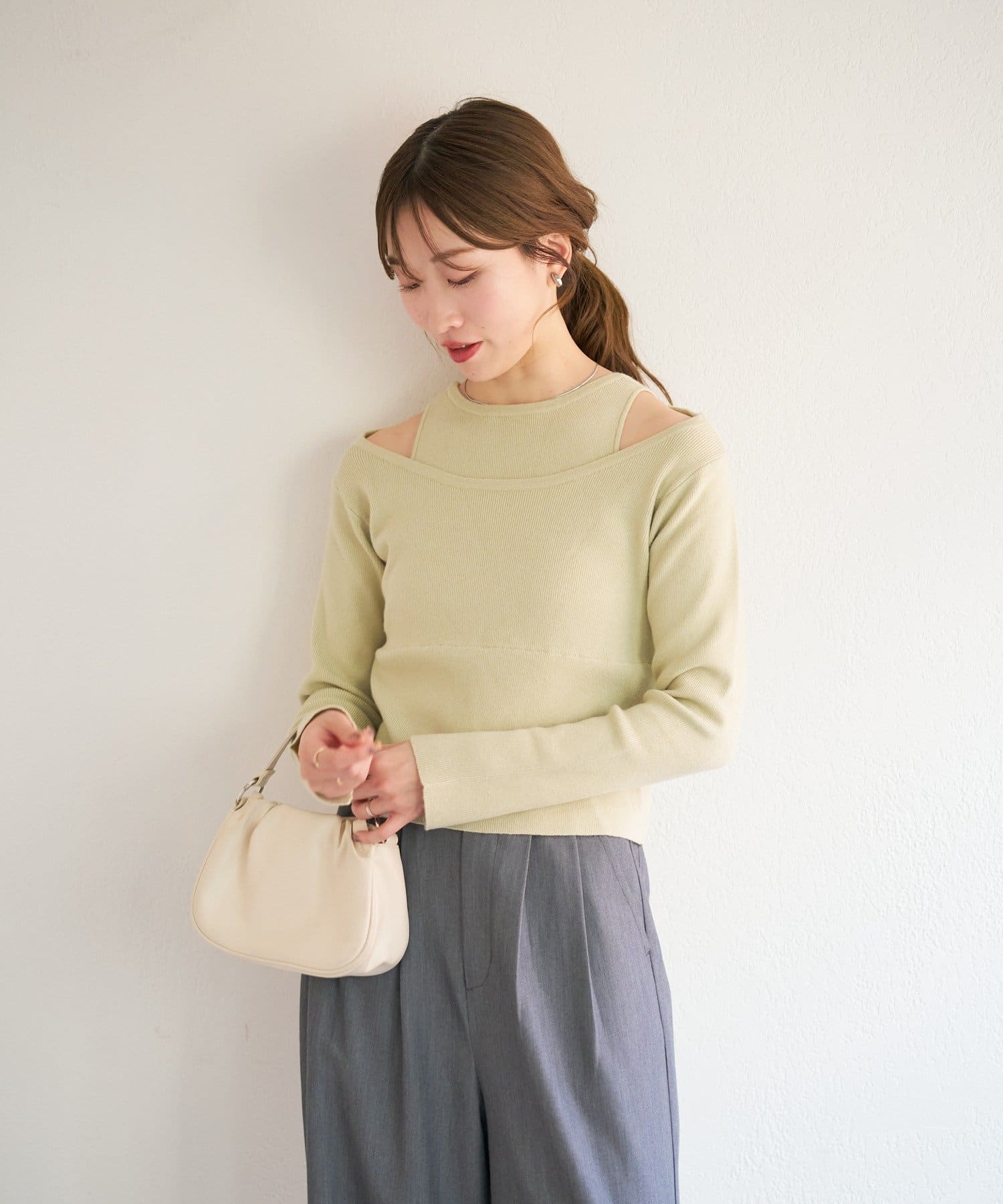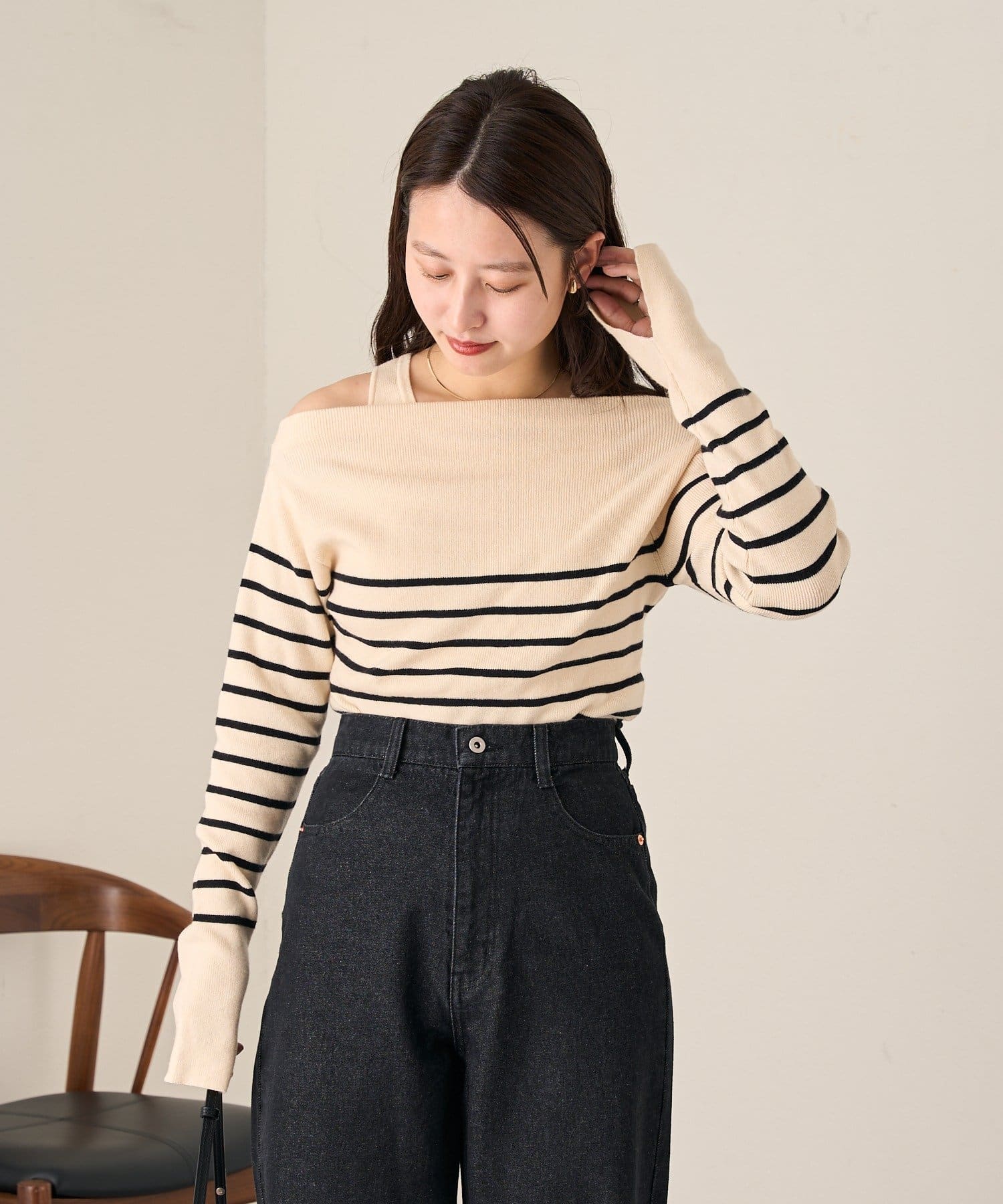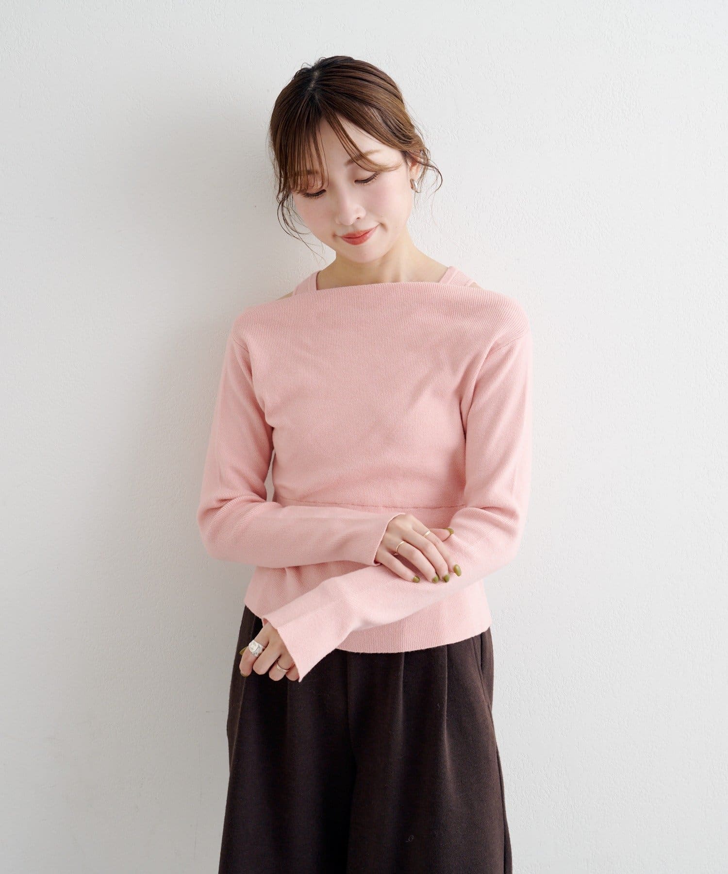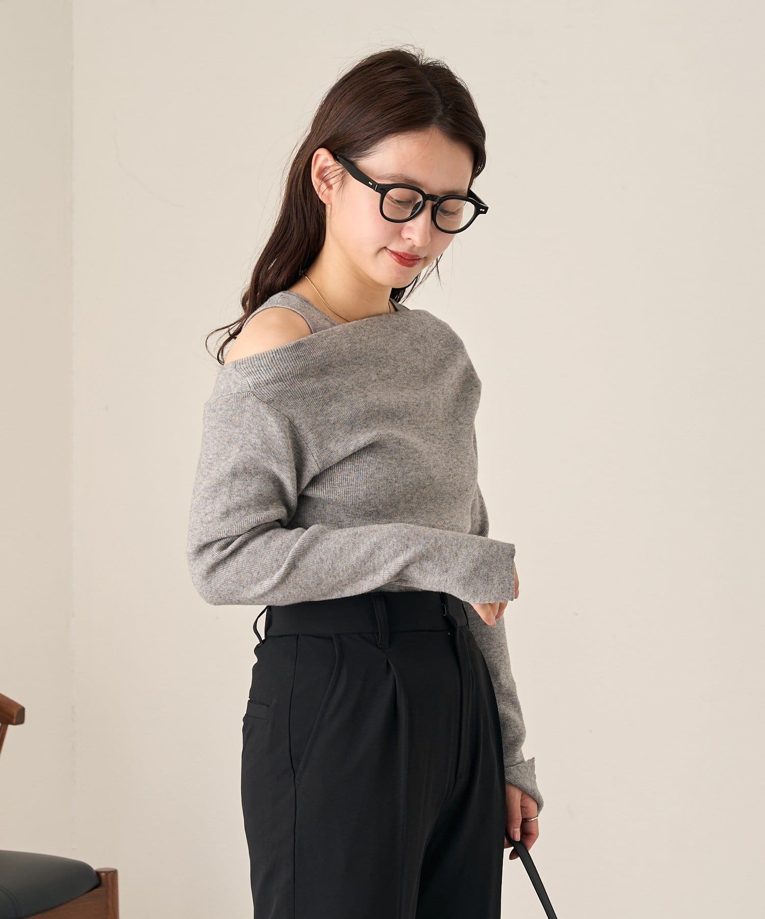 TOP > Kastane > レディース > トップス > ニット/セーター > 【4色展開】B タンク付きオフショルニット