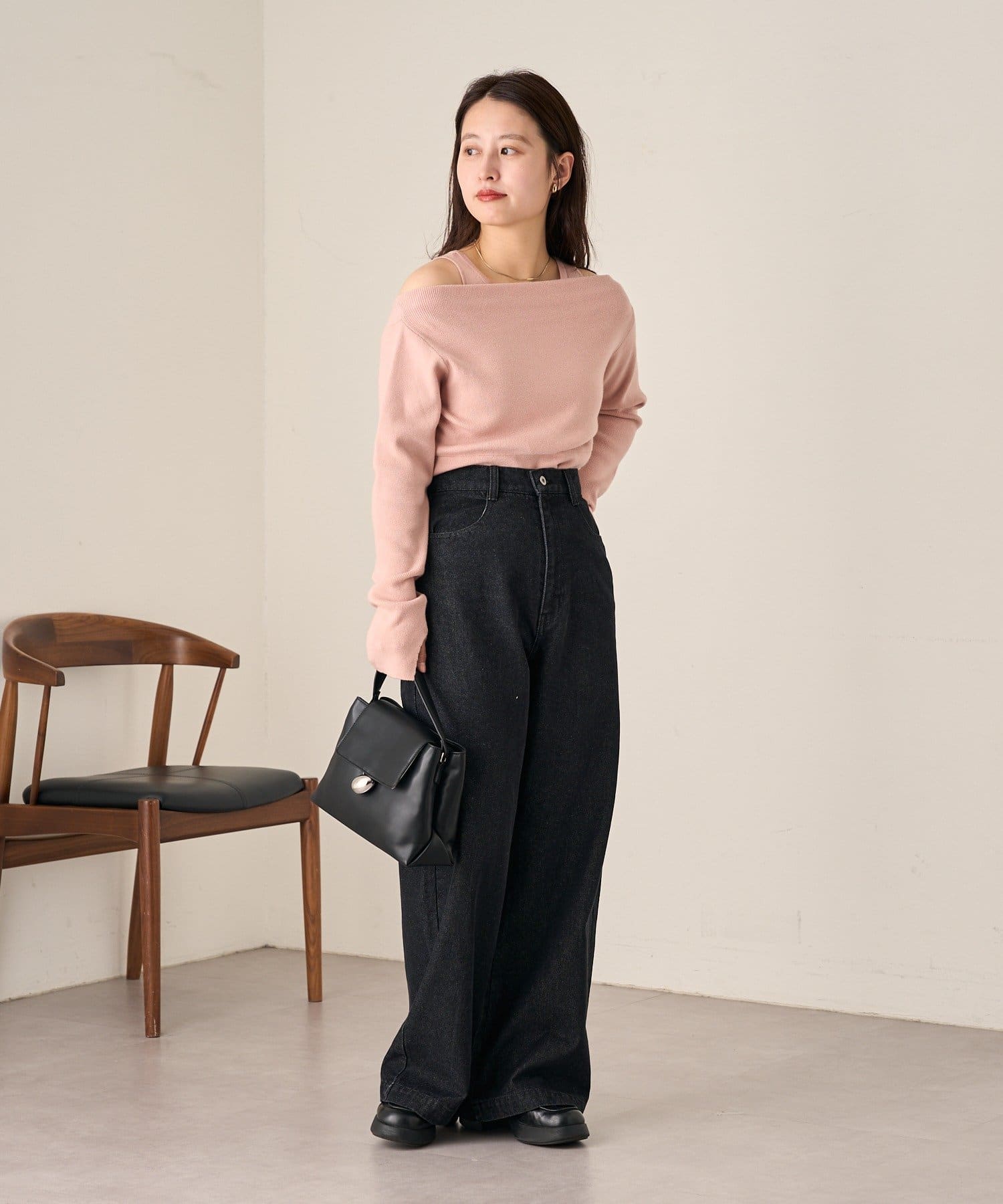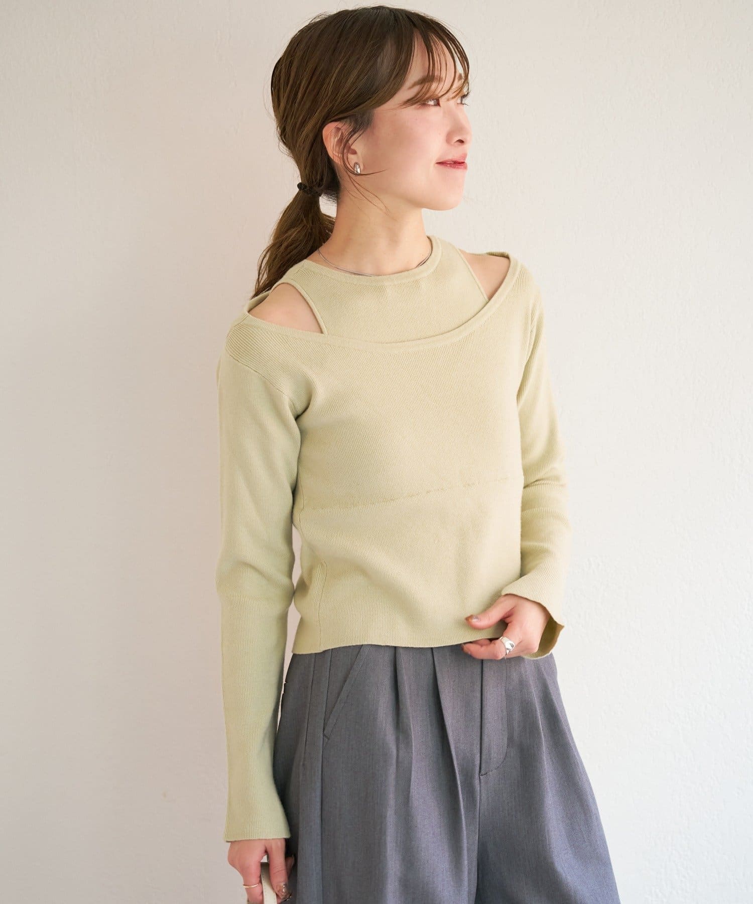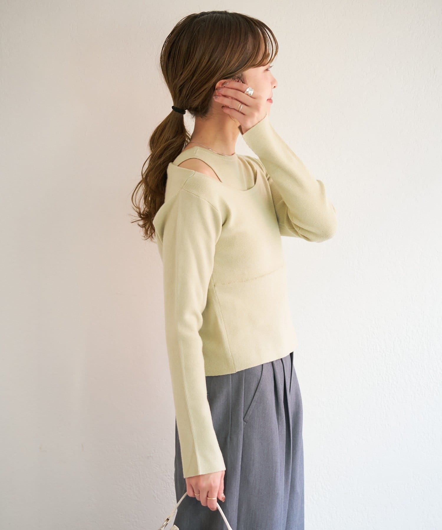 TOP > Kastane > レディース > トップス > ニット/セーター > 【4色展開】B タンク付きオフショルニット