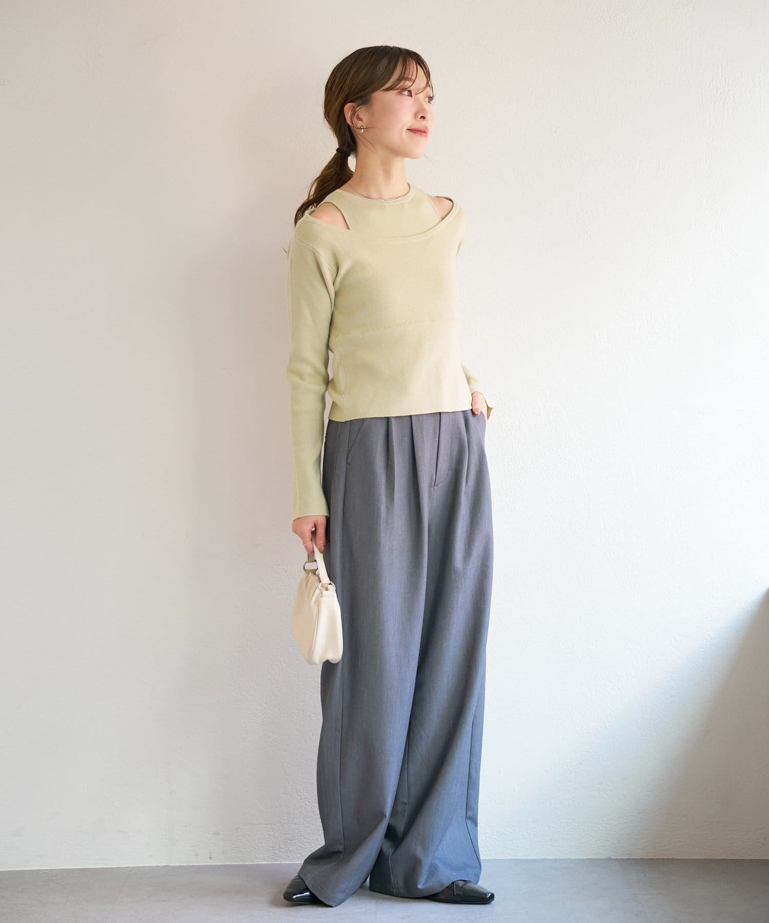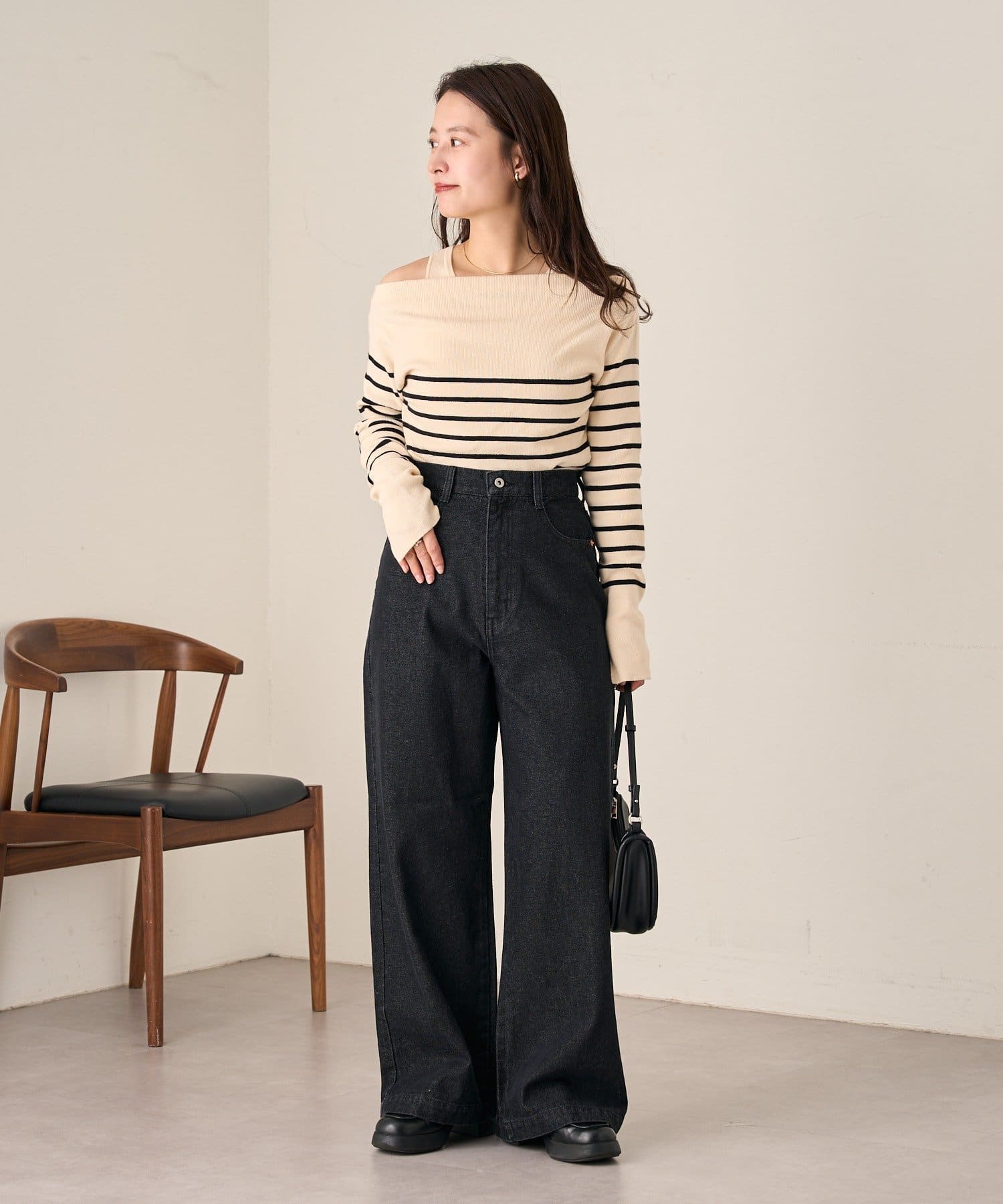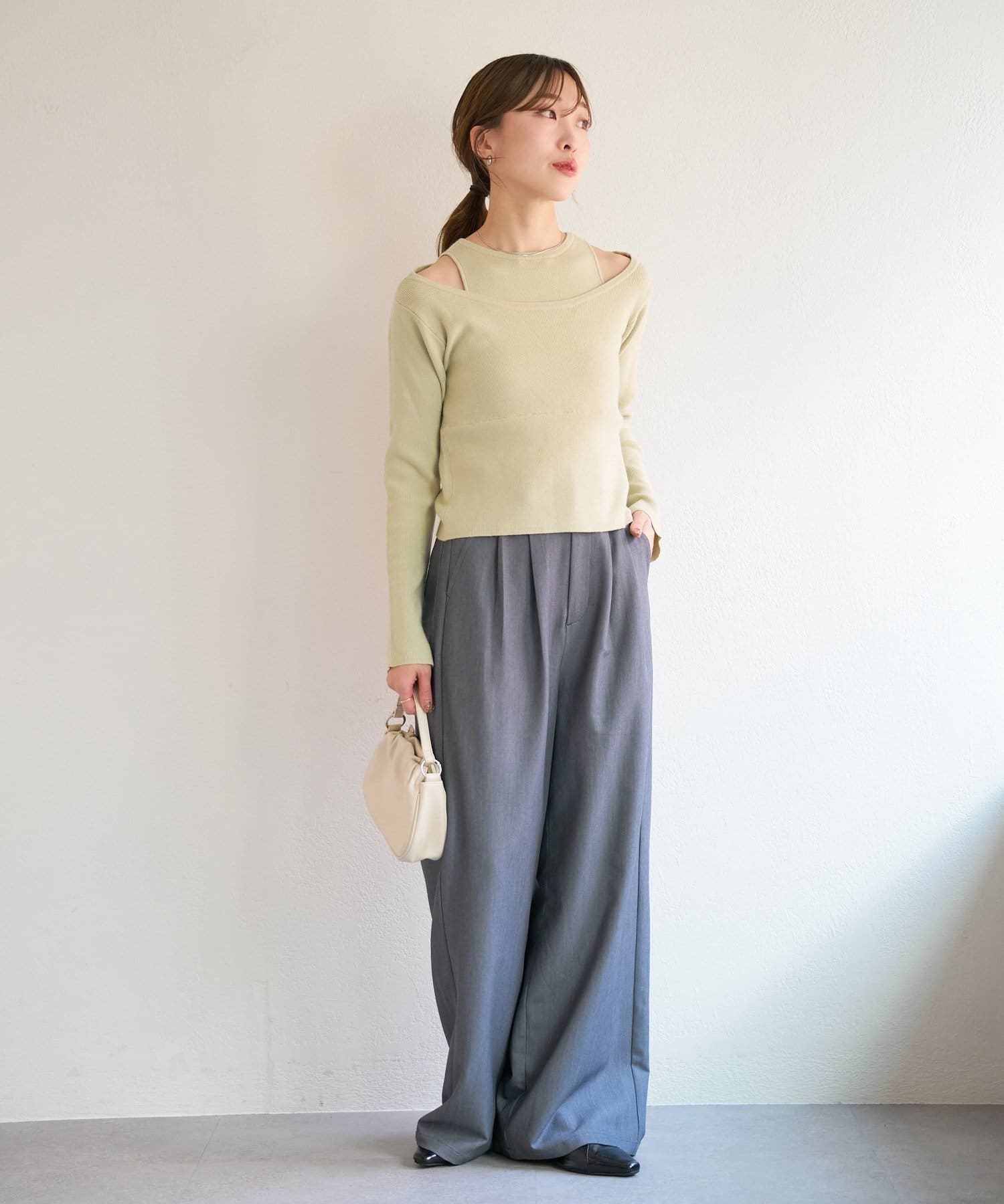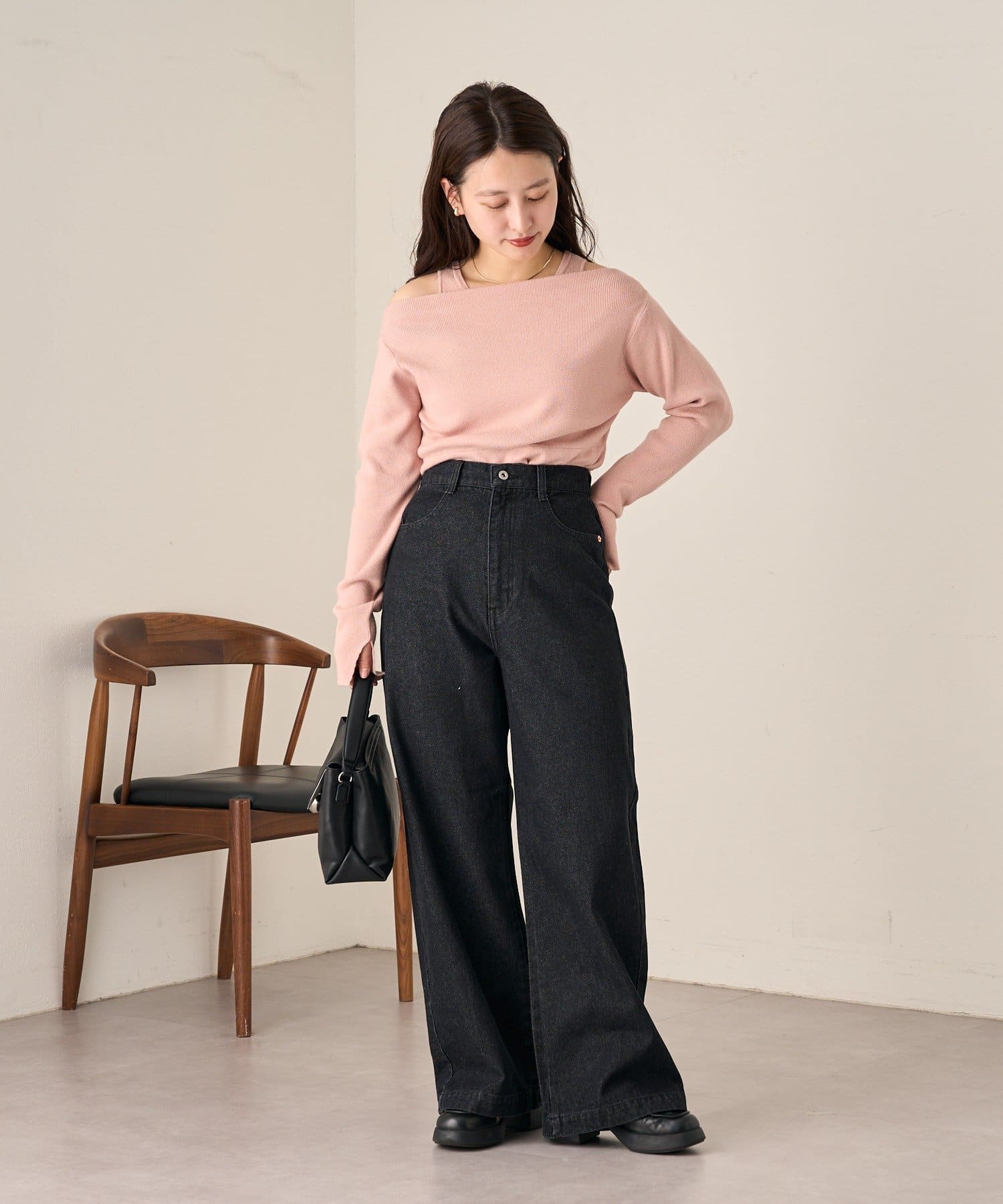 TOP > Kastane > レディース > トップス > ニット/セーター > 【4色展開】B タンク付きオフショルニット