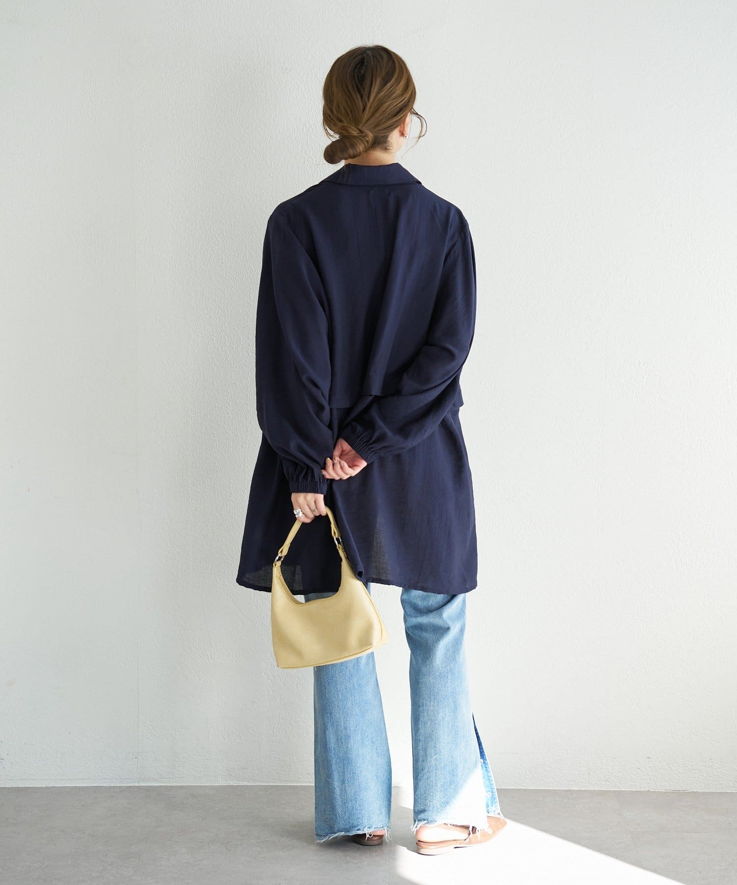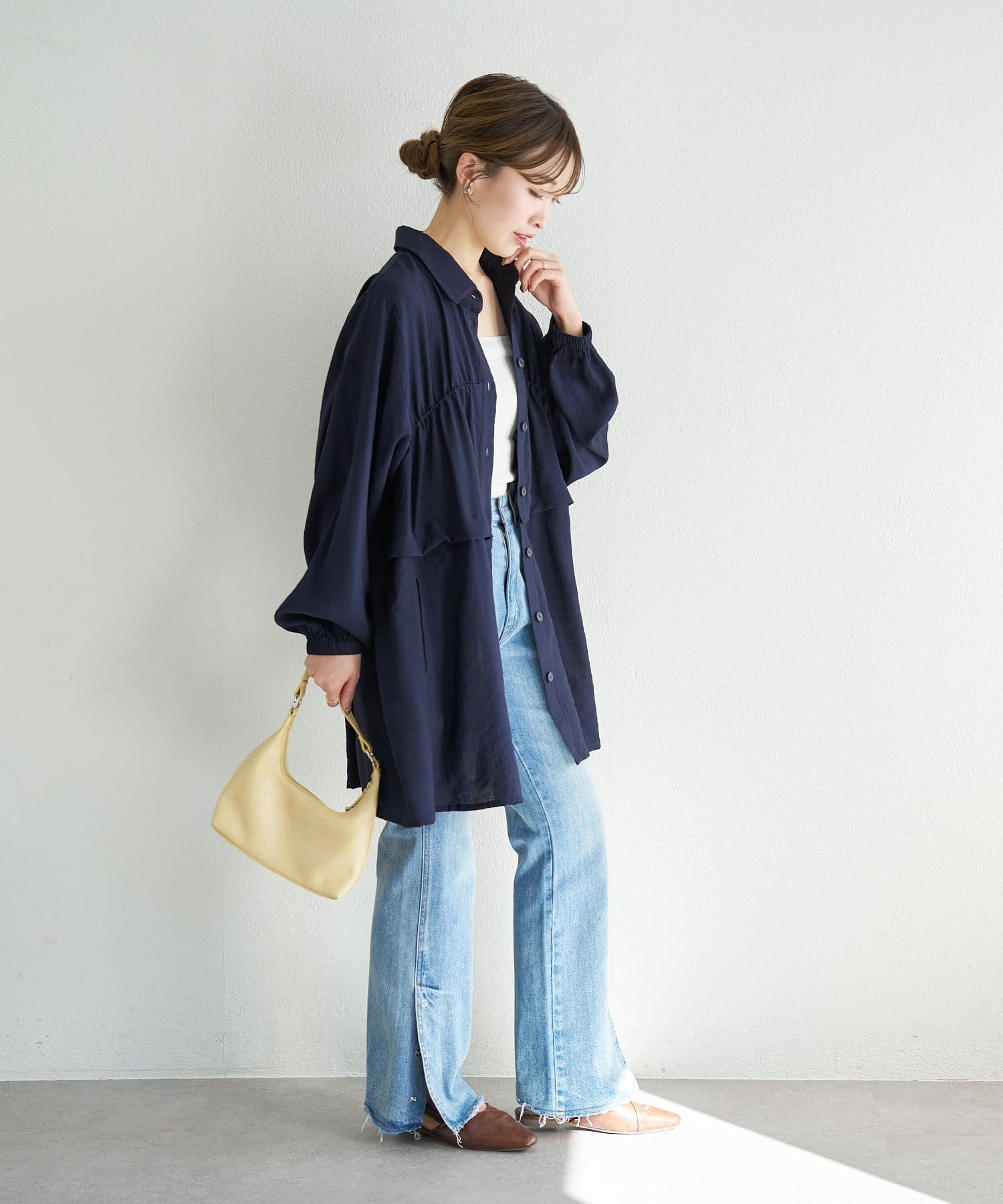フラットシューズやスニーカー合わせでカジュアルに、きれいめ小物で上品にも着こなせます。