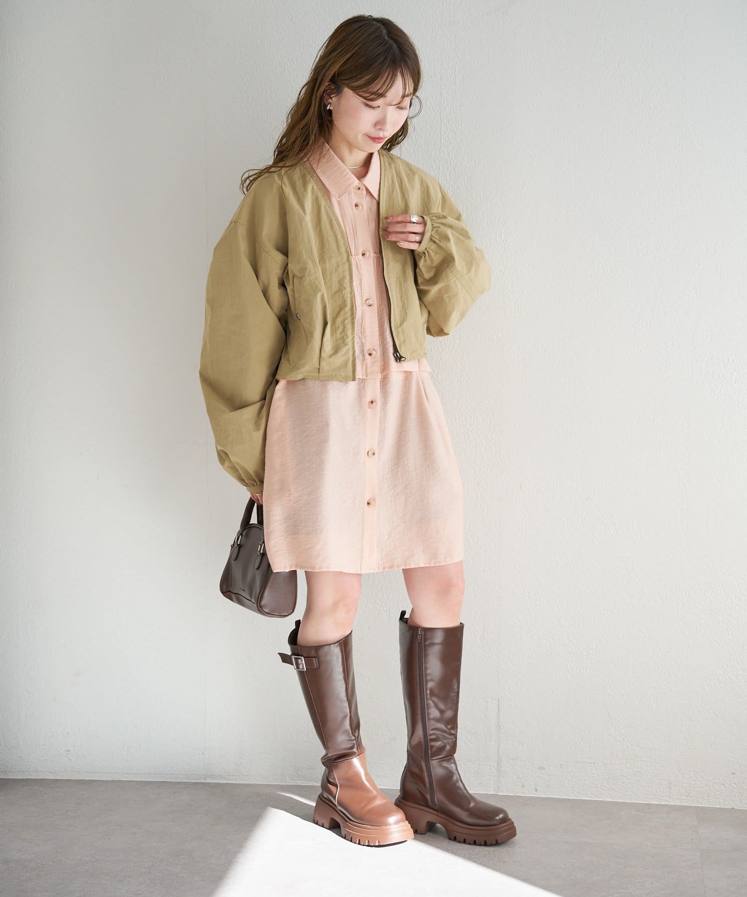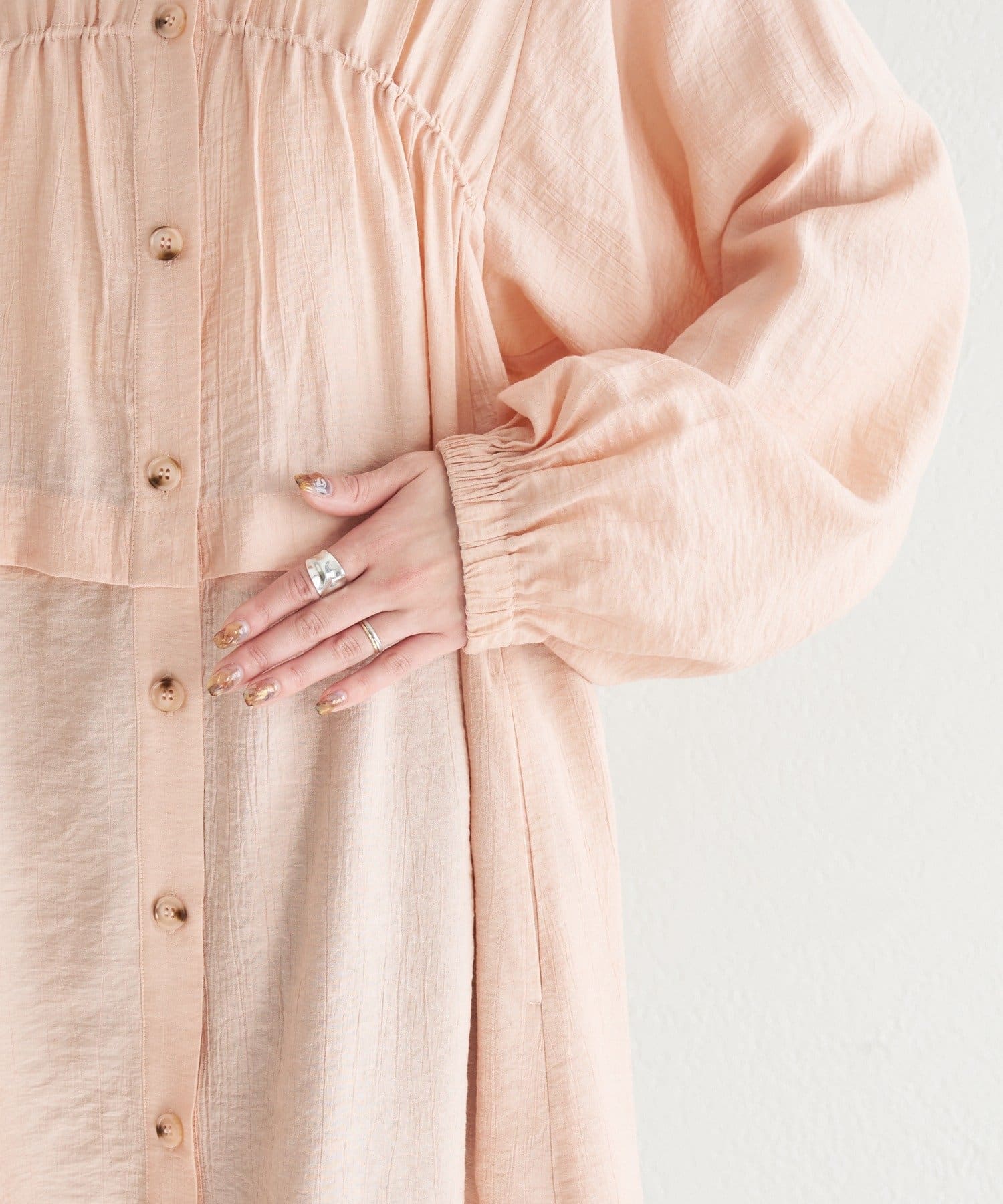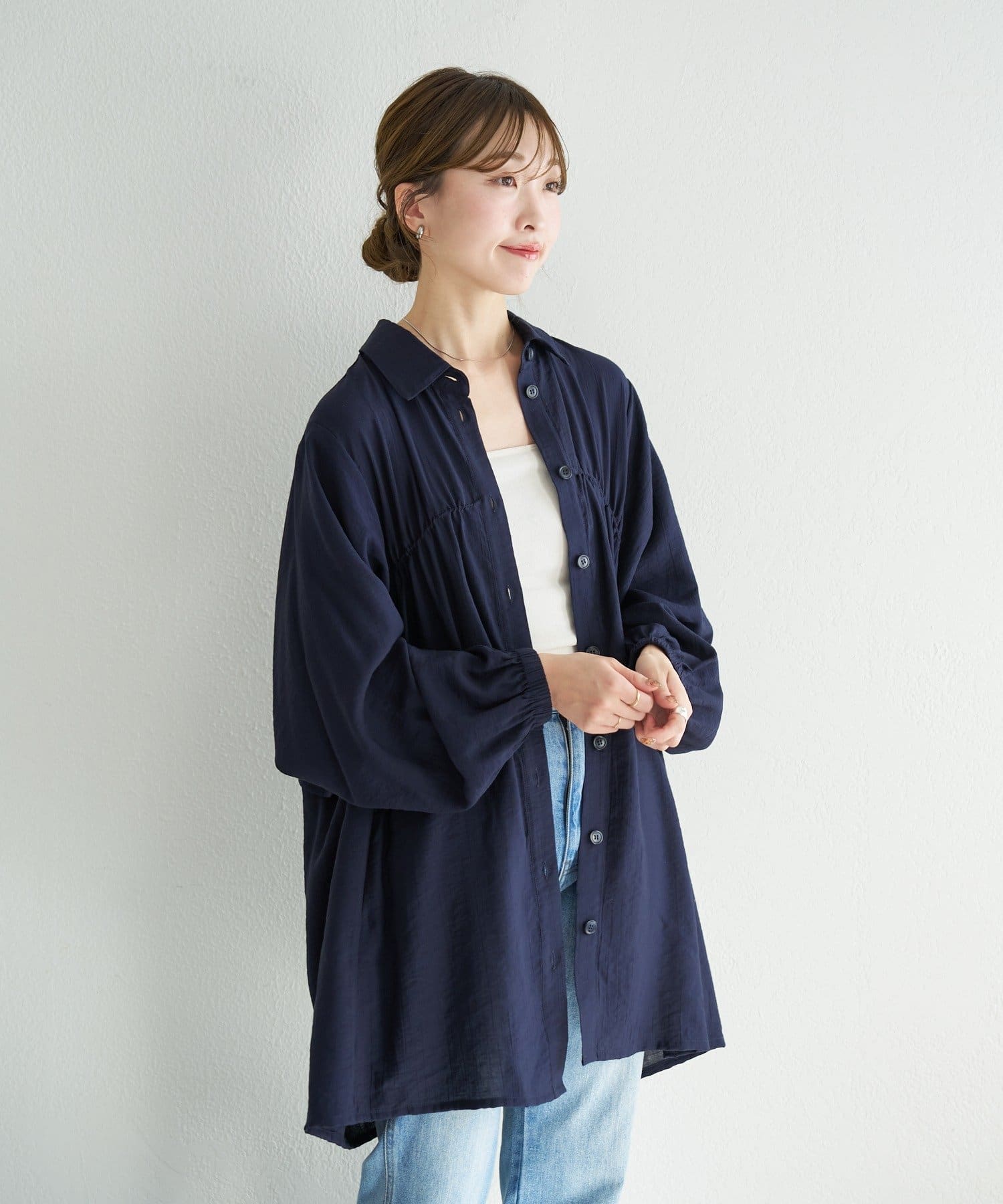 前開きボタン仕様で、一枚着はもちろん羽織りとしても着回し可能。