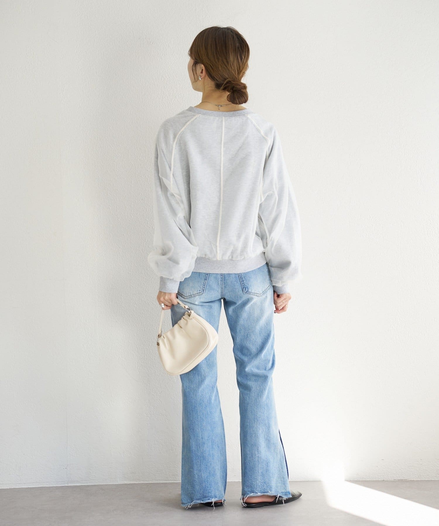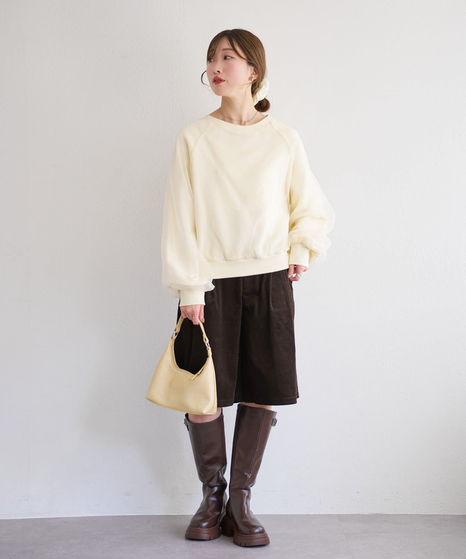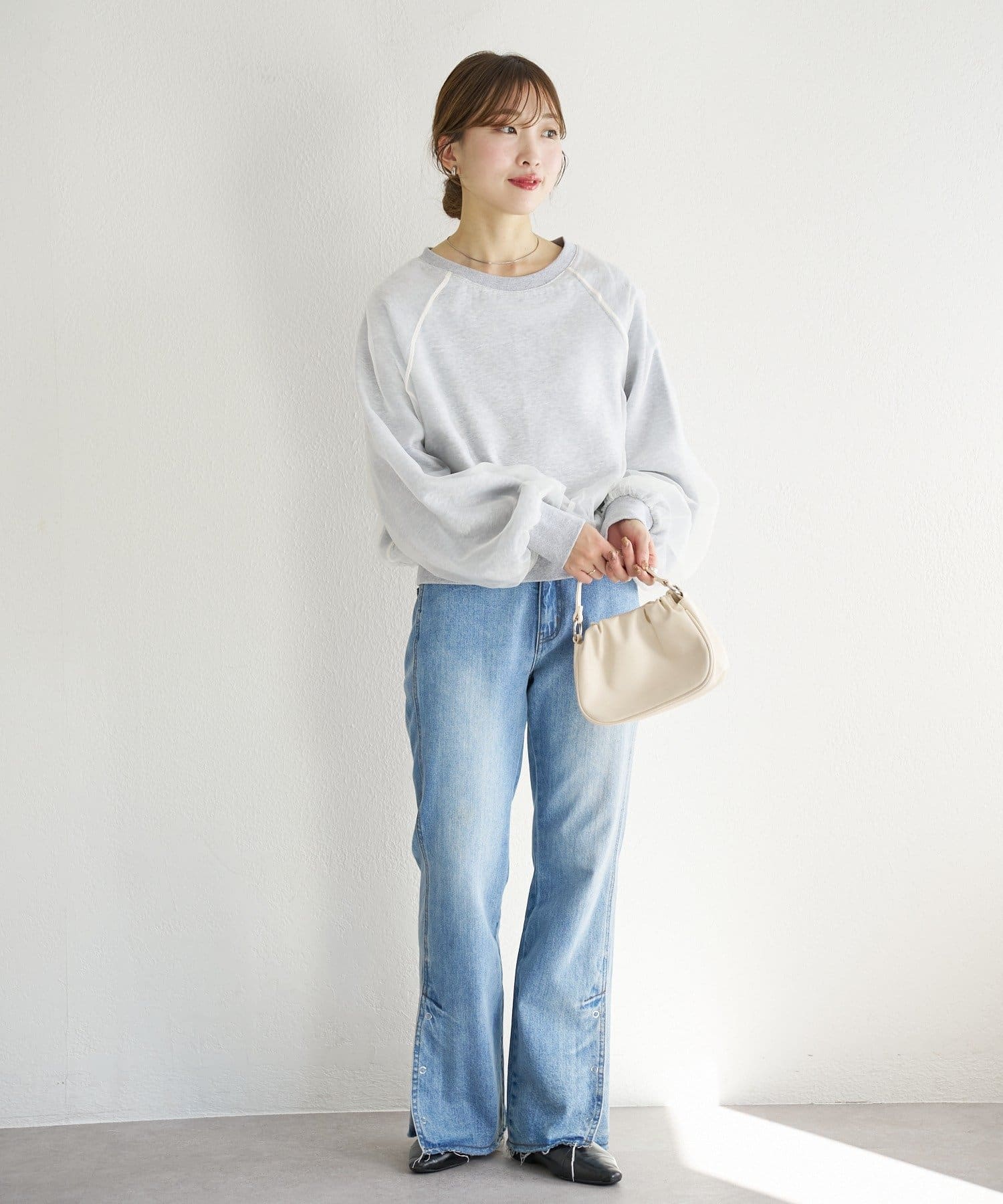程よくボリュームのある袖と、さりげない配色のステッチがシンプルながらも目を惹くポイントに。