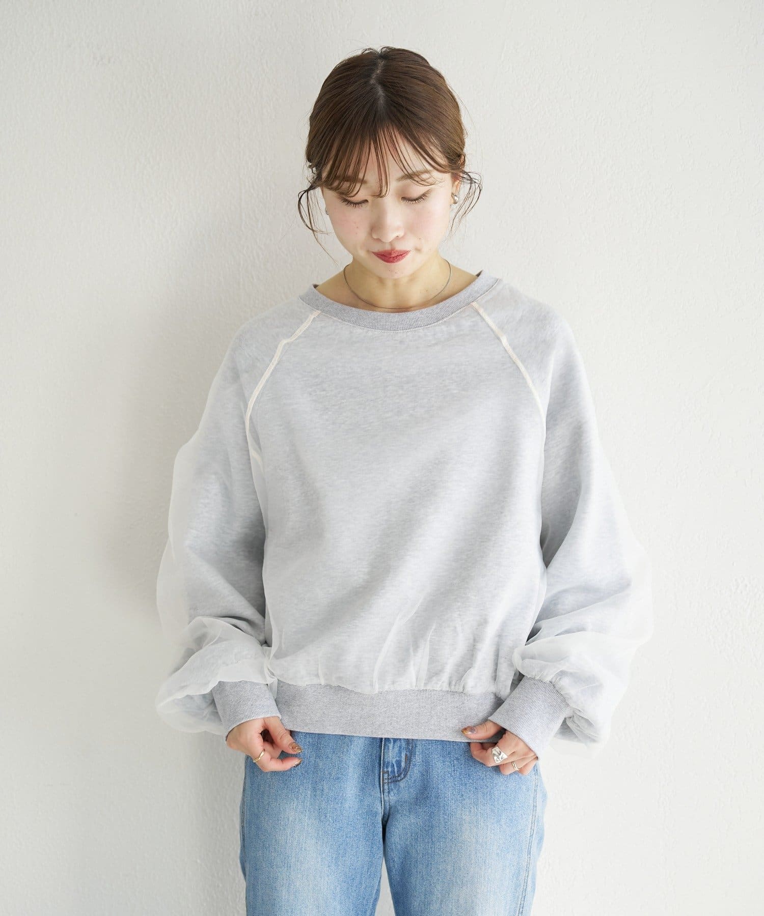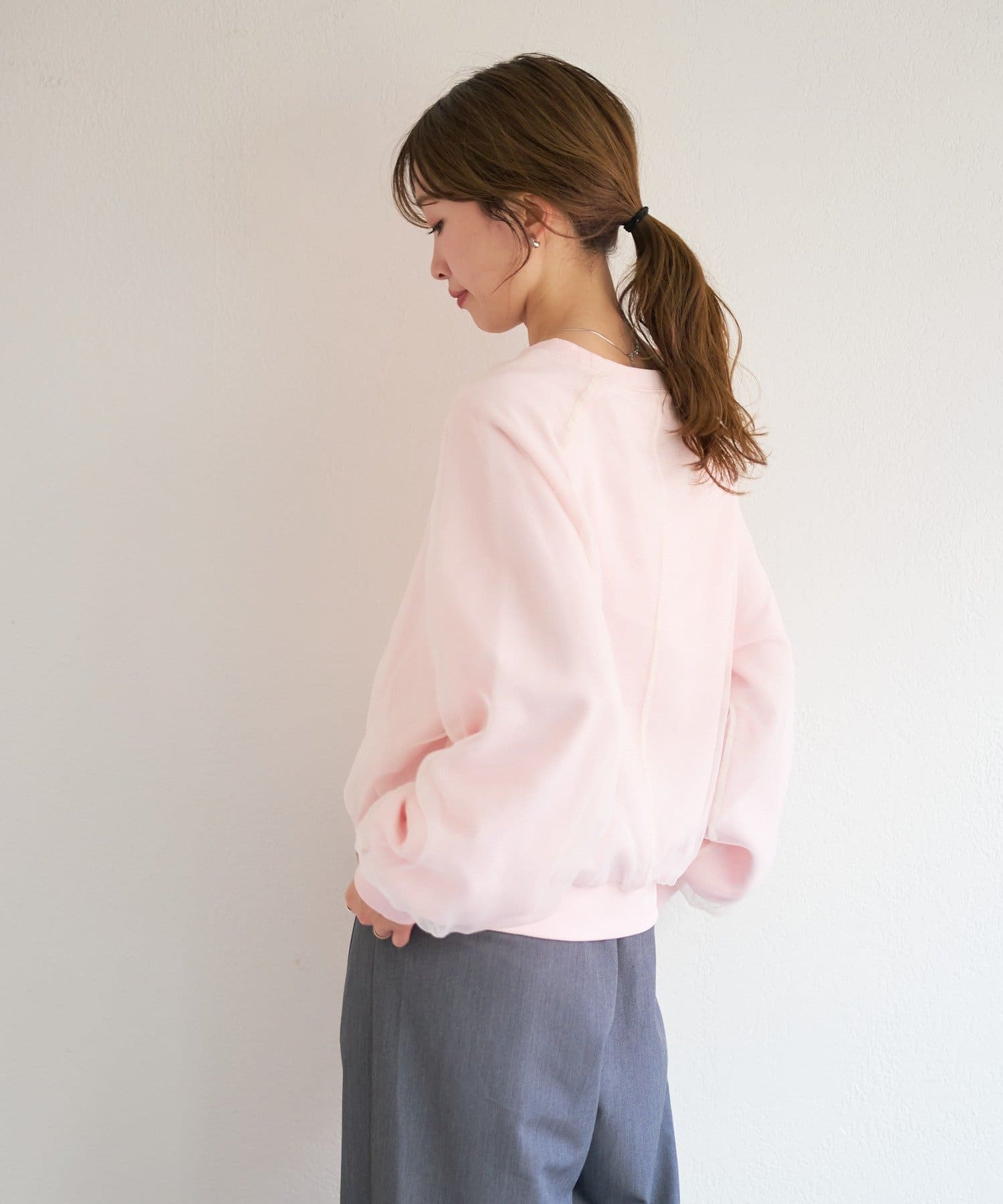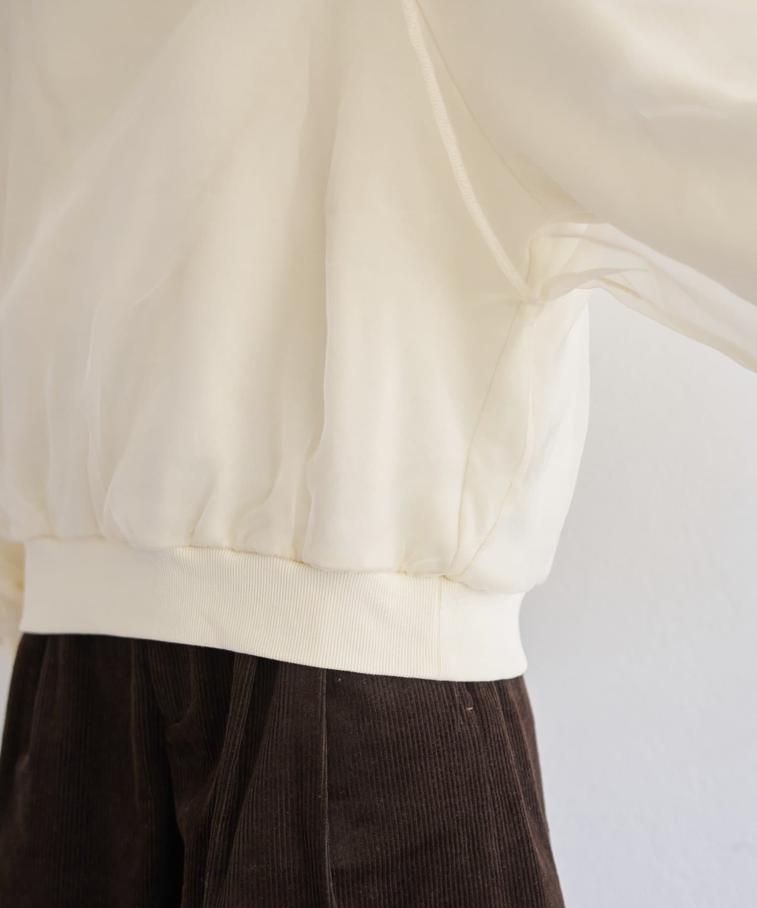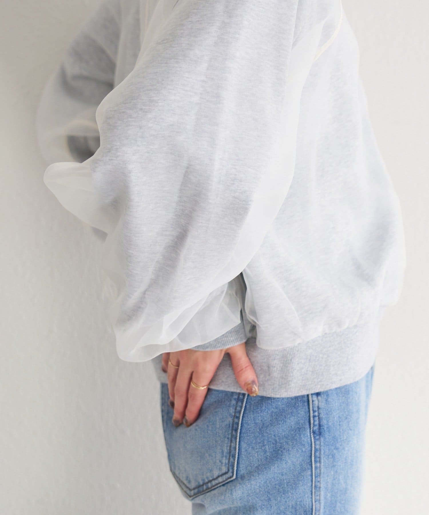 スウェットにオーガンジーを重ねたレイヤードデザイン