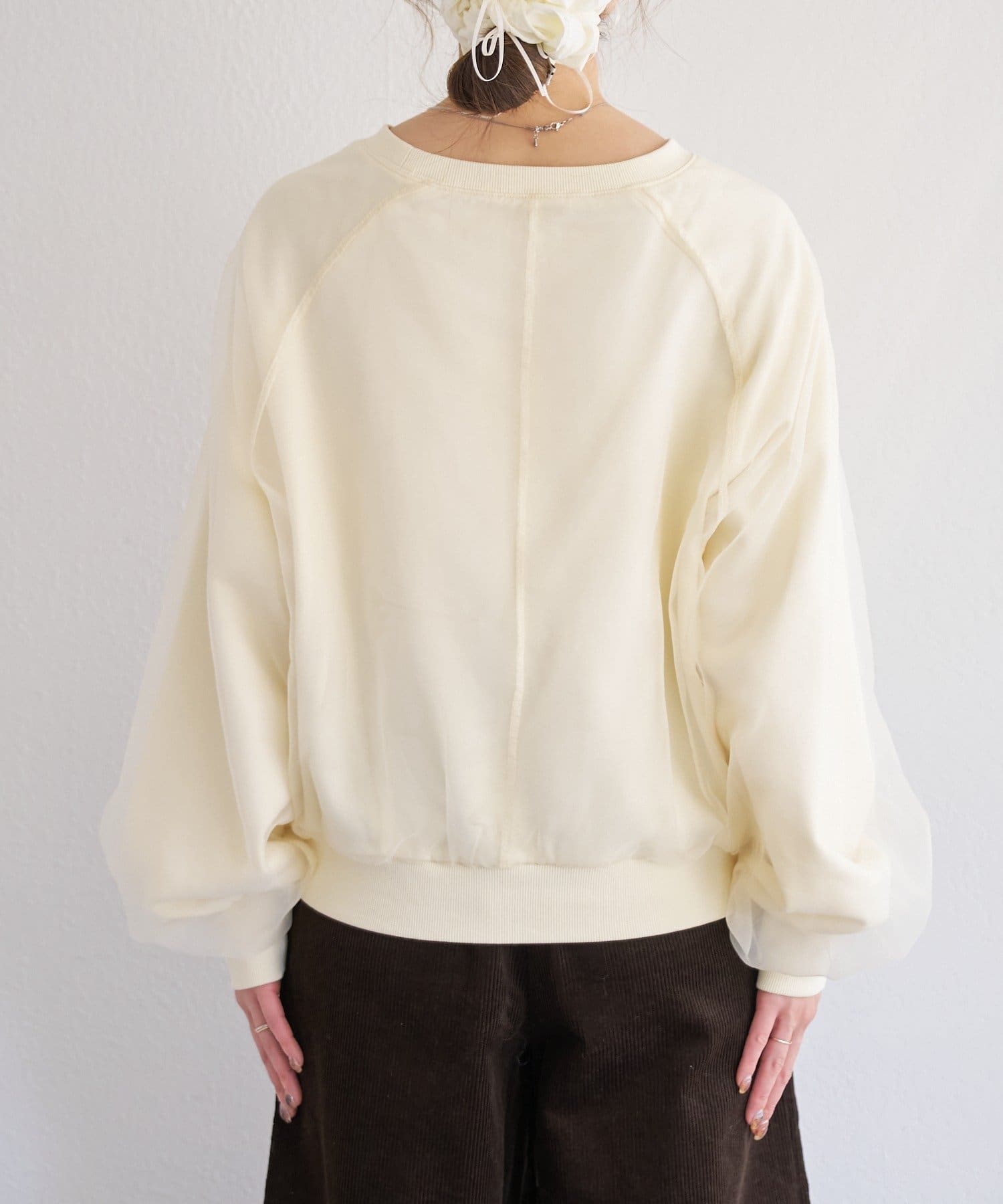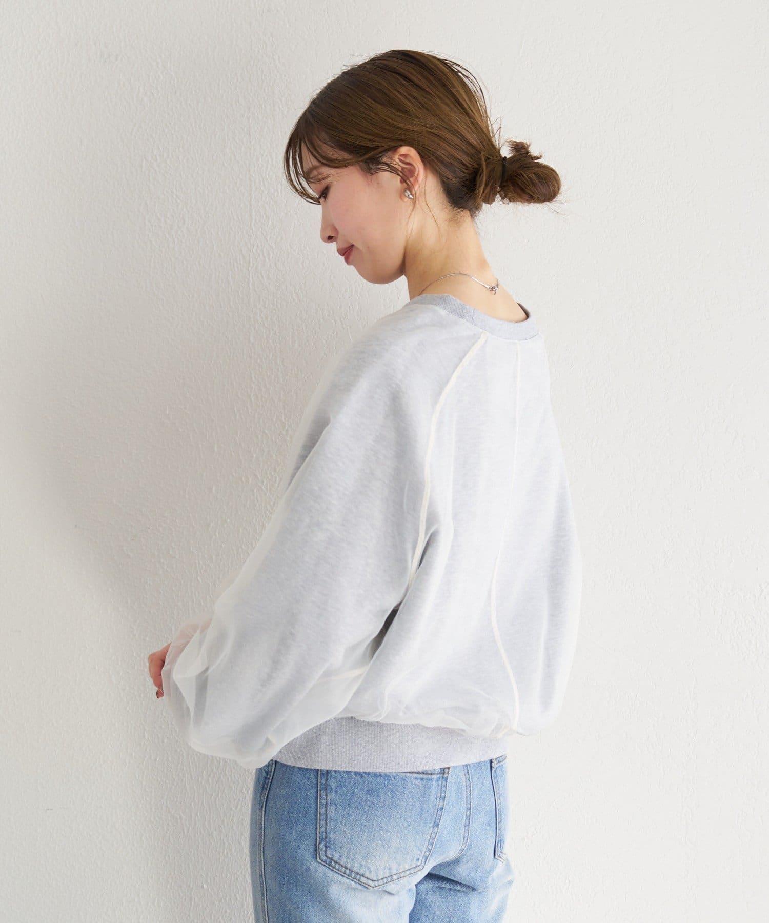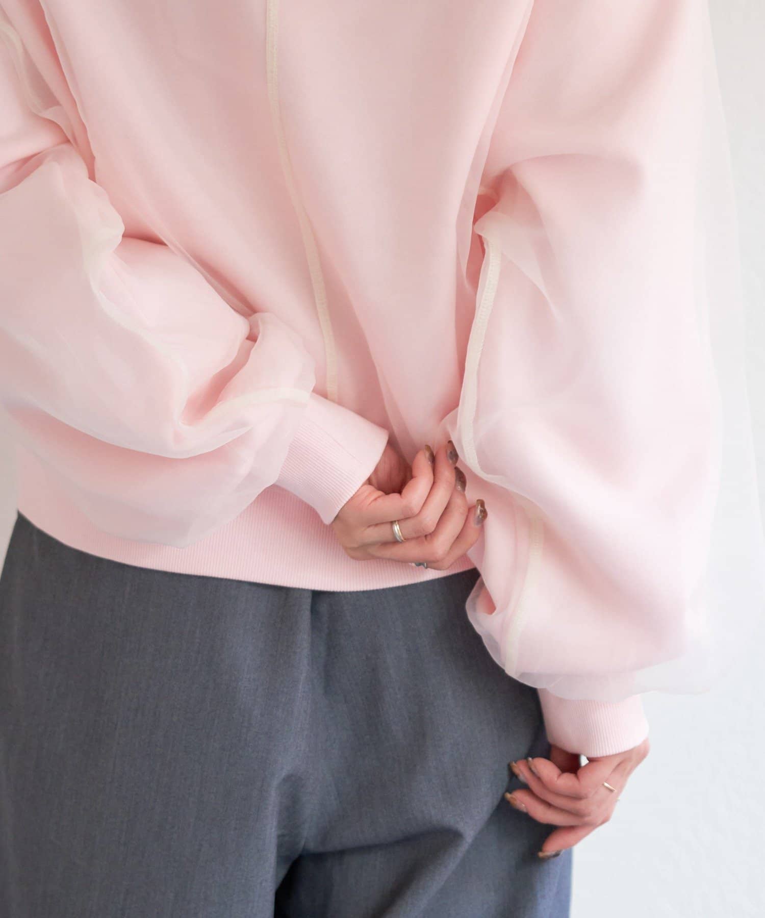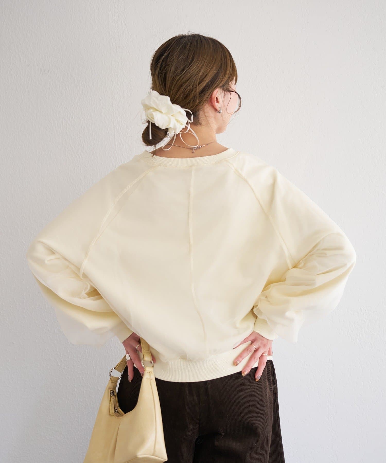 スウェットにオーガンジーを重ねたレイヤードデザイン