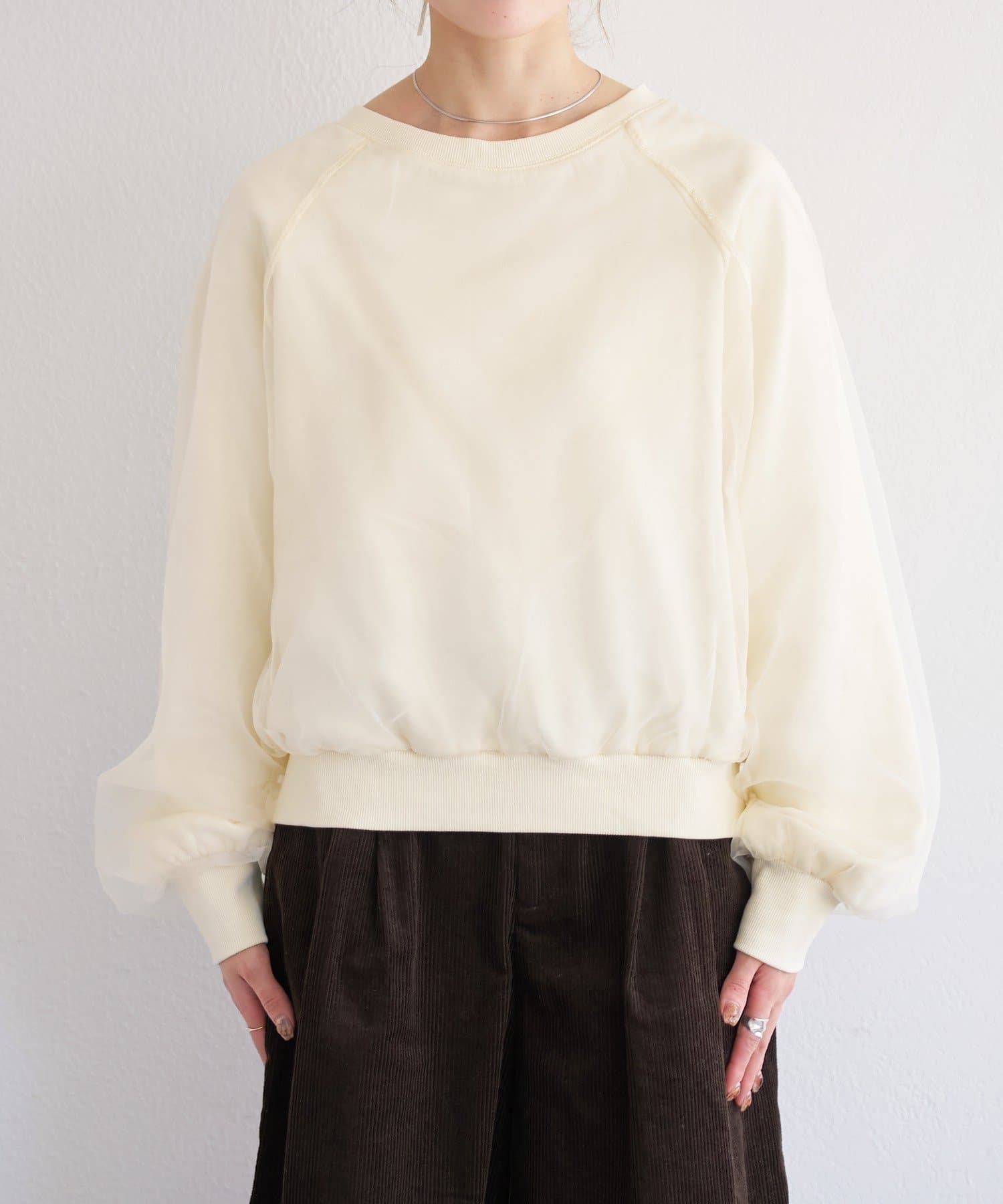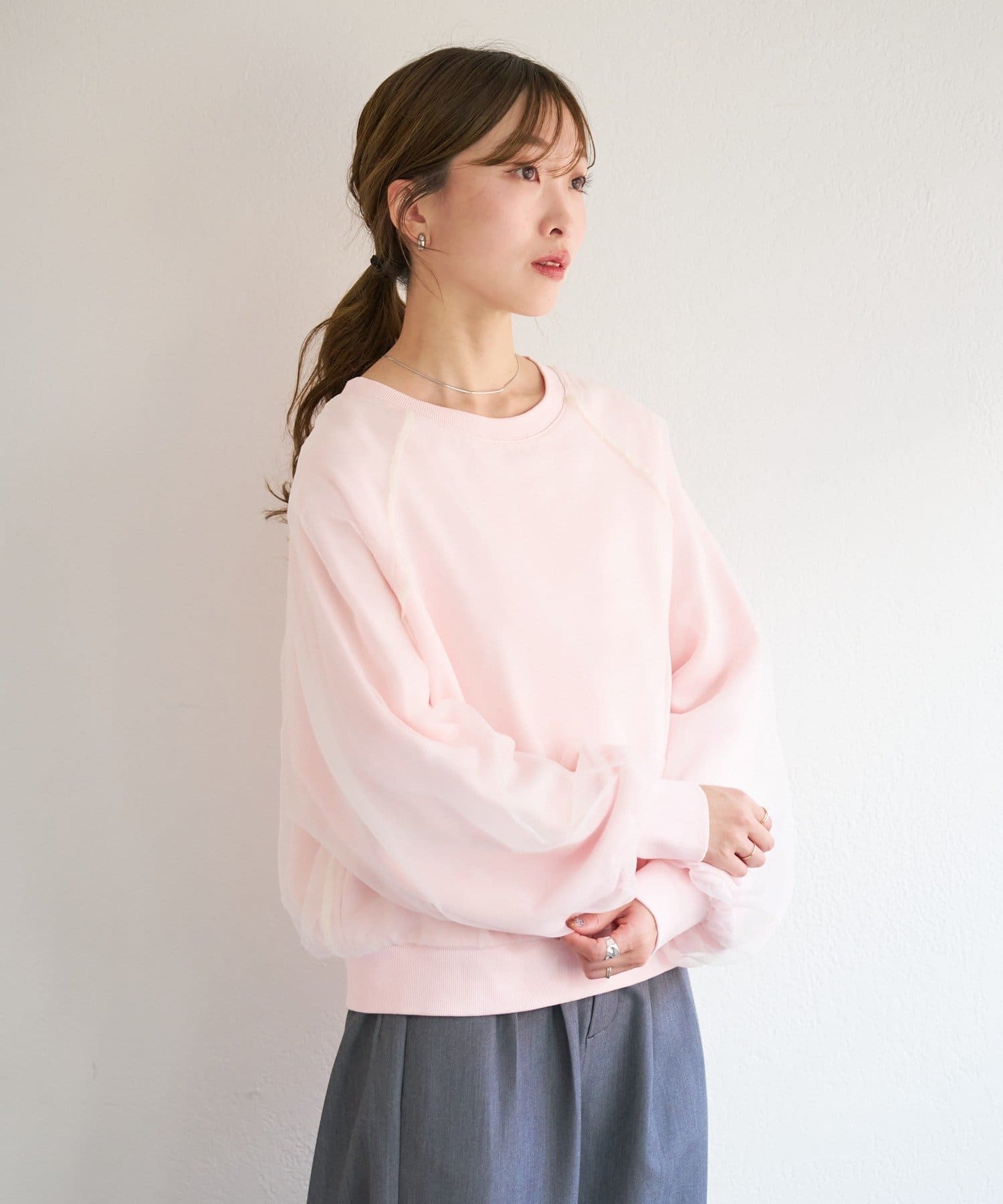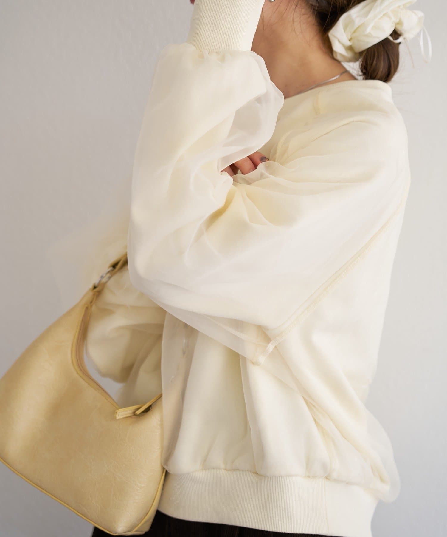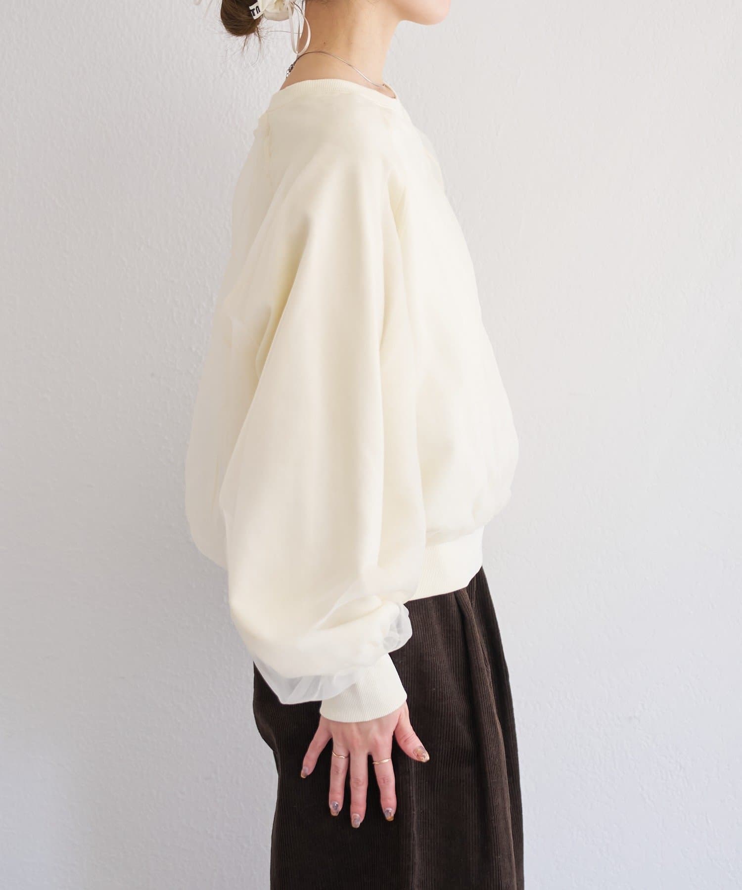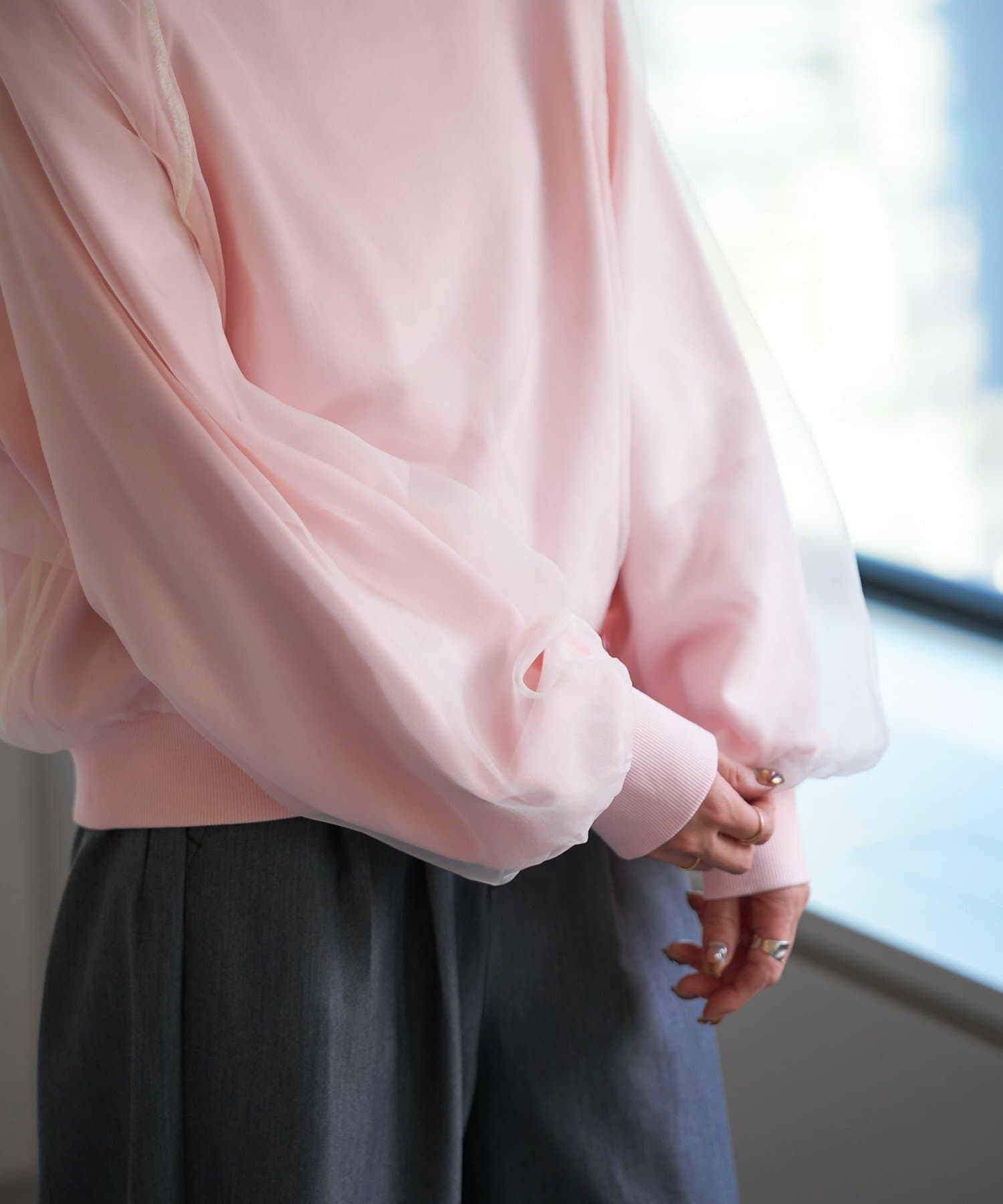 スウェットにオーガンジーを重ねたレイヤードデザイン