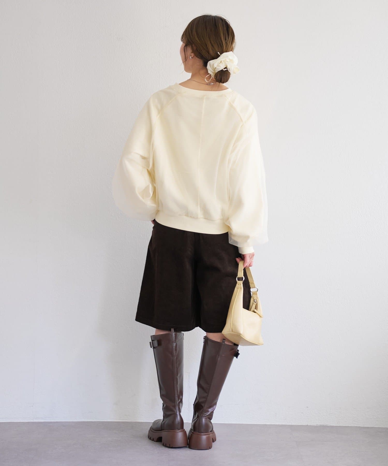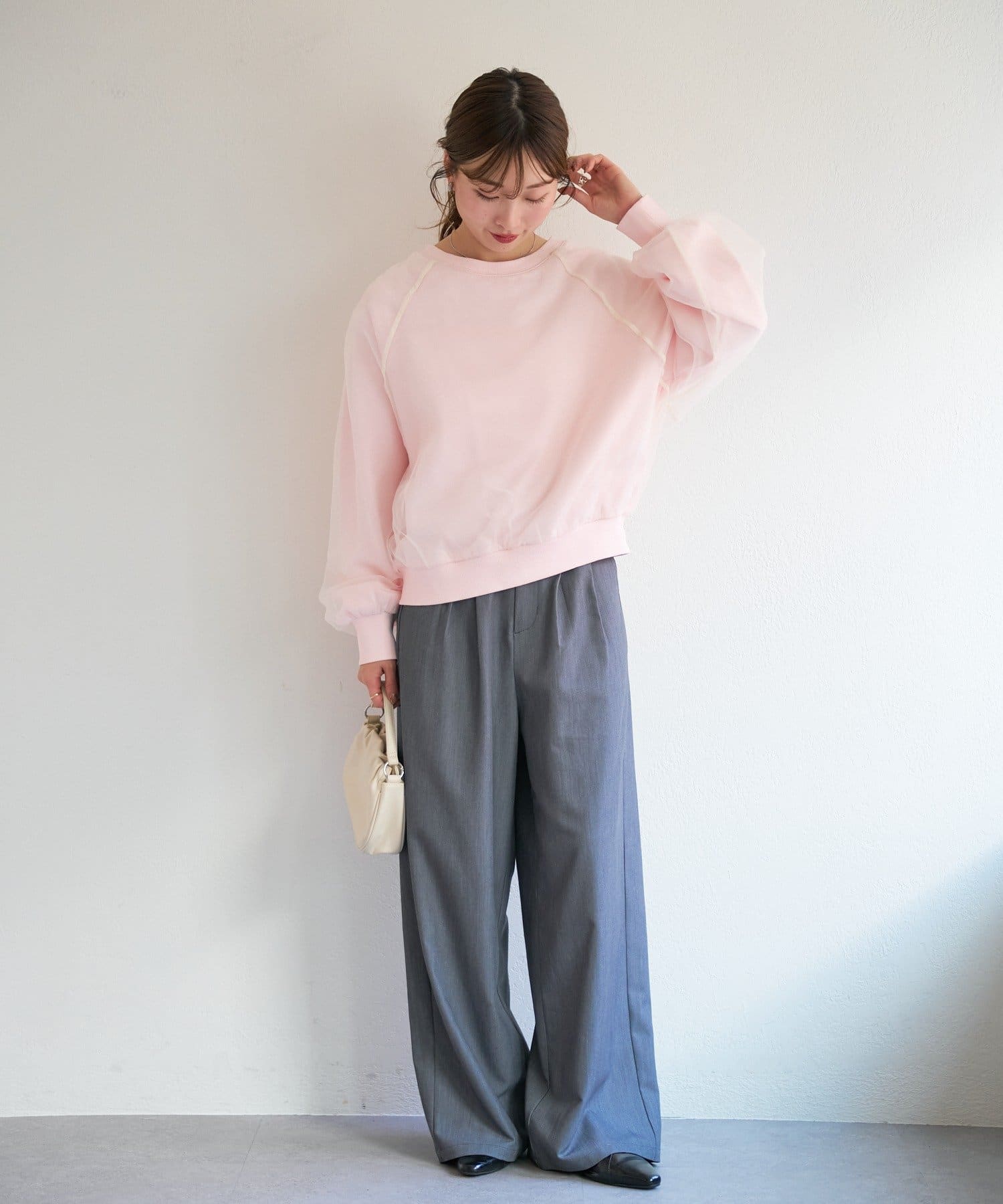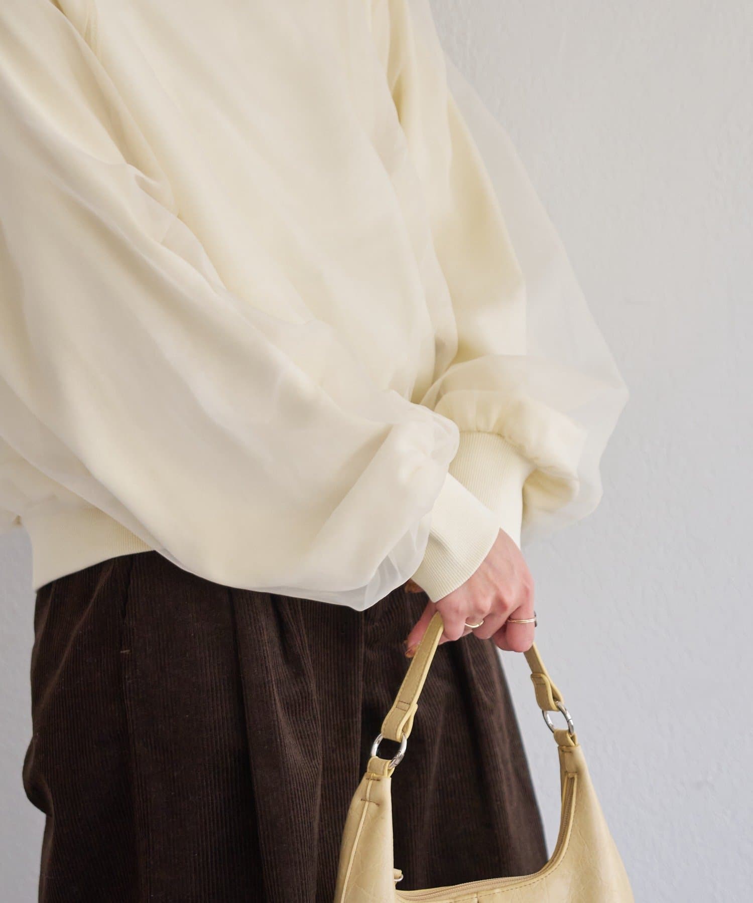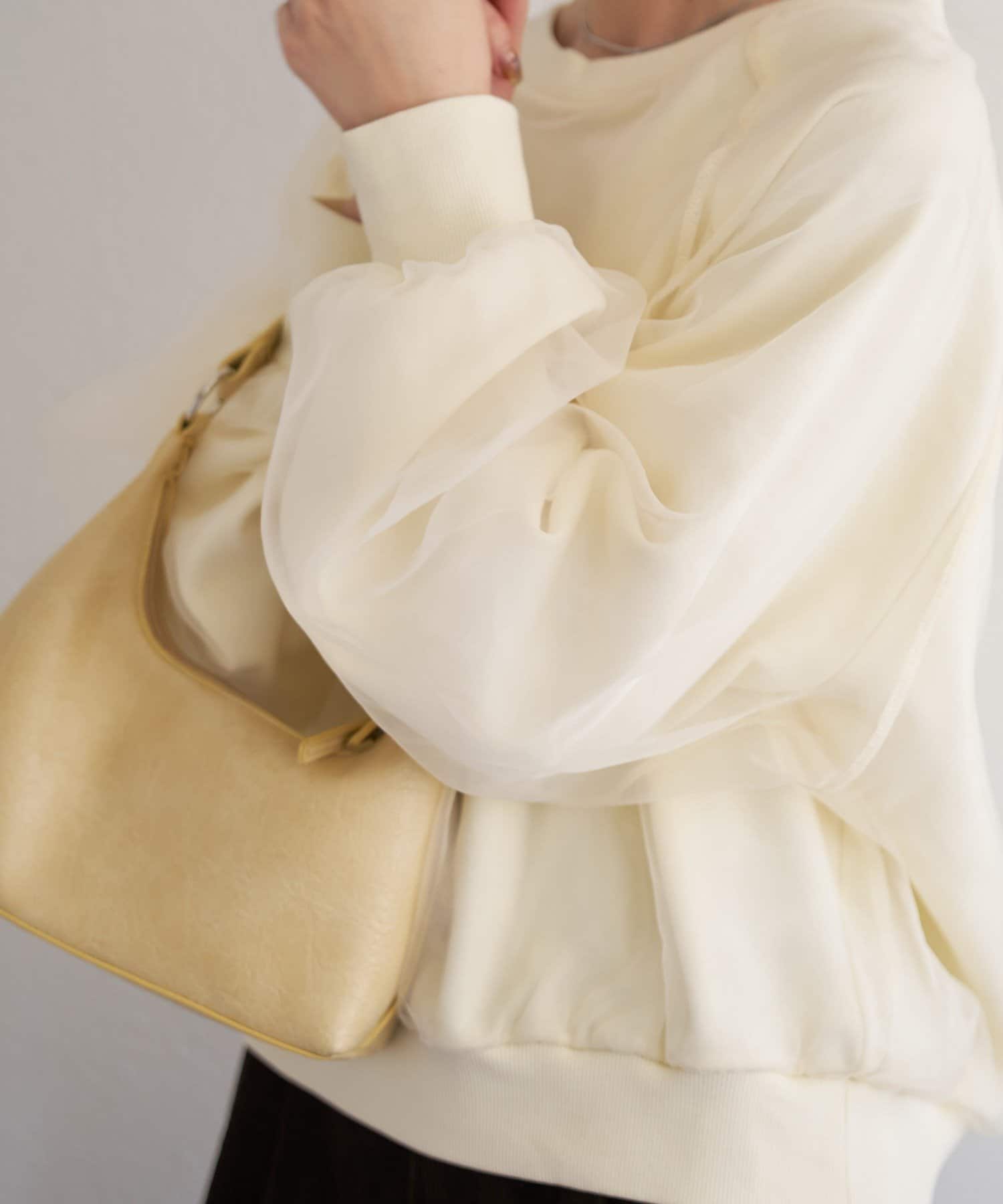 スウェットにオーガンジーを重ねたレイヤードデザイン
