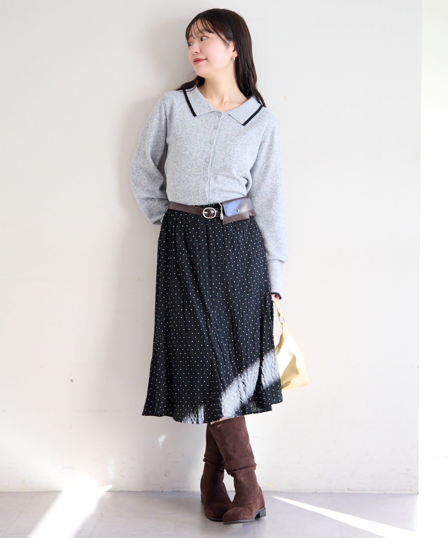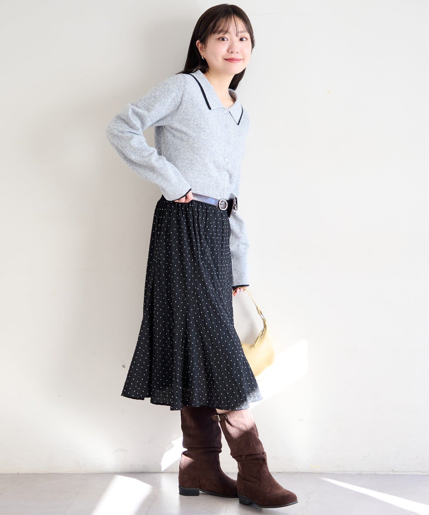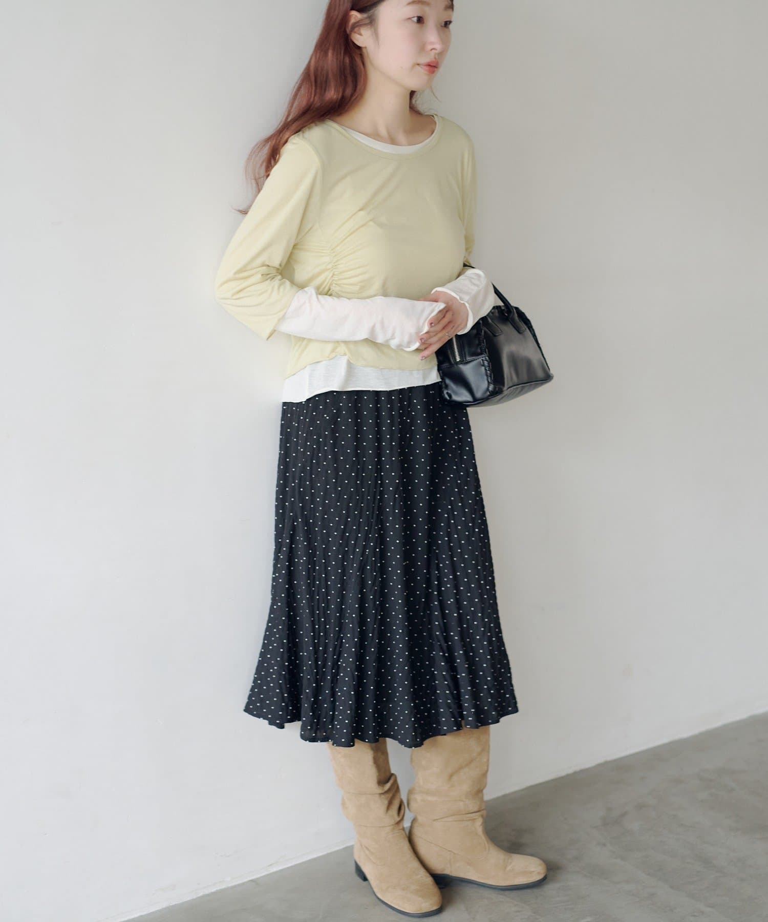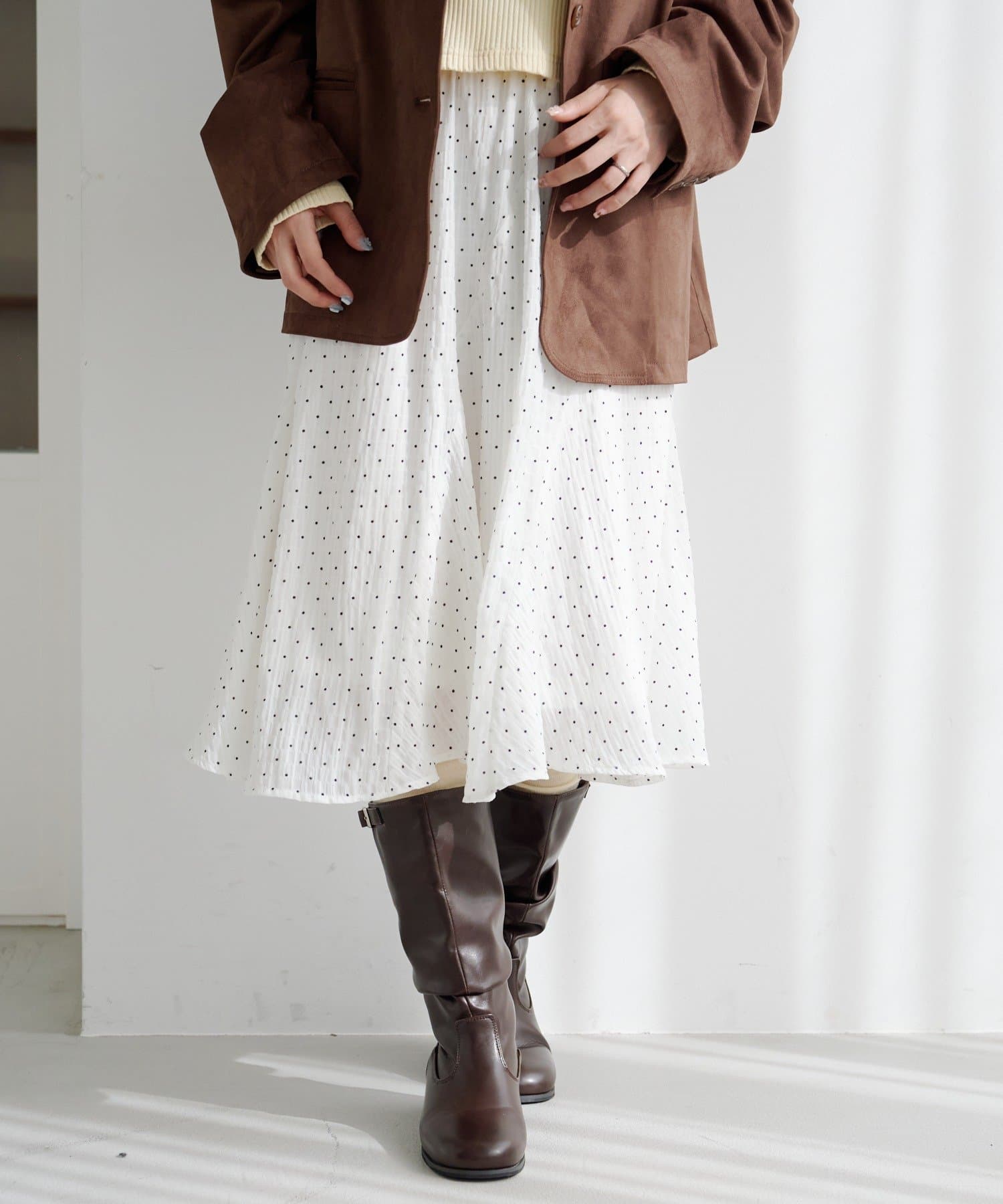ベーシックなドット柄で、春夏はもちろんロングシーズン使えるシアーミドルスカート。