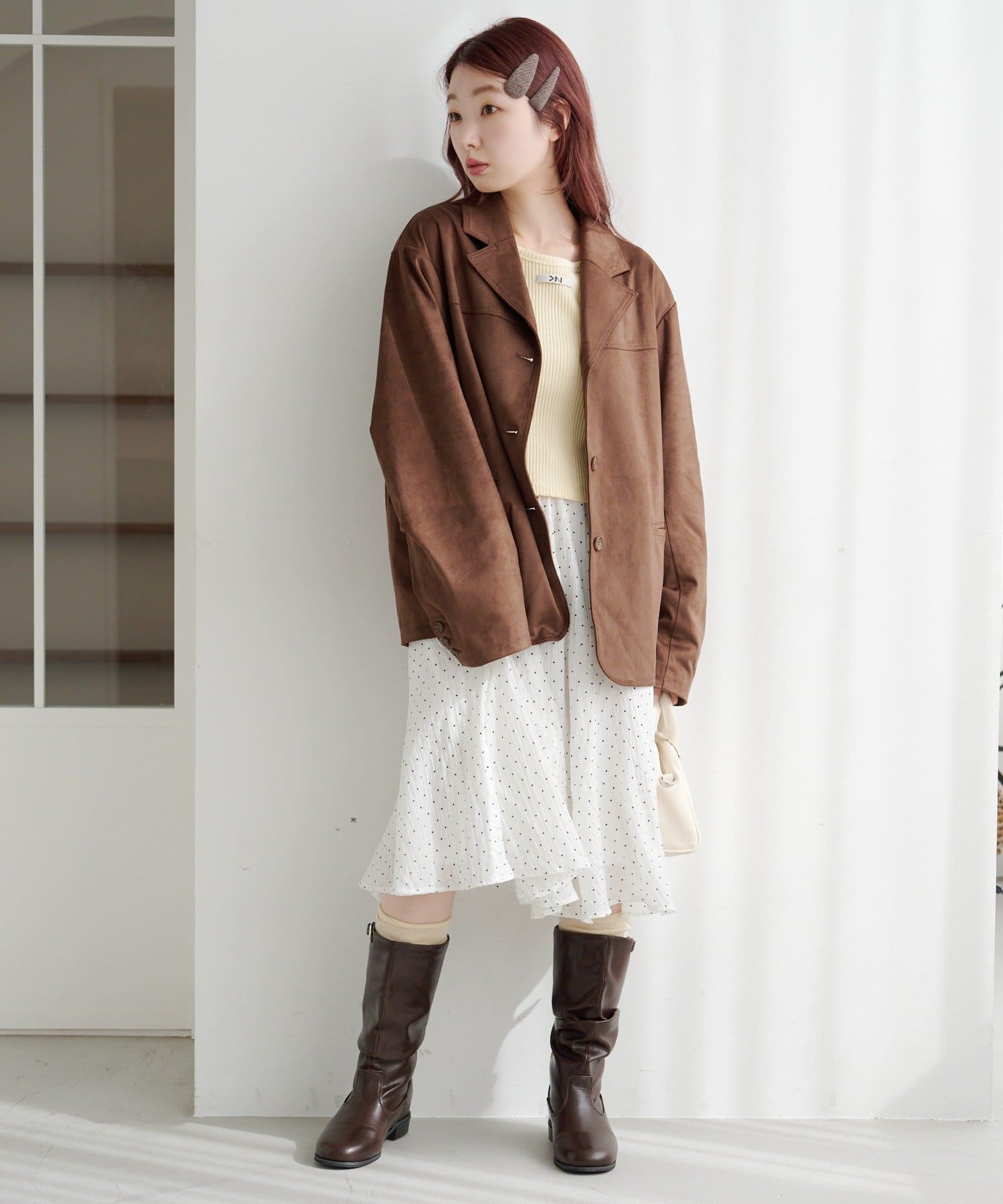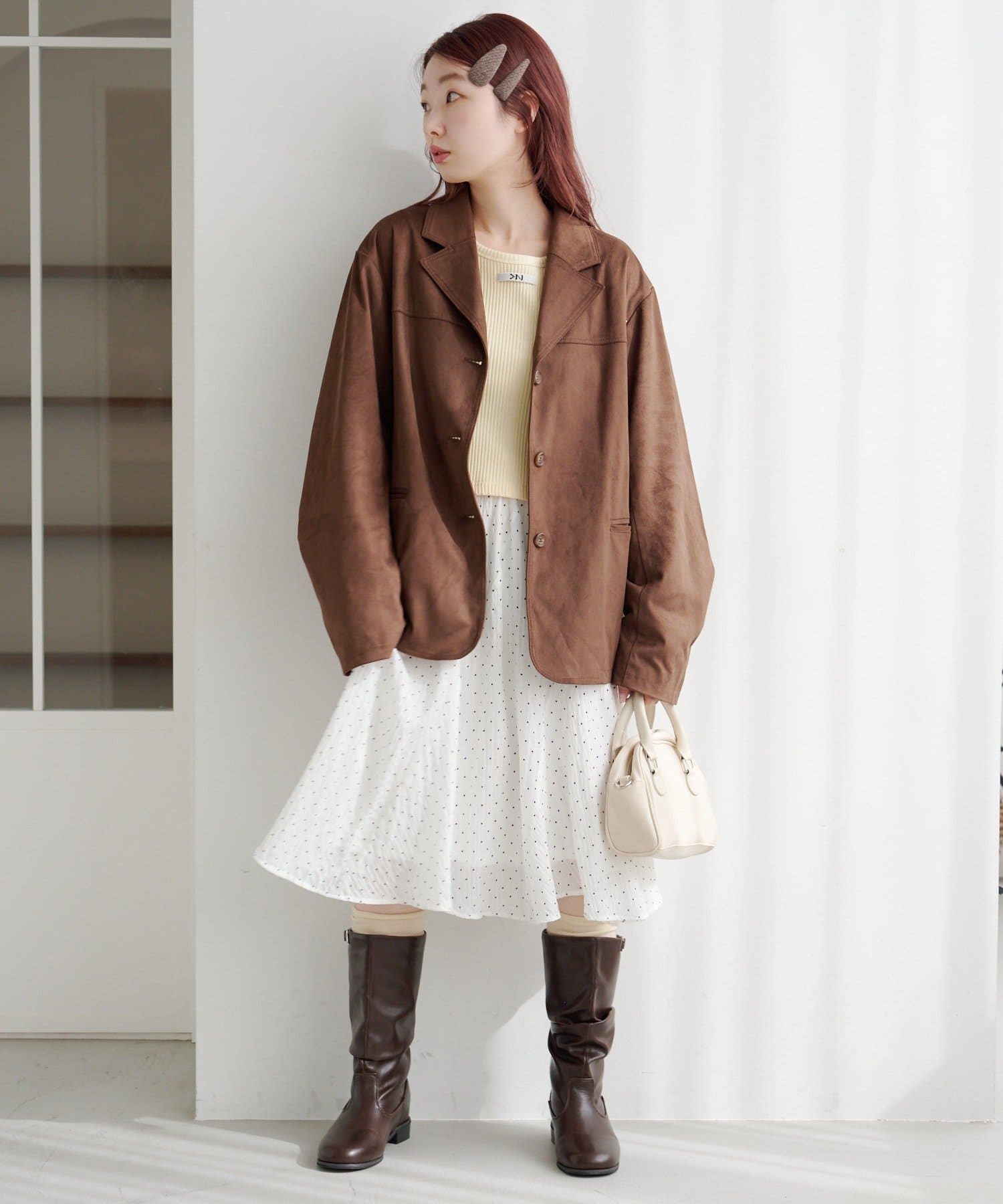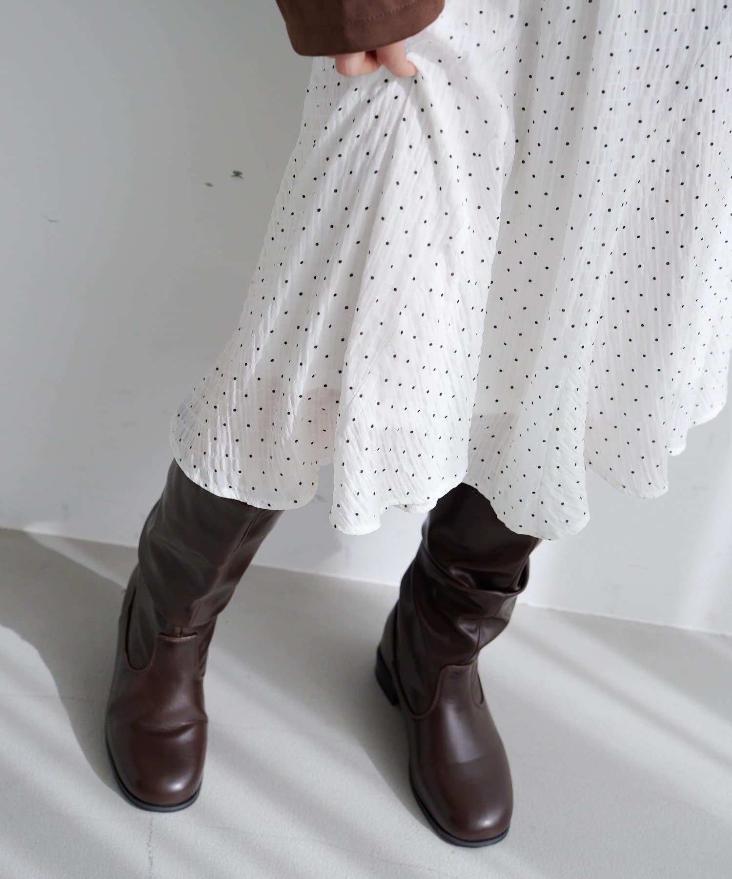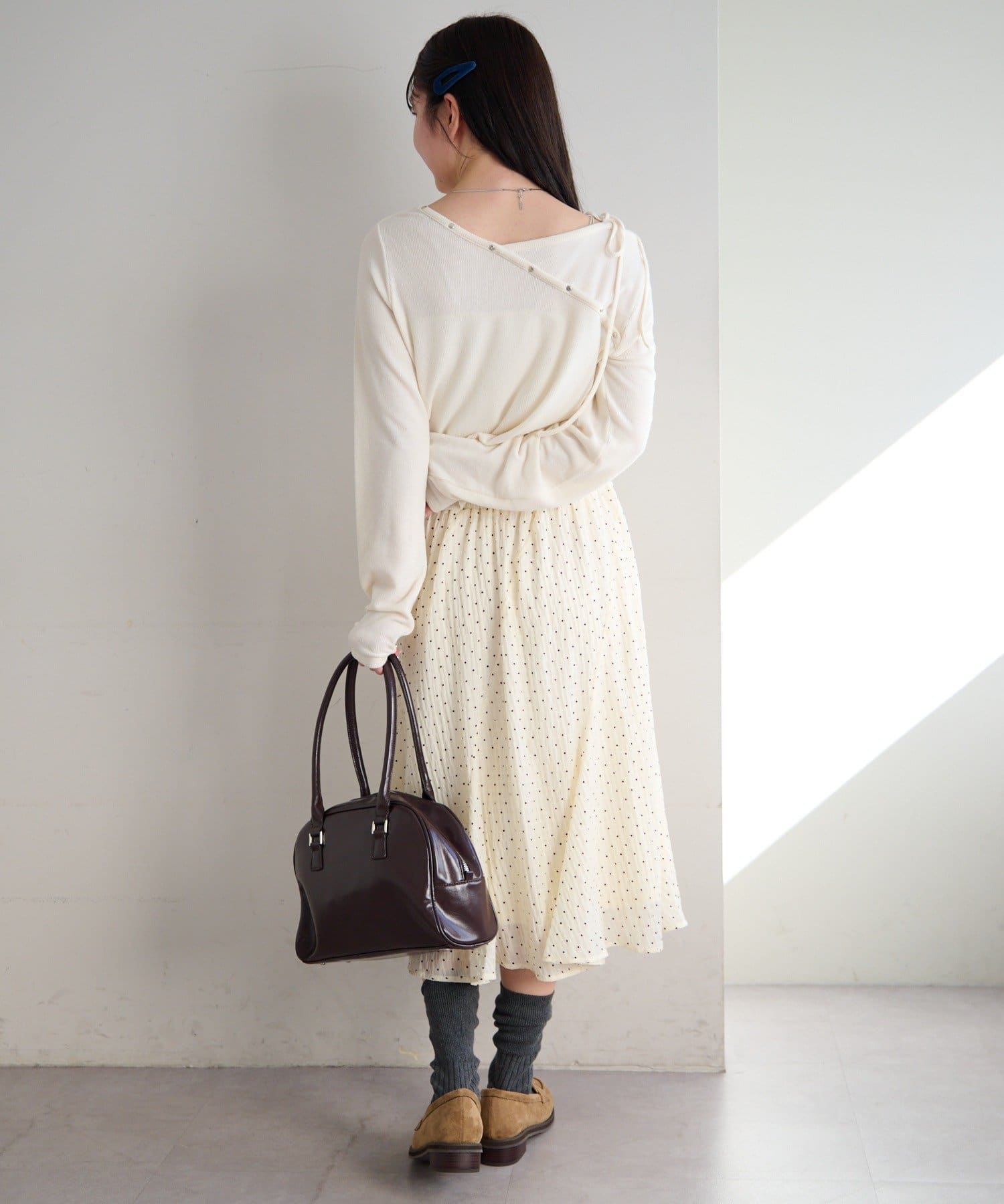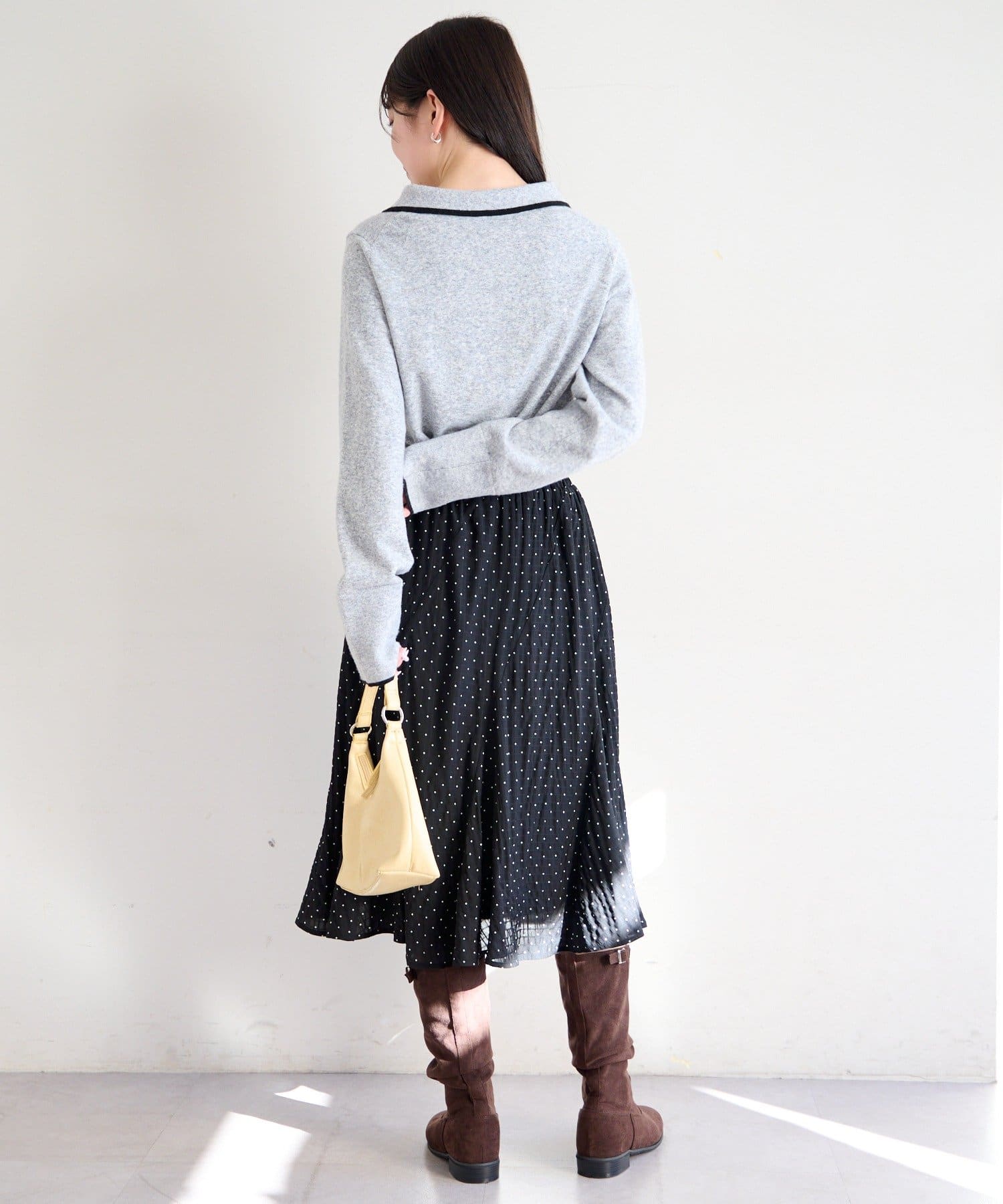 ベーシックなドット柄で、春夏はもちろんロングシーズン使えるシアーミドルスカート。