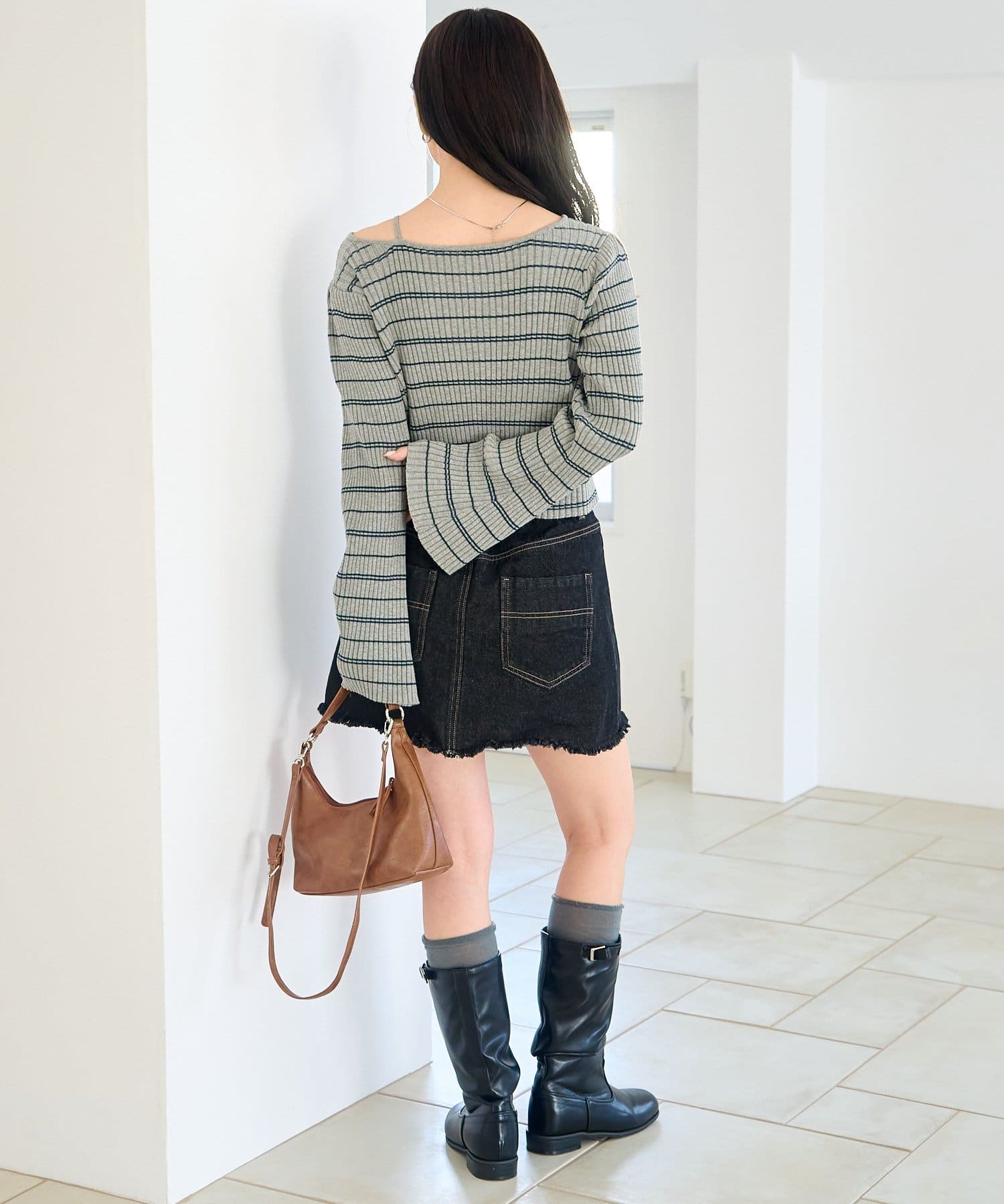 裾はさりげないフリンジ仕様で、甘さを抑えたカジュアルな印象に。シーズン問わず活躍する万能アイテムです。