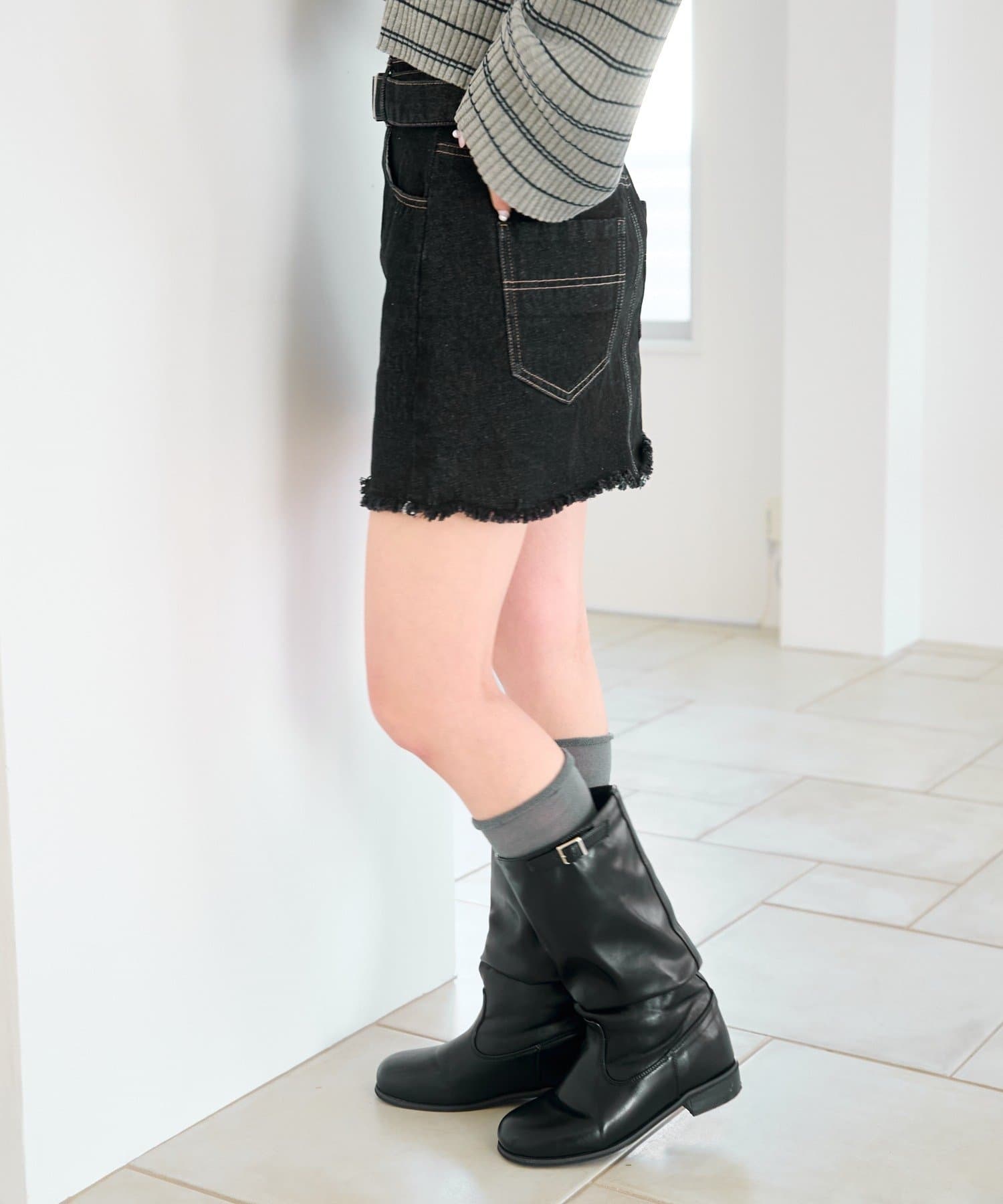 ヴィンテージライクな風合いが魅力のベルト付きデニムミニスカート。
