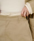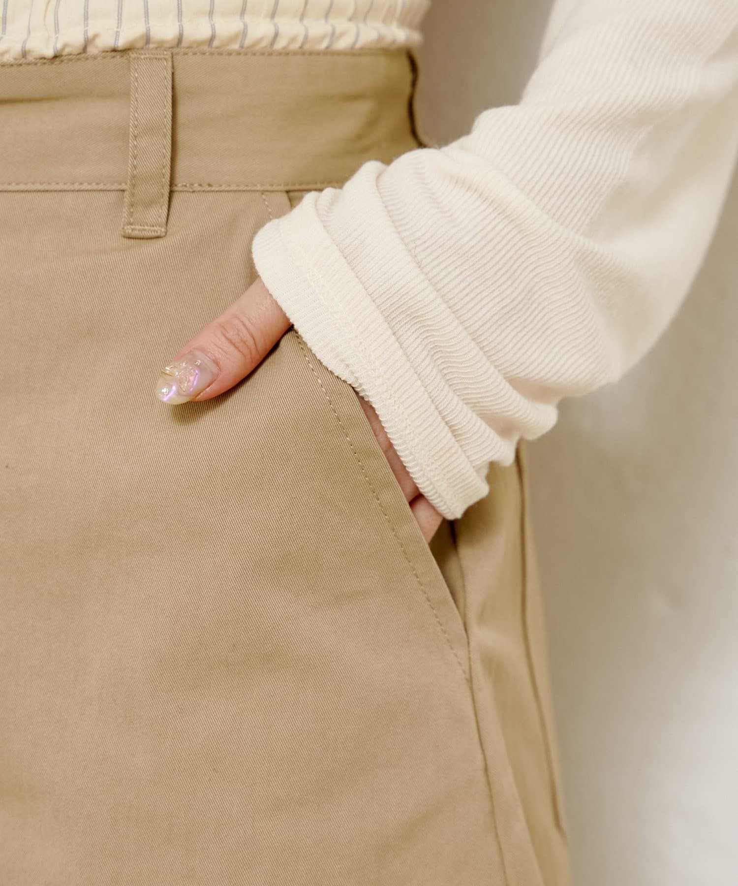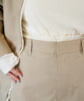 シンプルなトップスと合わせてもサマになり、同素材のジャケットと合わせるとセットアップに。