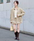 同素材のジャケットと合わせると一気にトレンド感が出るアイテムです。