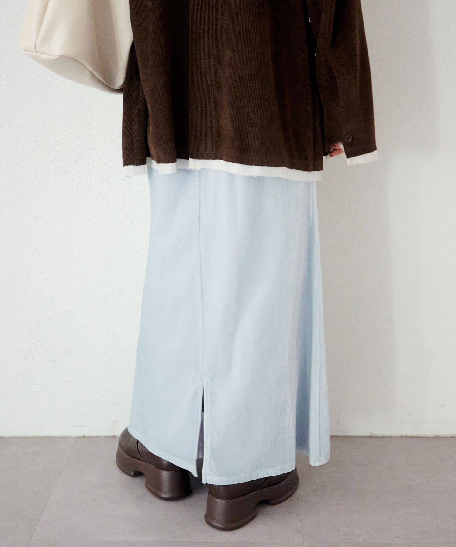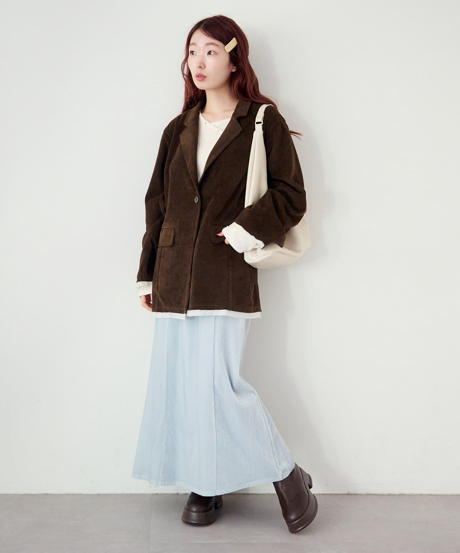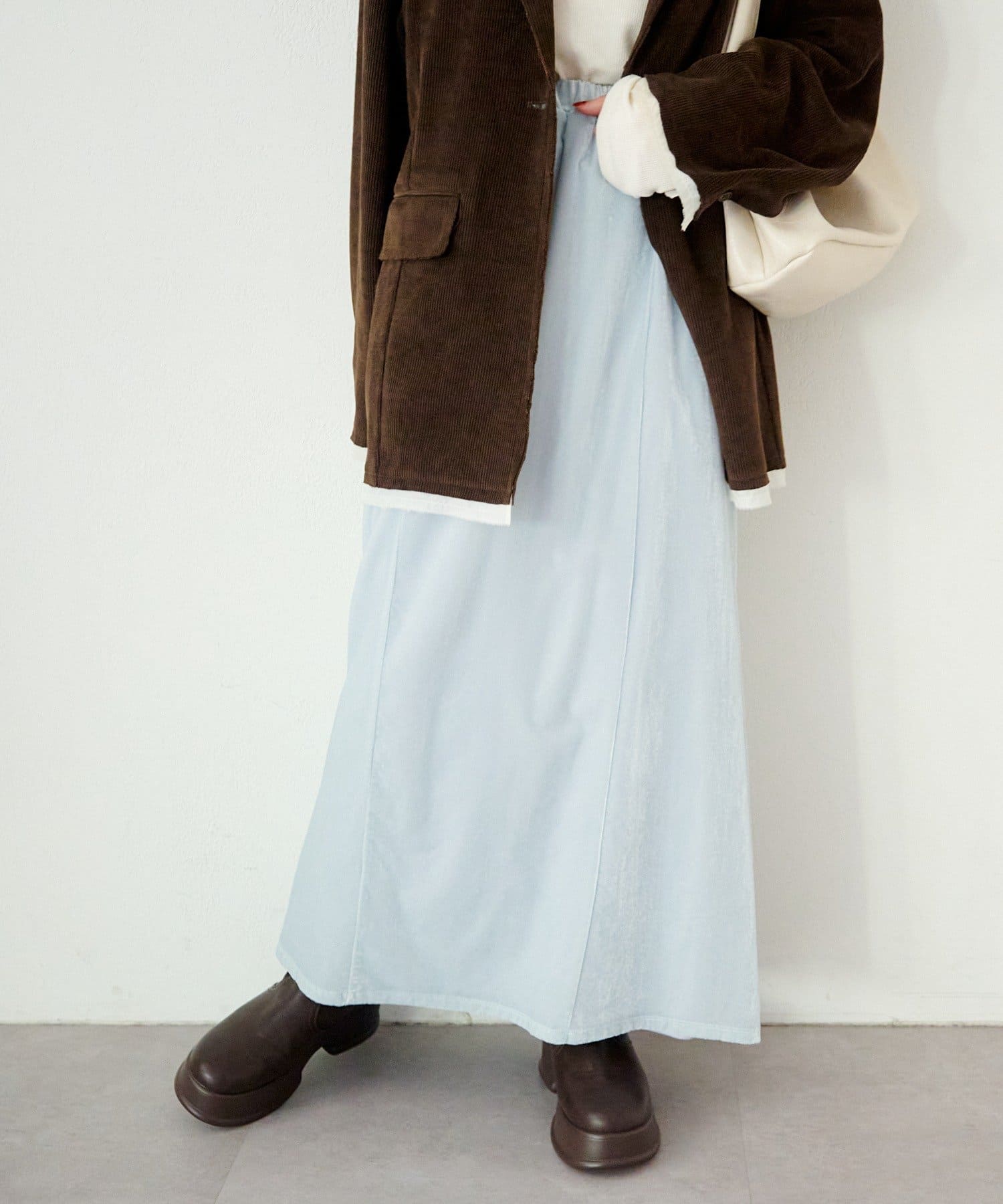 ブーツ合わせで秋冬らしく、ローファーやフラットシューズとも好相性。