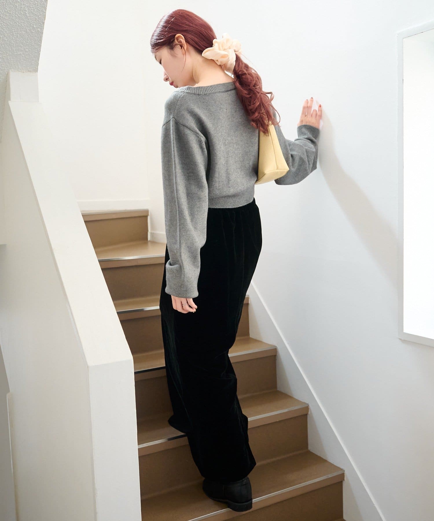 ニットやスウェットでリラックス感のある着こなしも◎。