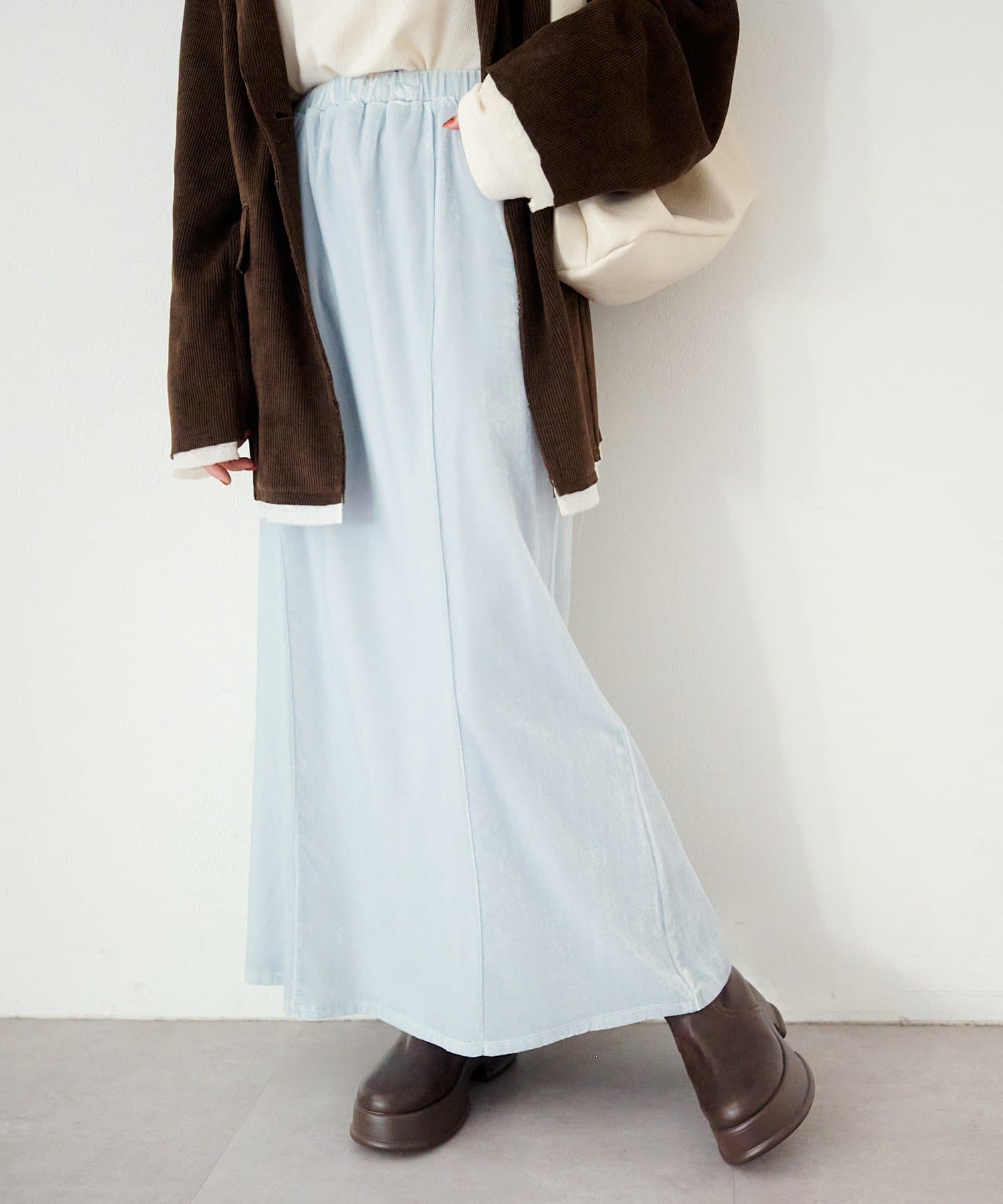 上品な光沢感と柔らかな落ち感が魅力のフレアベロアスカート。