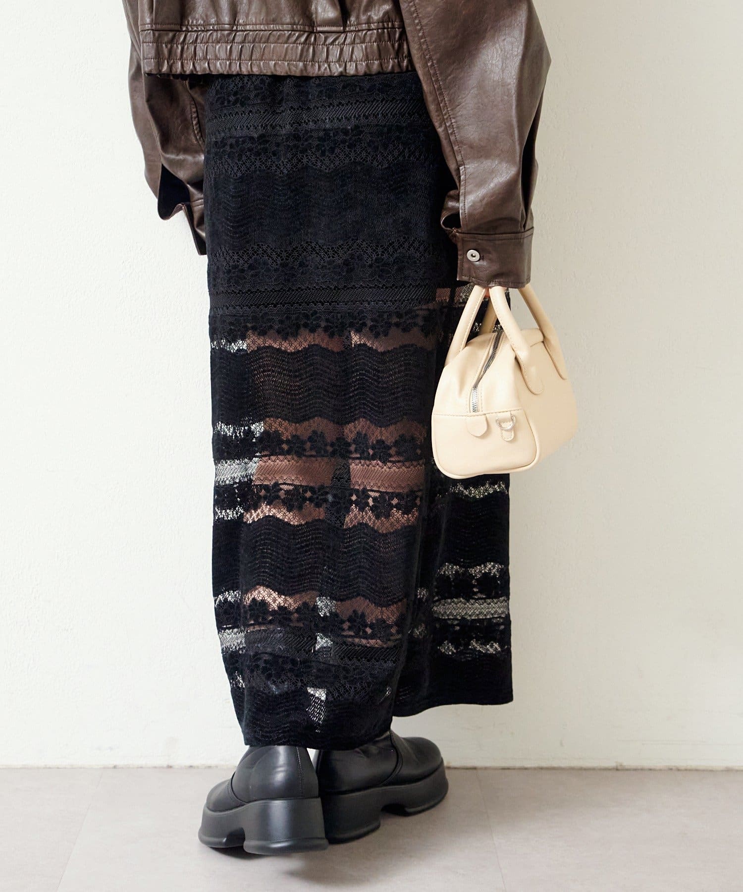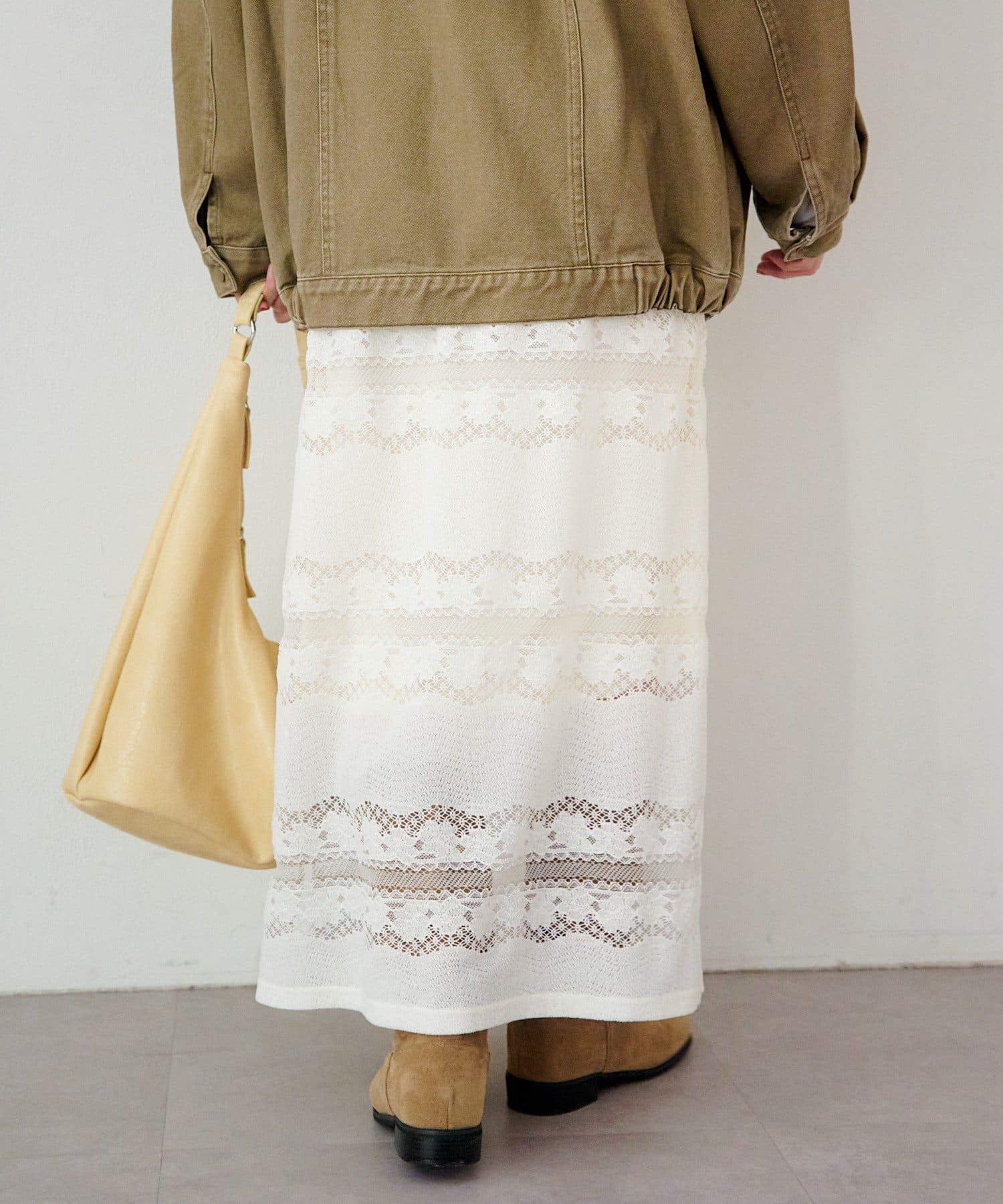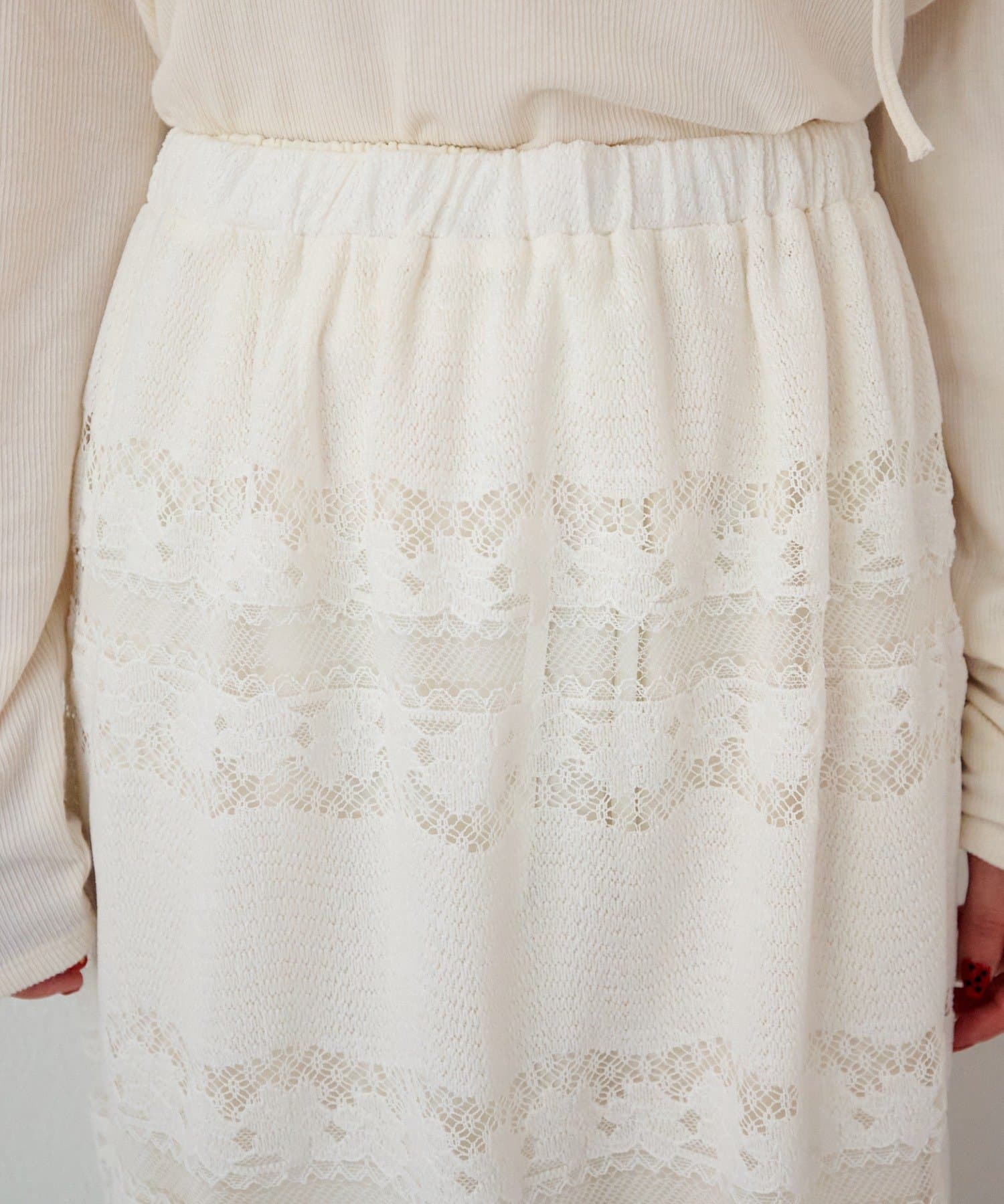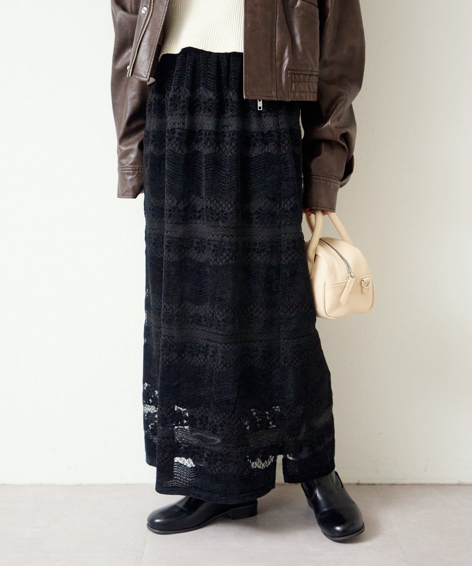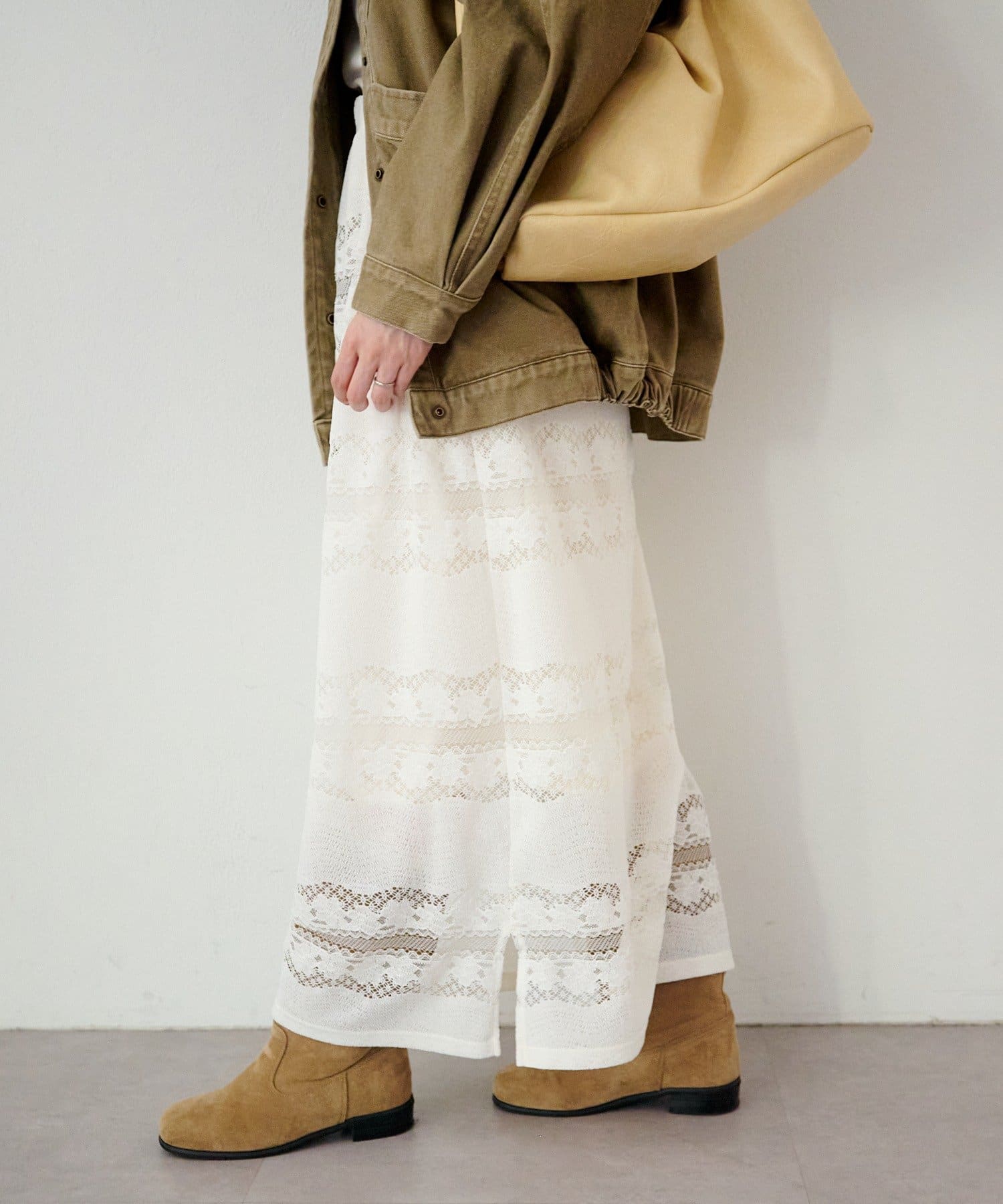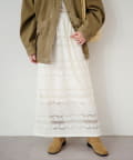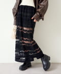 繊細なレースをボーダー状に切り替えた、上品さとモード感を併せ持つロングスカート。