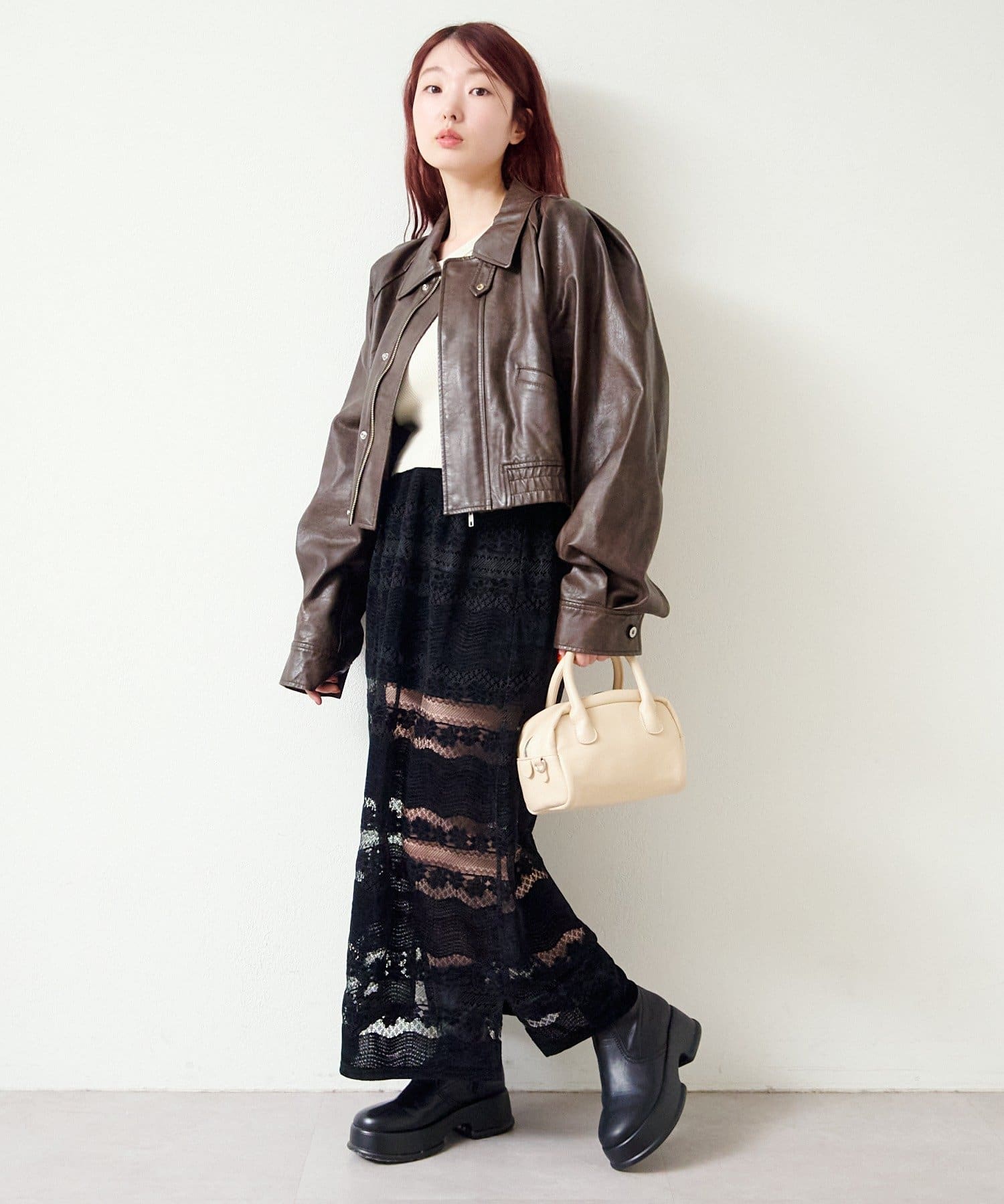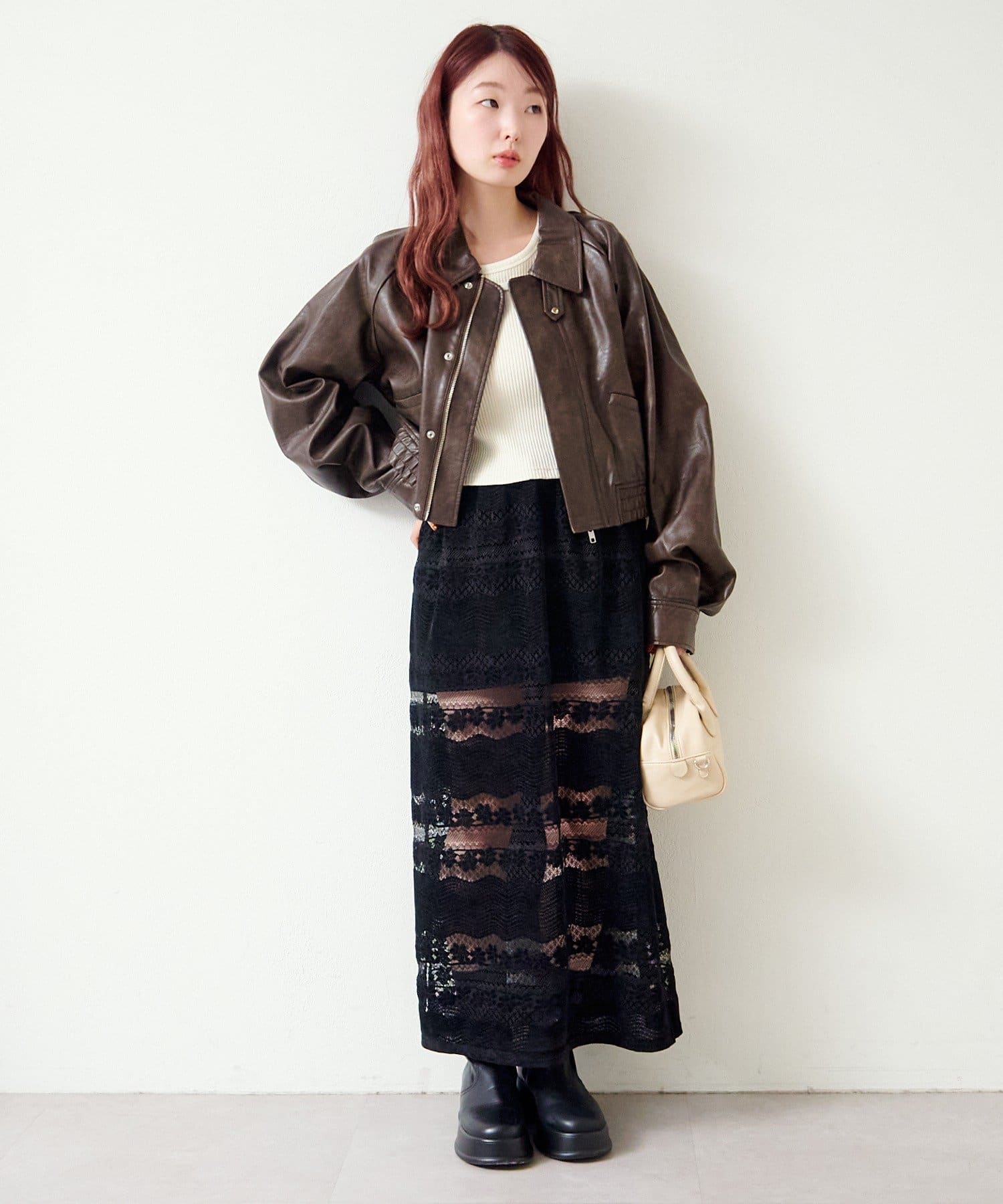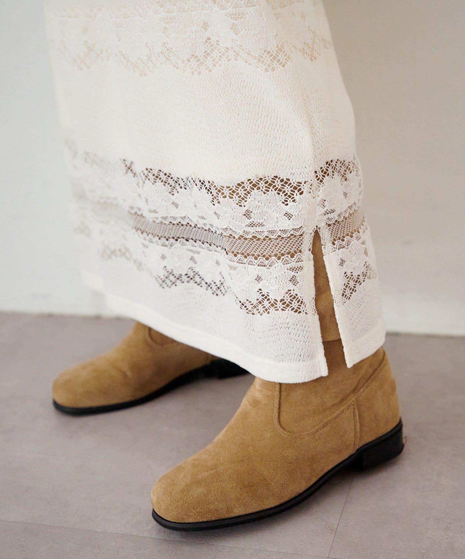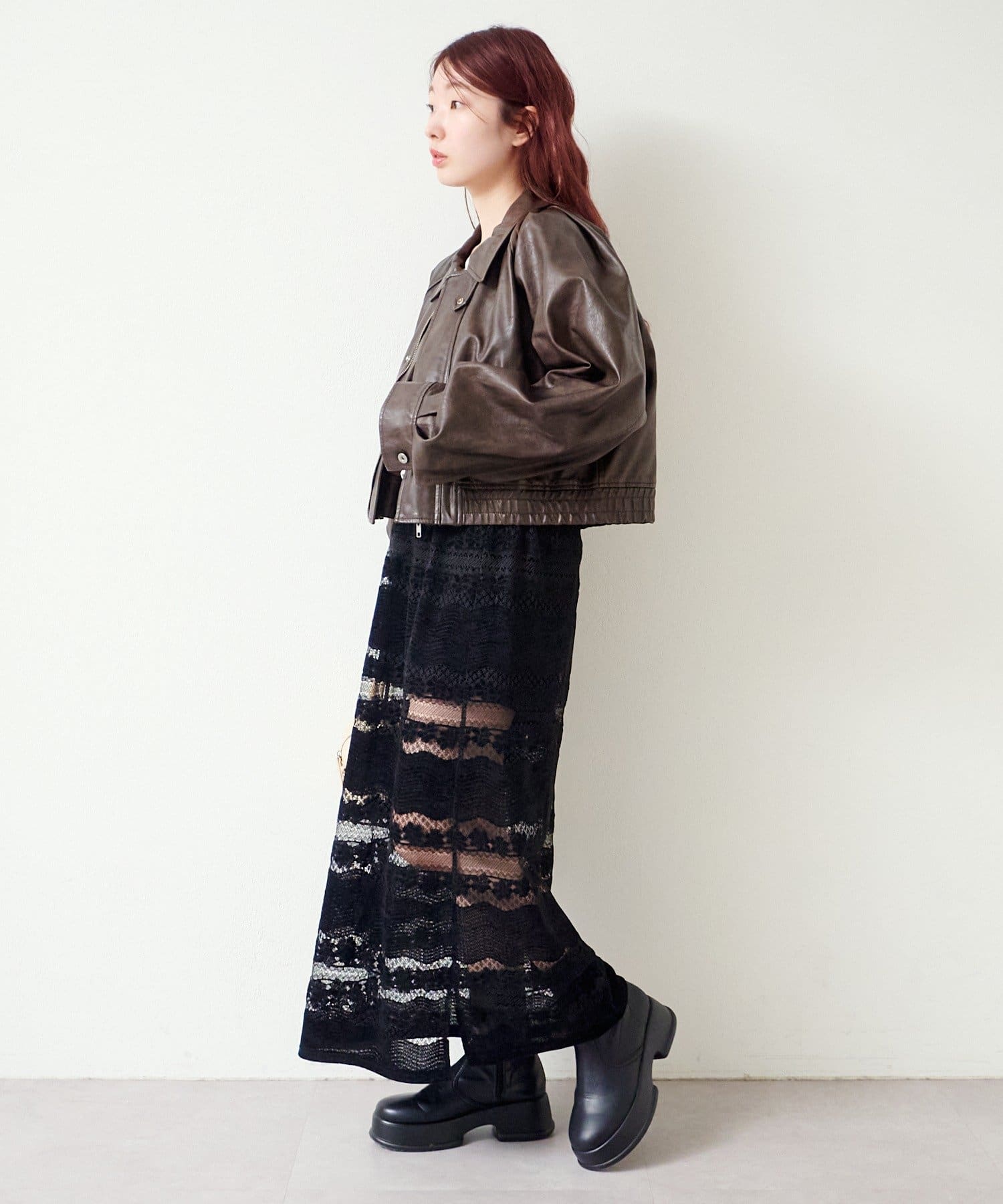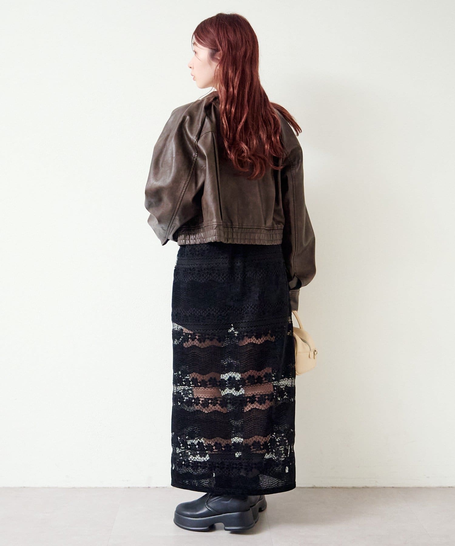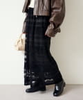 繊細なレースをボーダー状に切り替えた、上品さとモード感を併せ持つロングスカート。