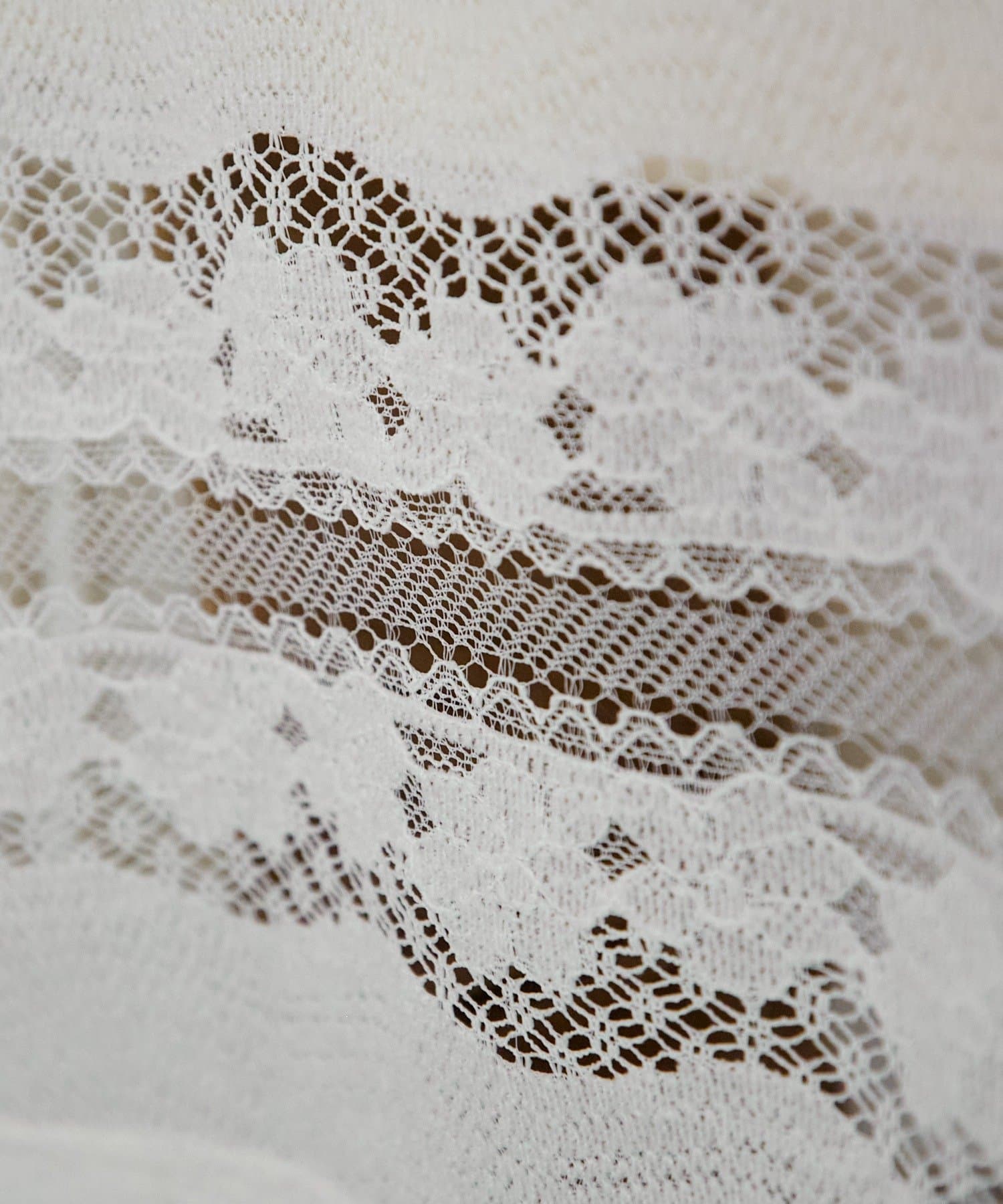 透け感のあるレースが軽やかな印象を演出しつつ、裏地付きで安心感のある着用感。