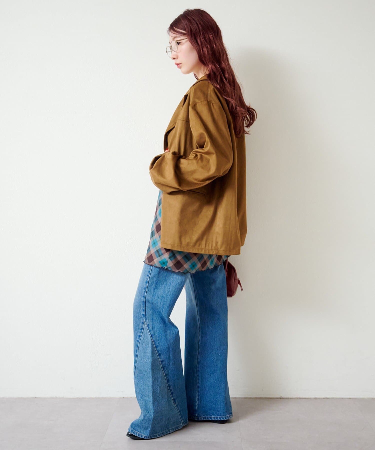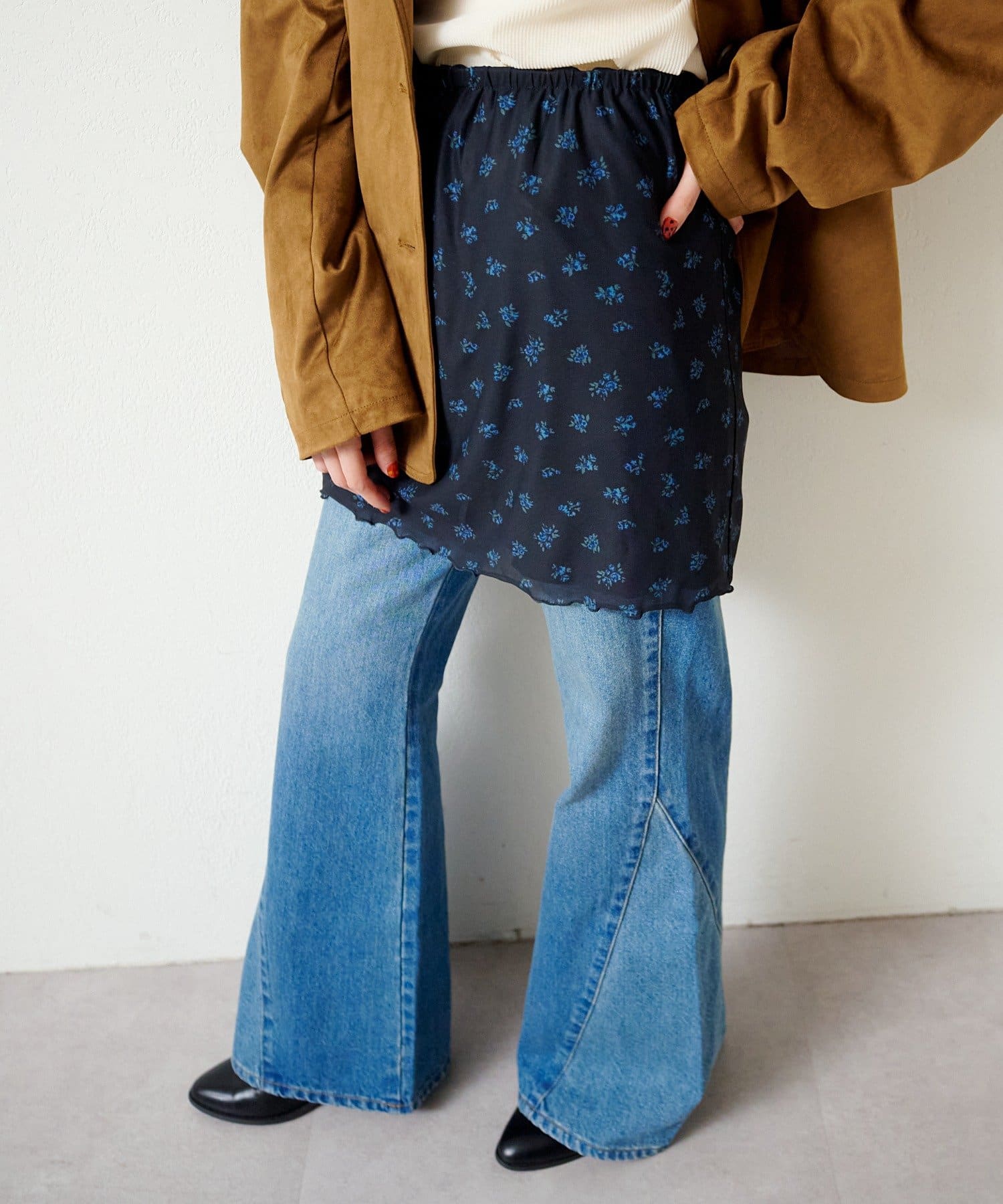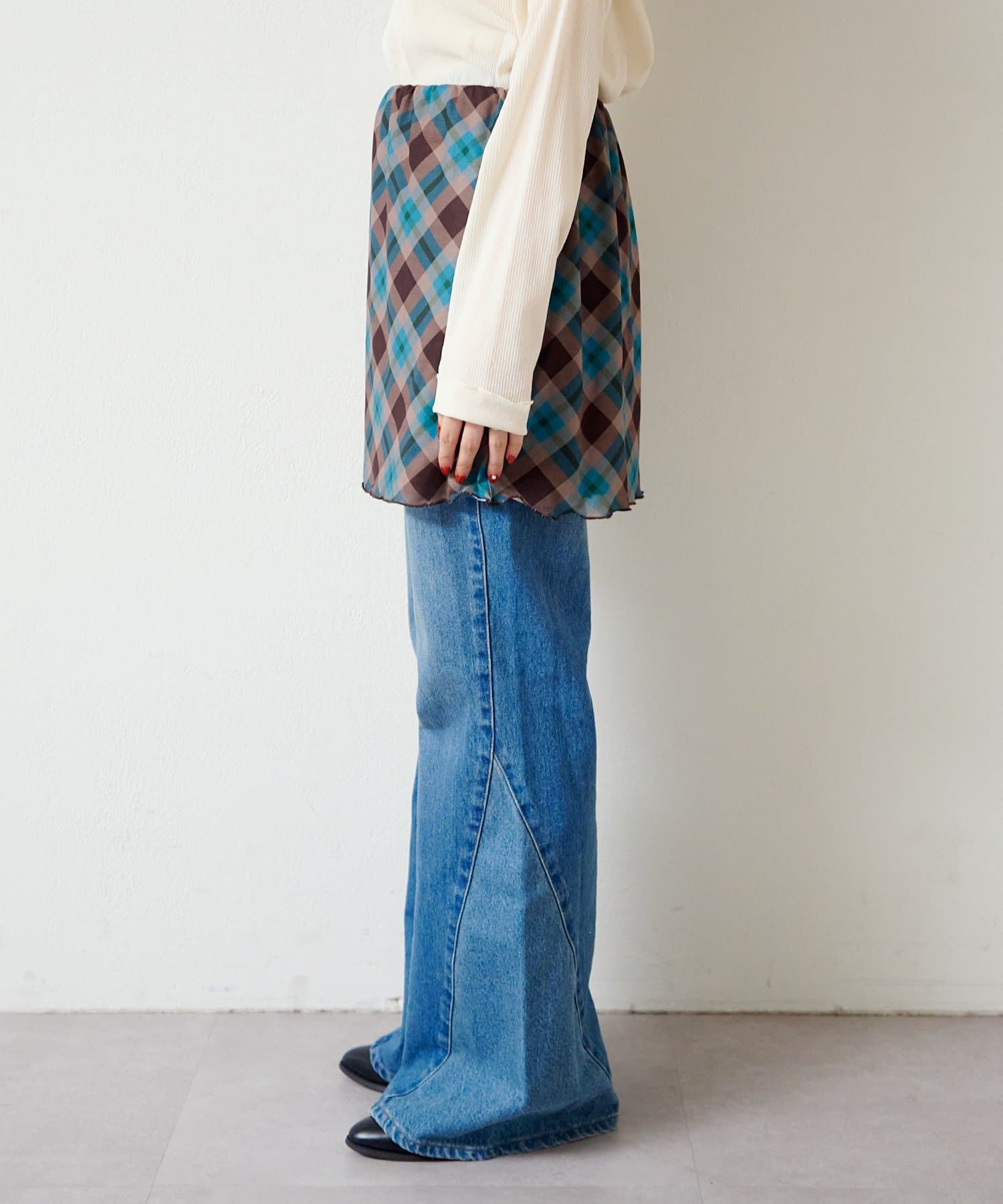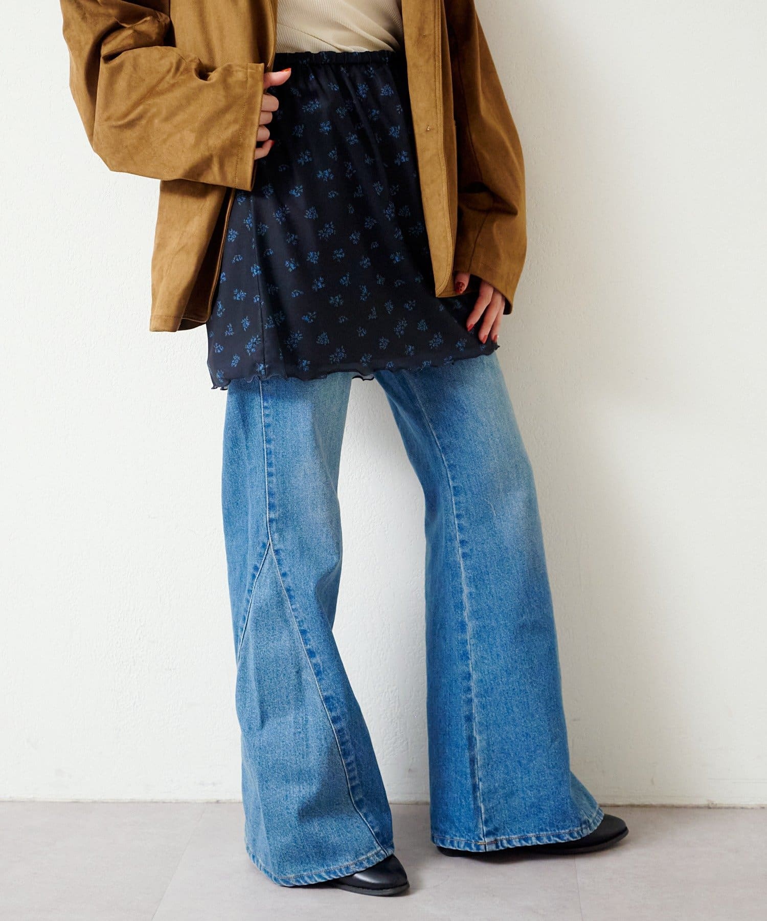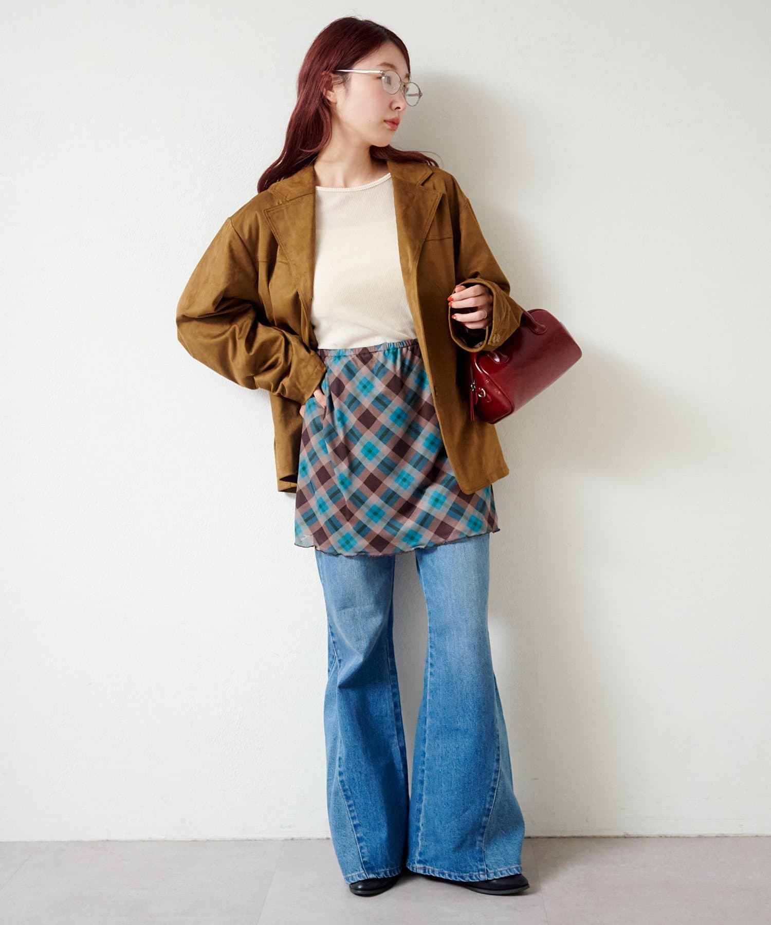 デニムやスラックス、ワイドパンツと合わせたレイヤードスタイルがおすすめ。