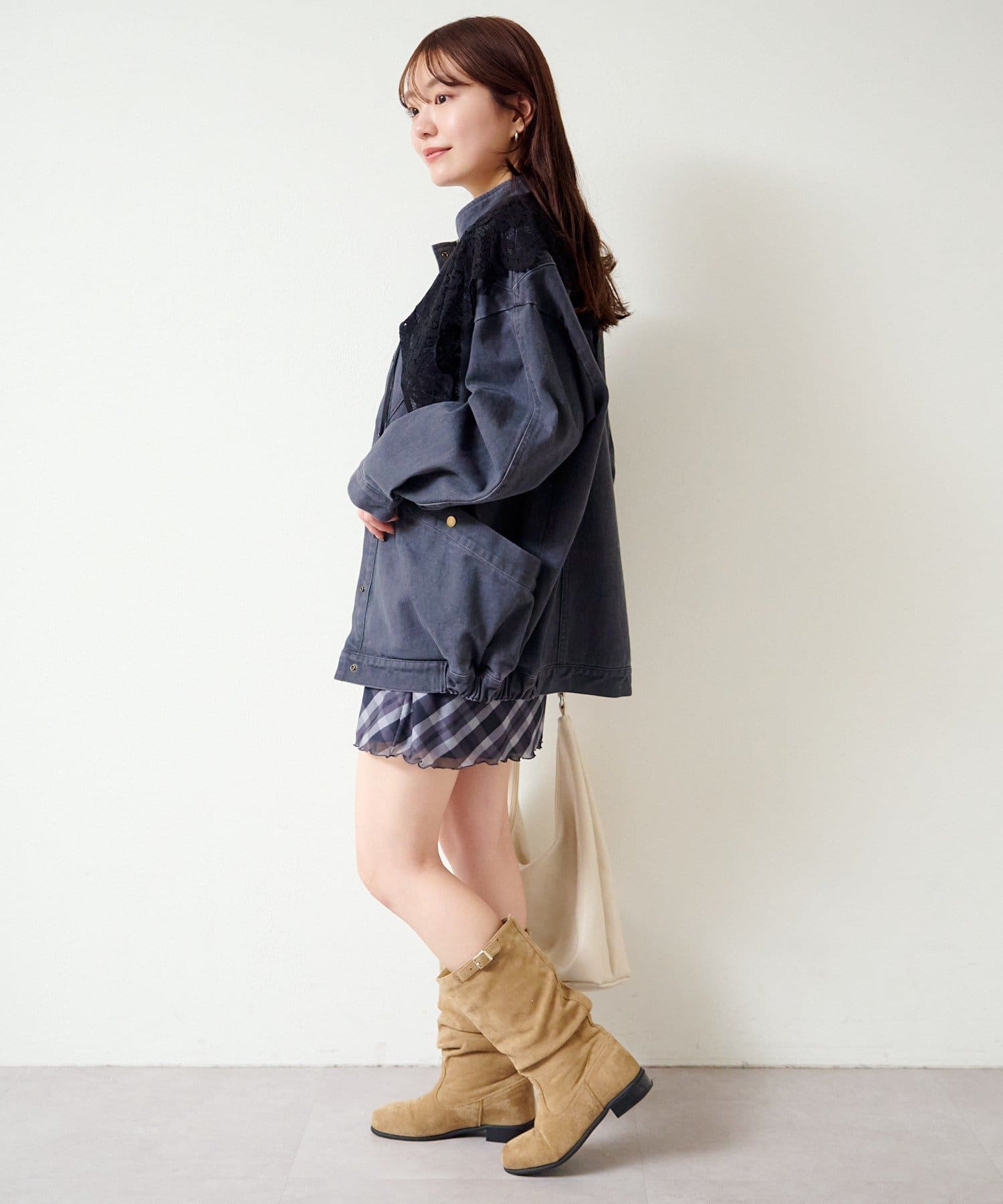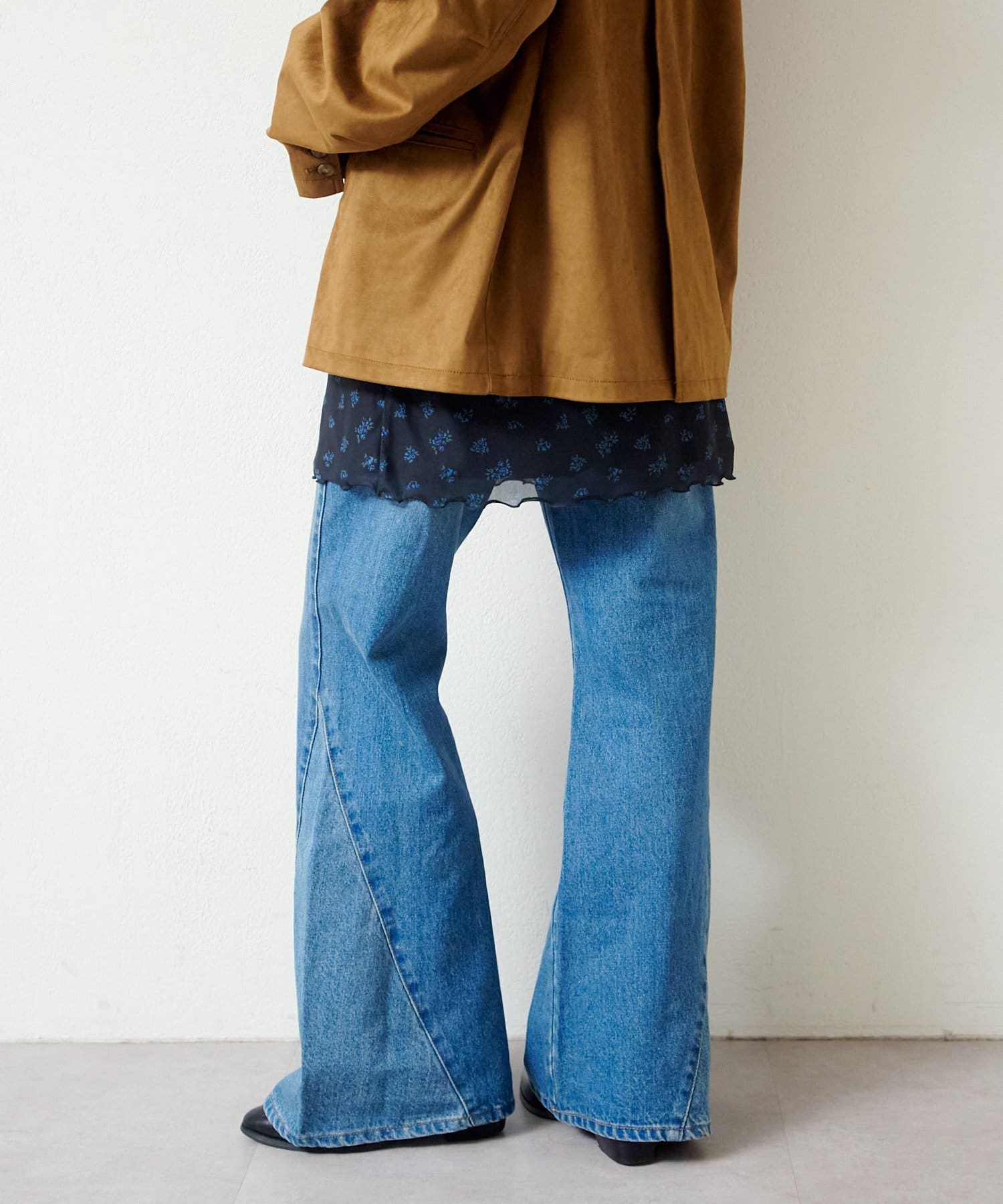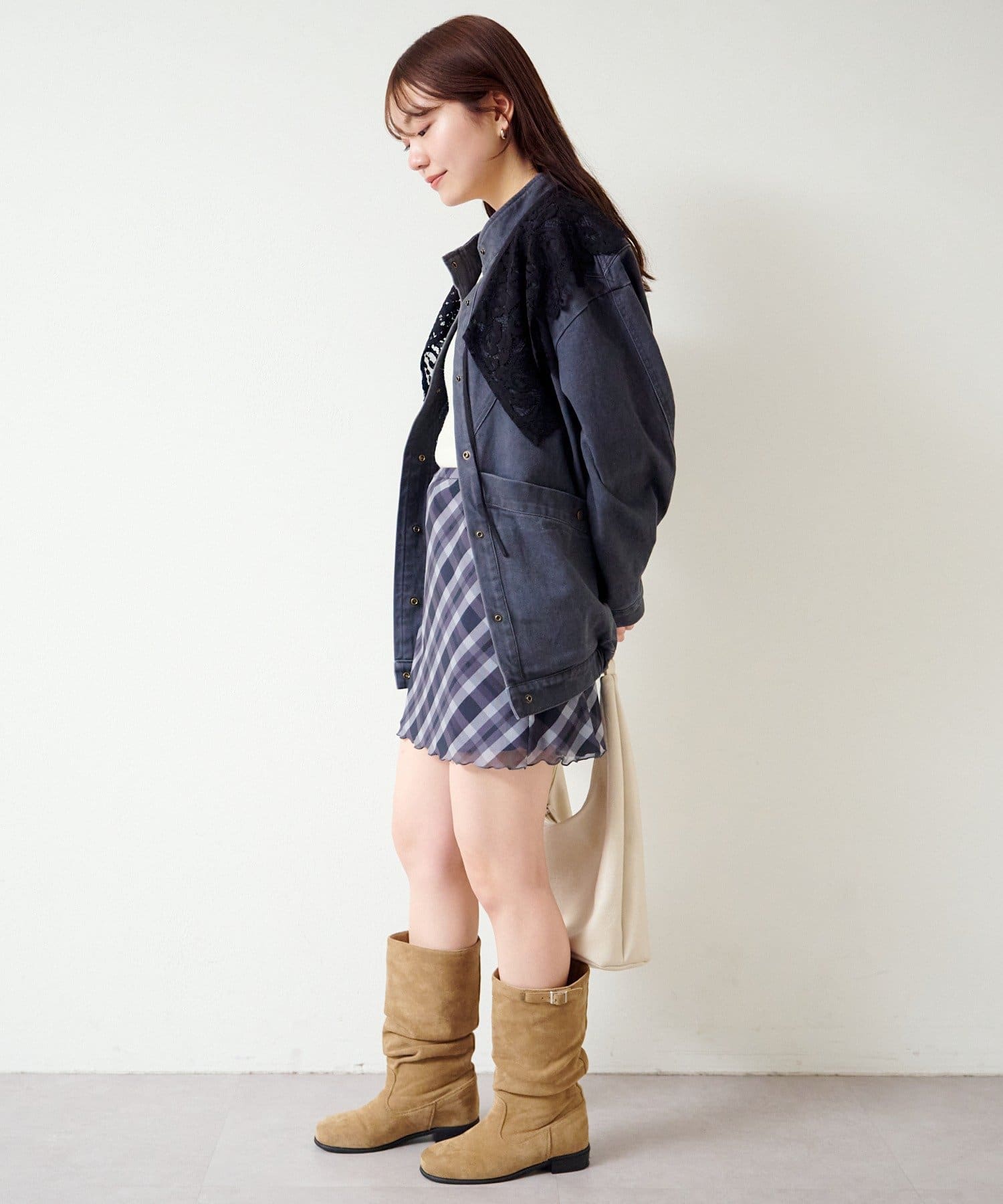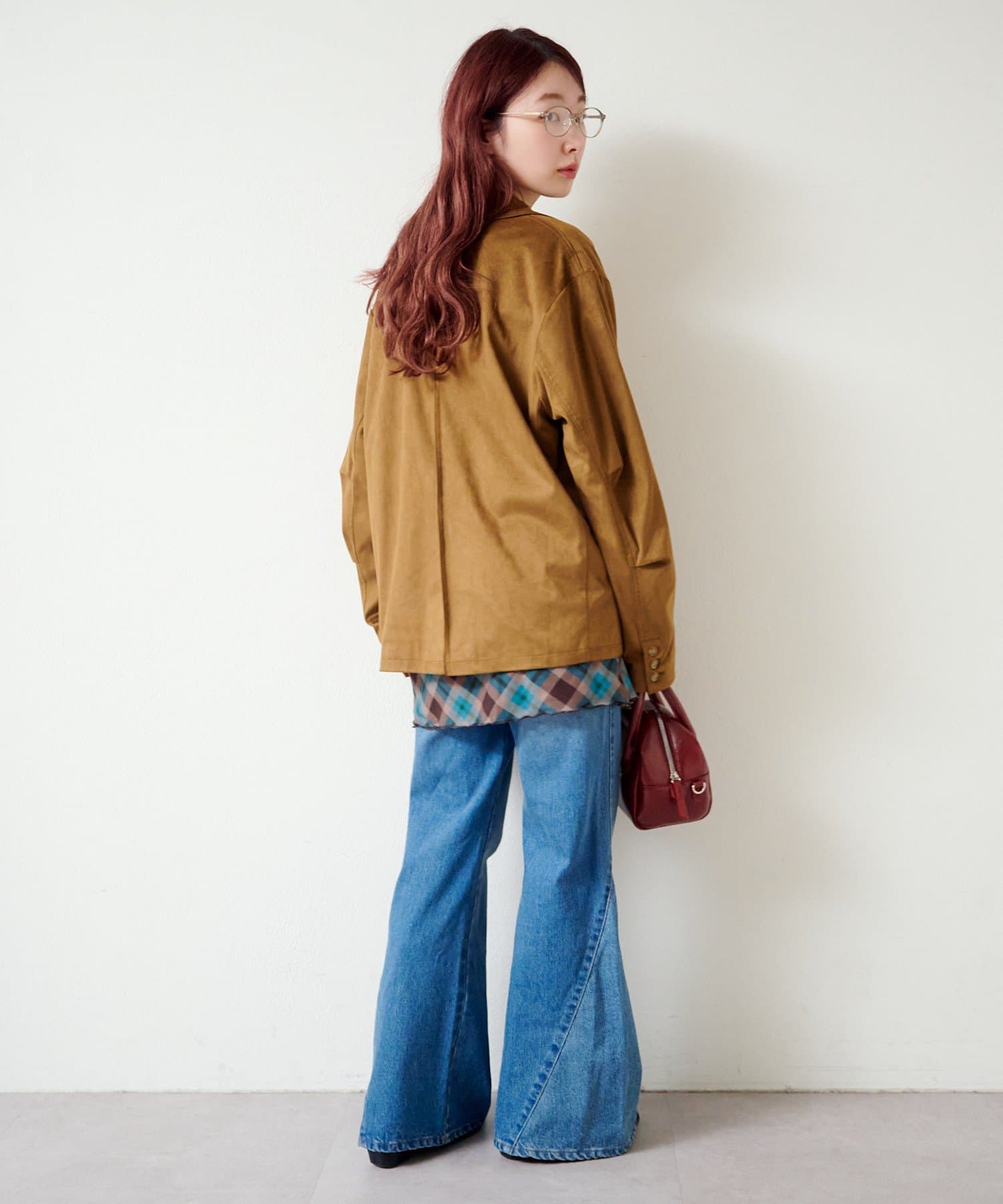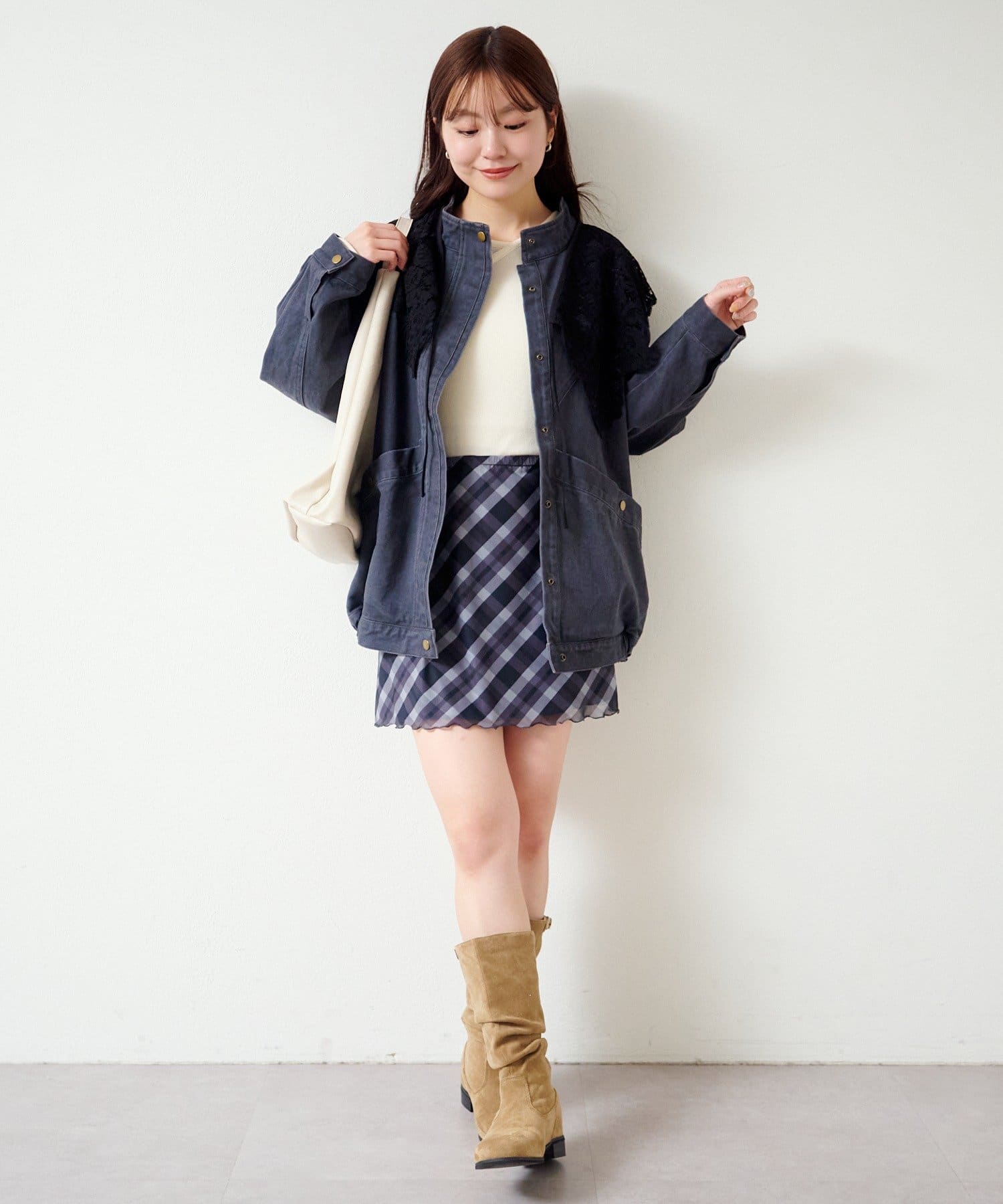 デニムやスラックス、ワイドパンツと合わせたレイヤードスタイルがおすすめ。