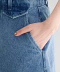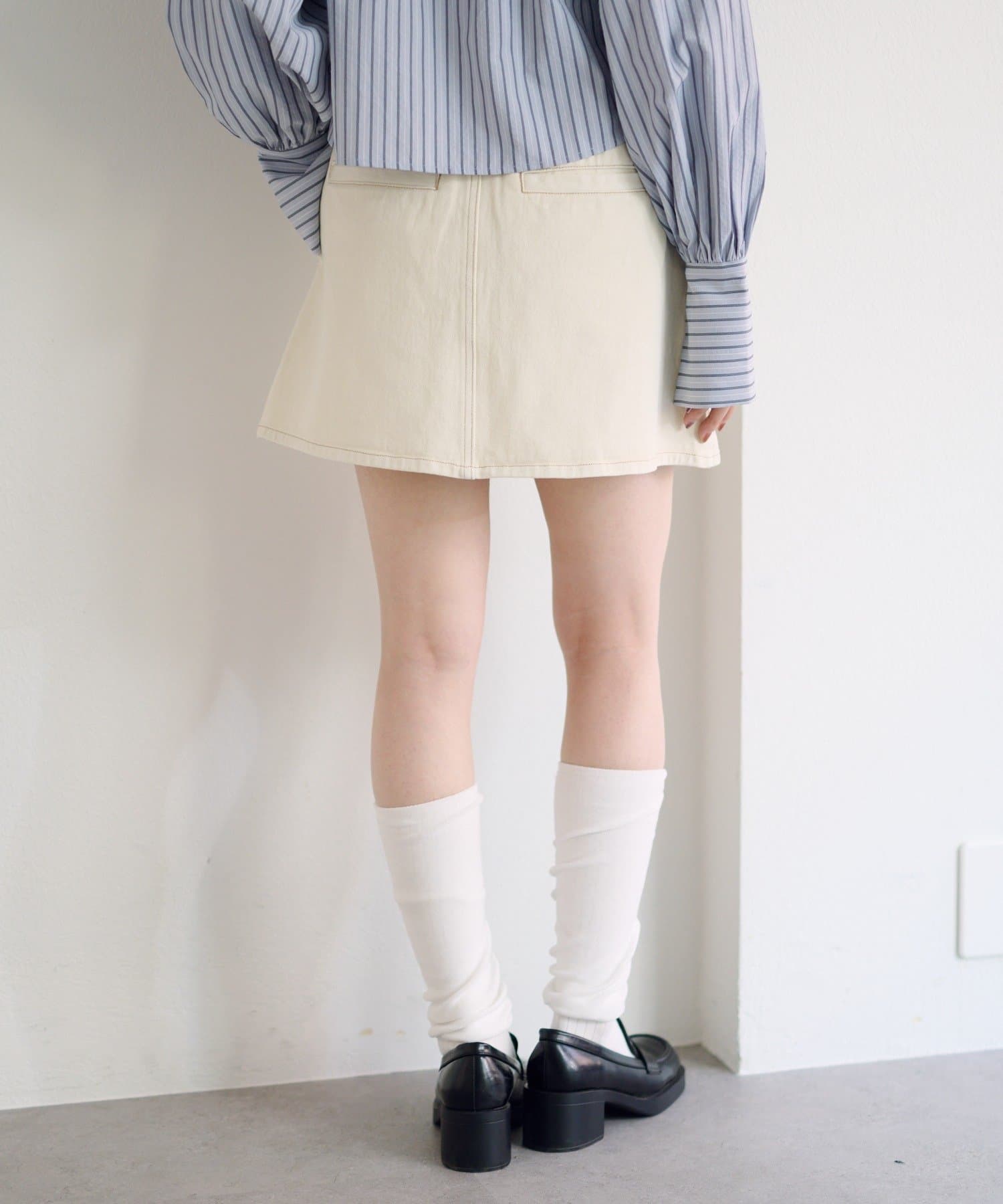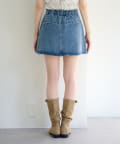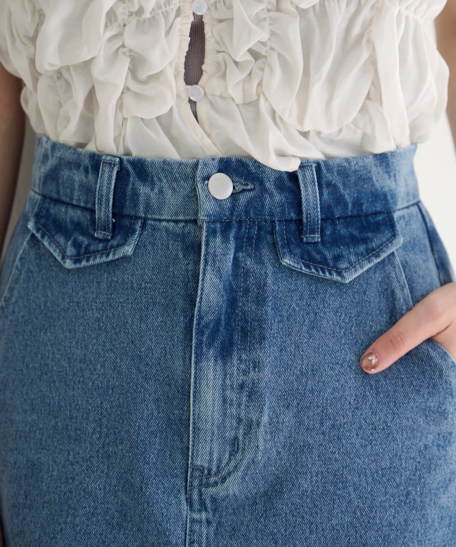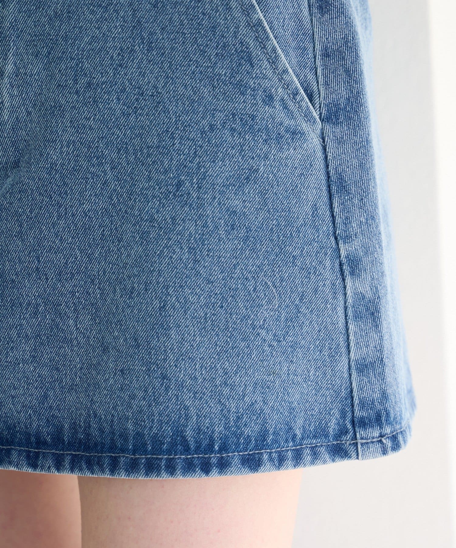 フロントのフラップデザインがアクセントになったデニムミニスカート。