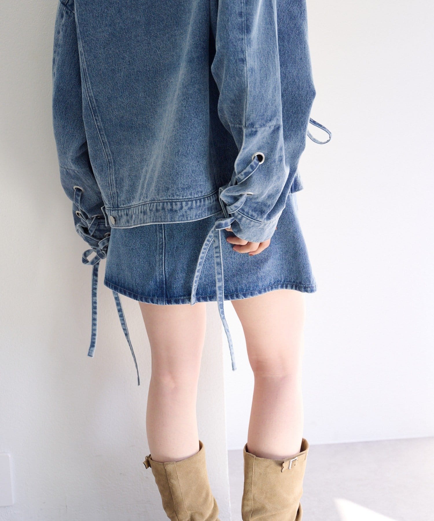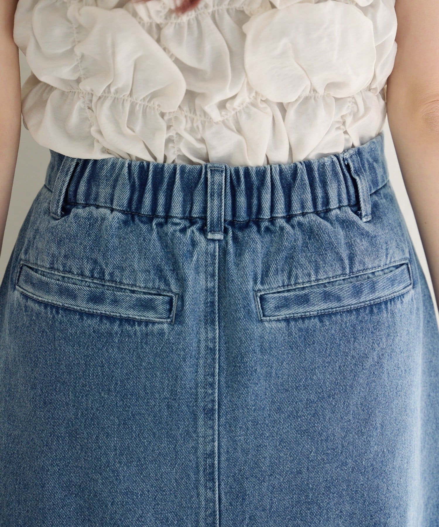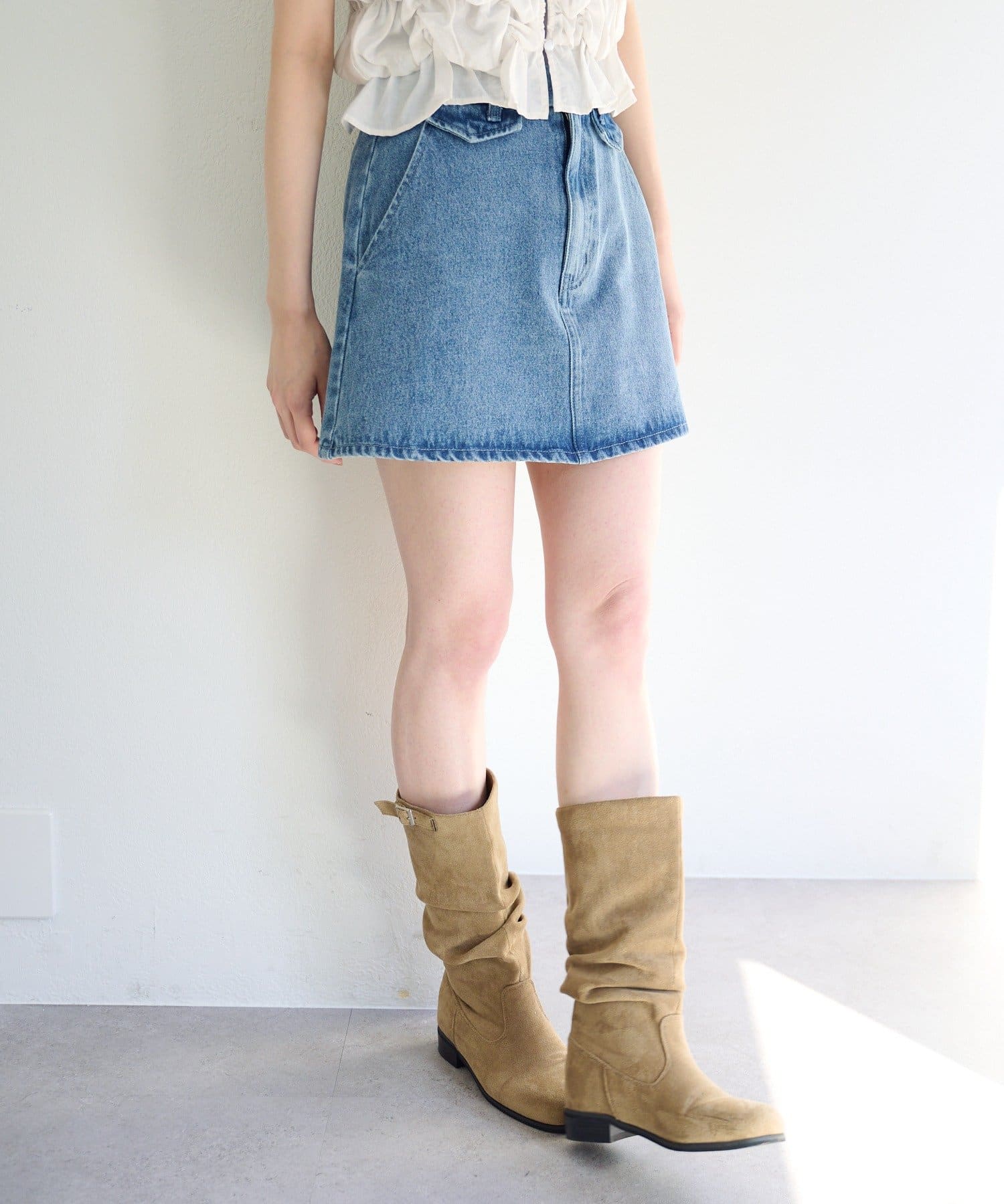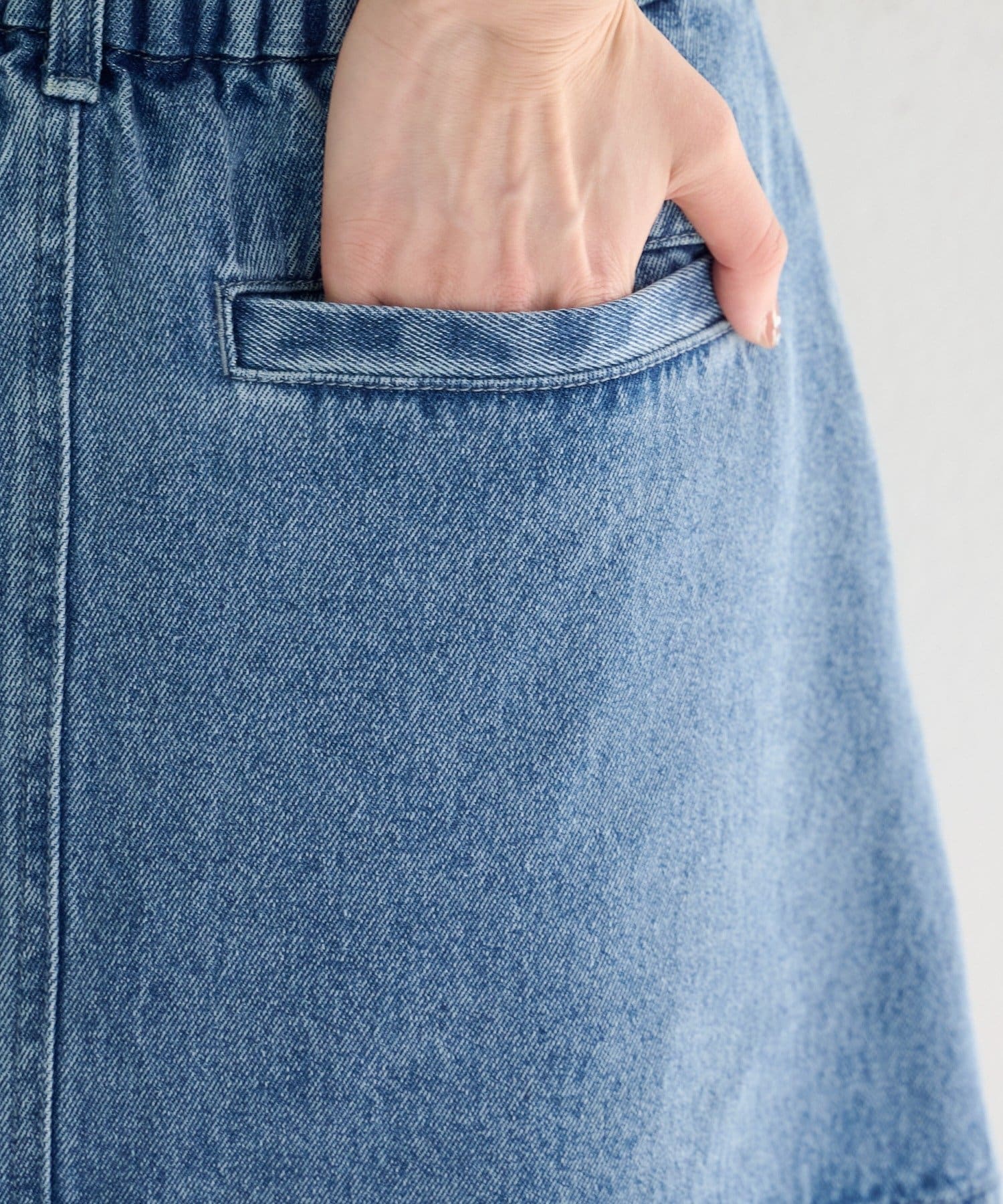 フロントのフラップデザインがアクセントになったデニムミニスカート。