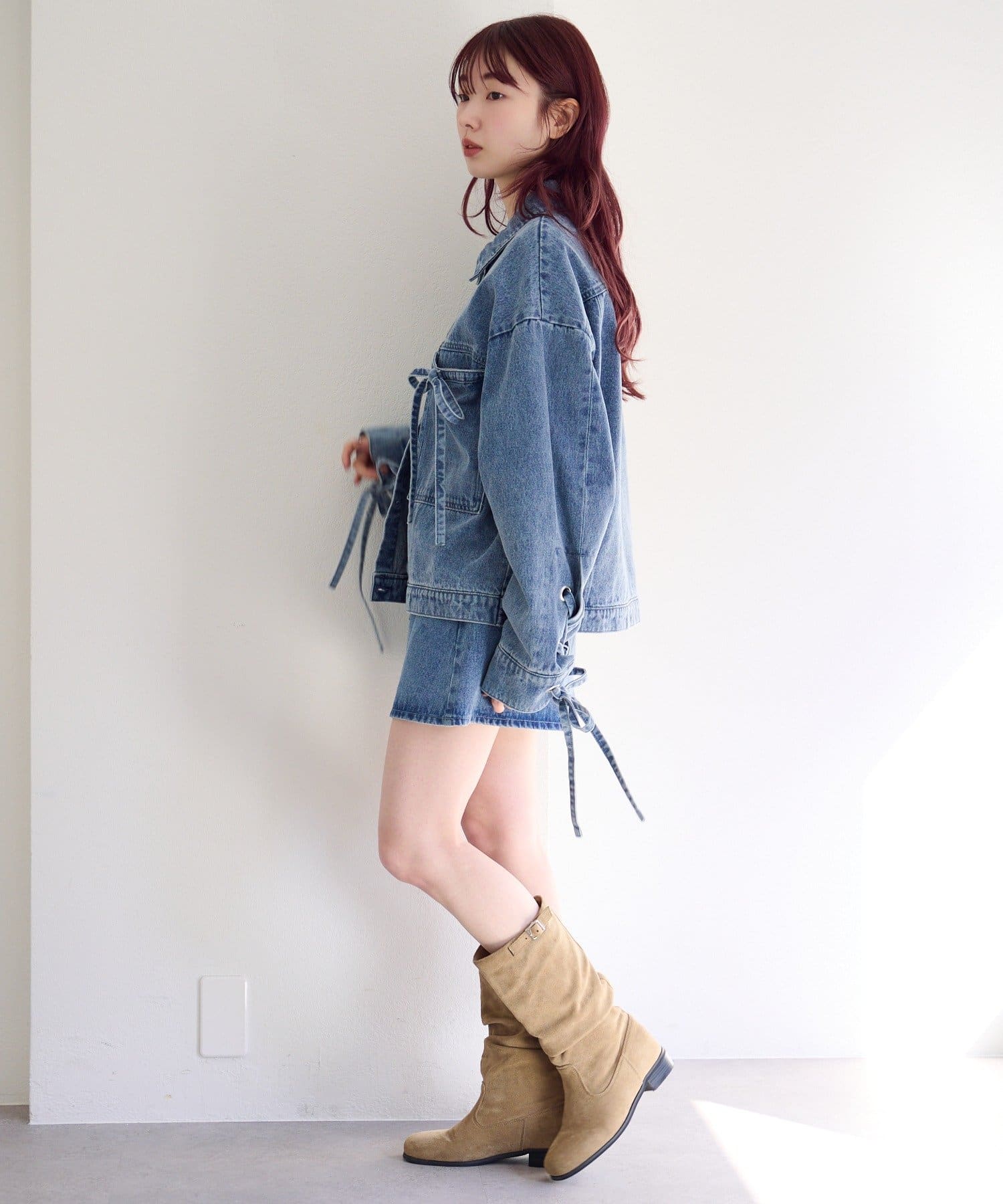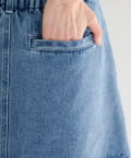 程よく厚みのあるデニム素材で、シーズンレスに着用しやすい質感。