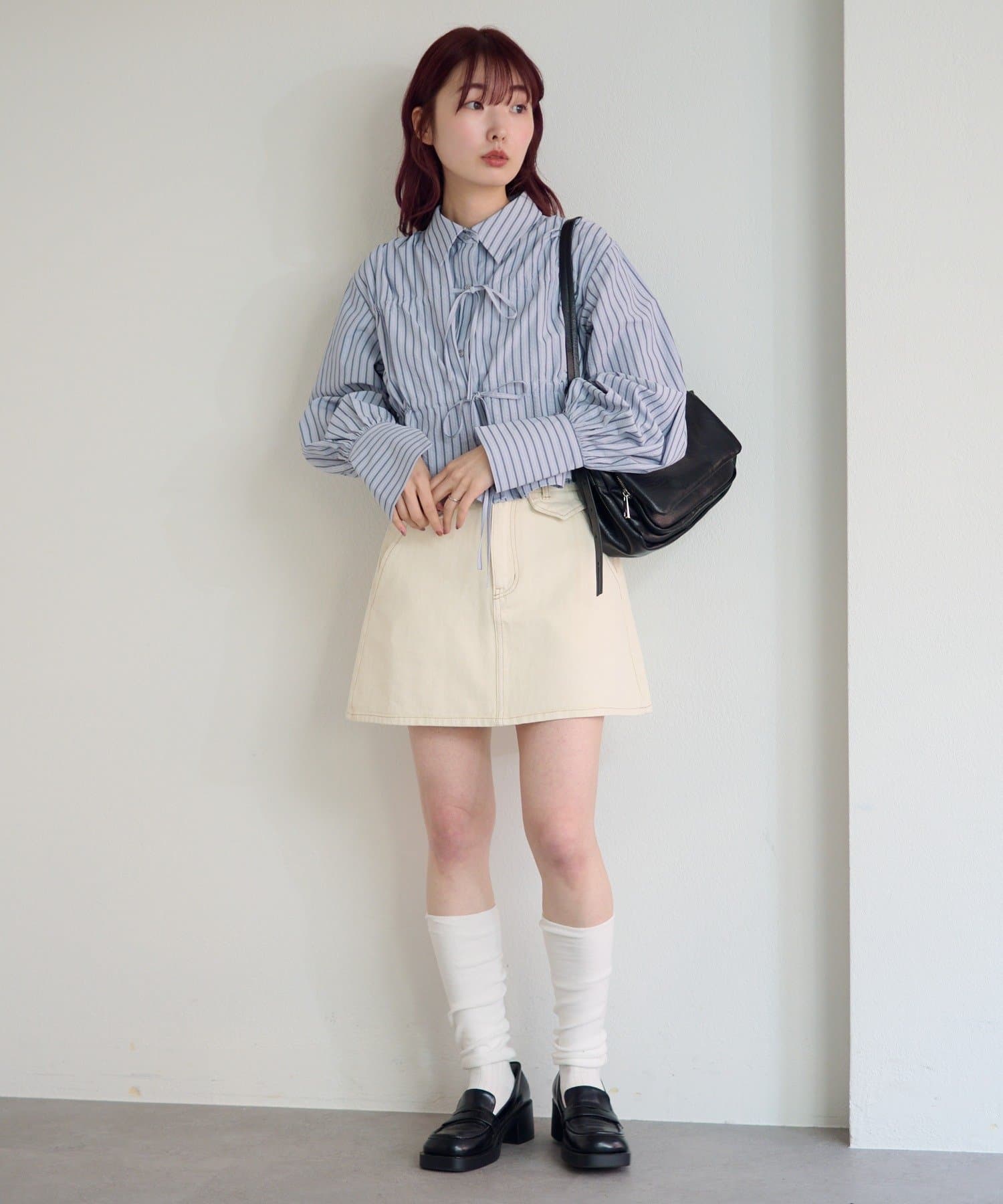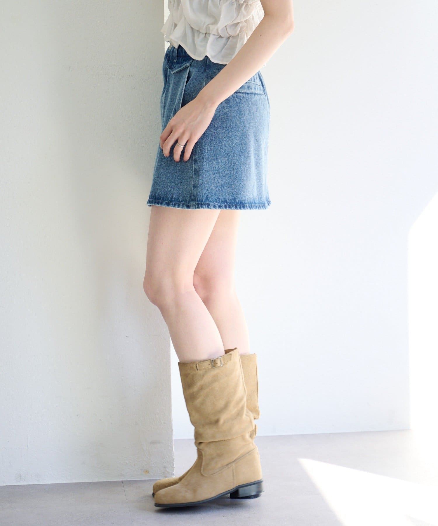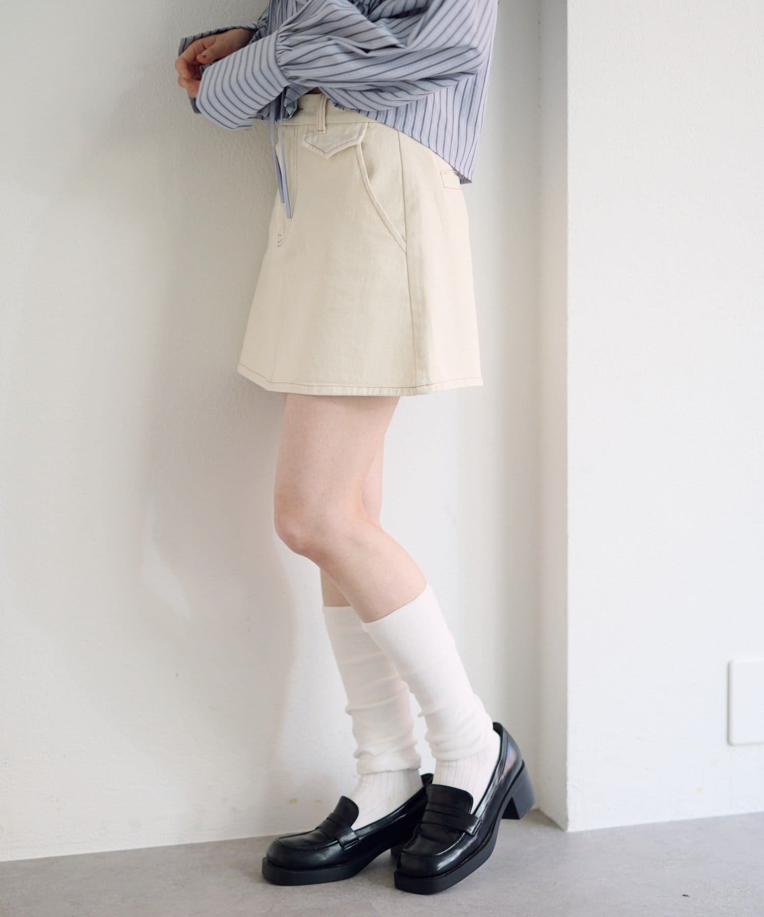 コンパクトな丈感ながら、程よく台形シルエットで脚のラインをきれいに見せてくれます。