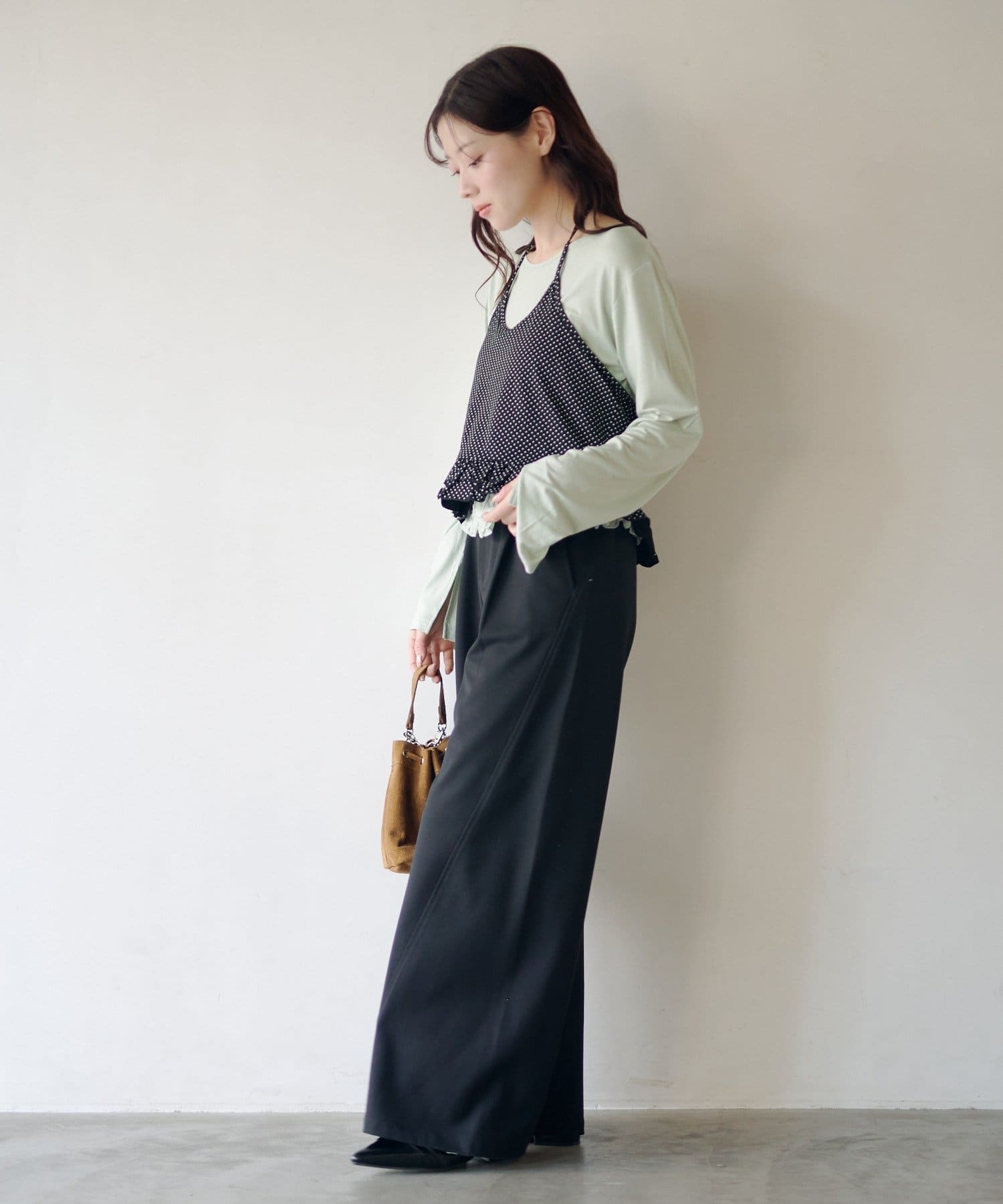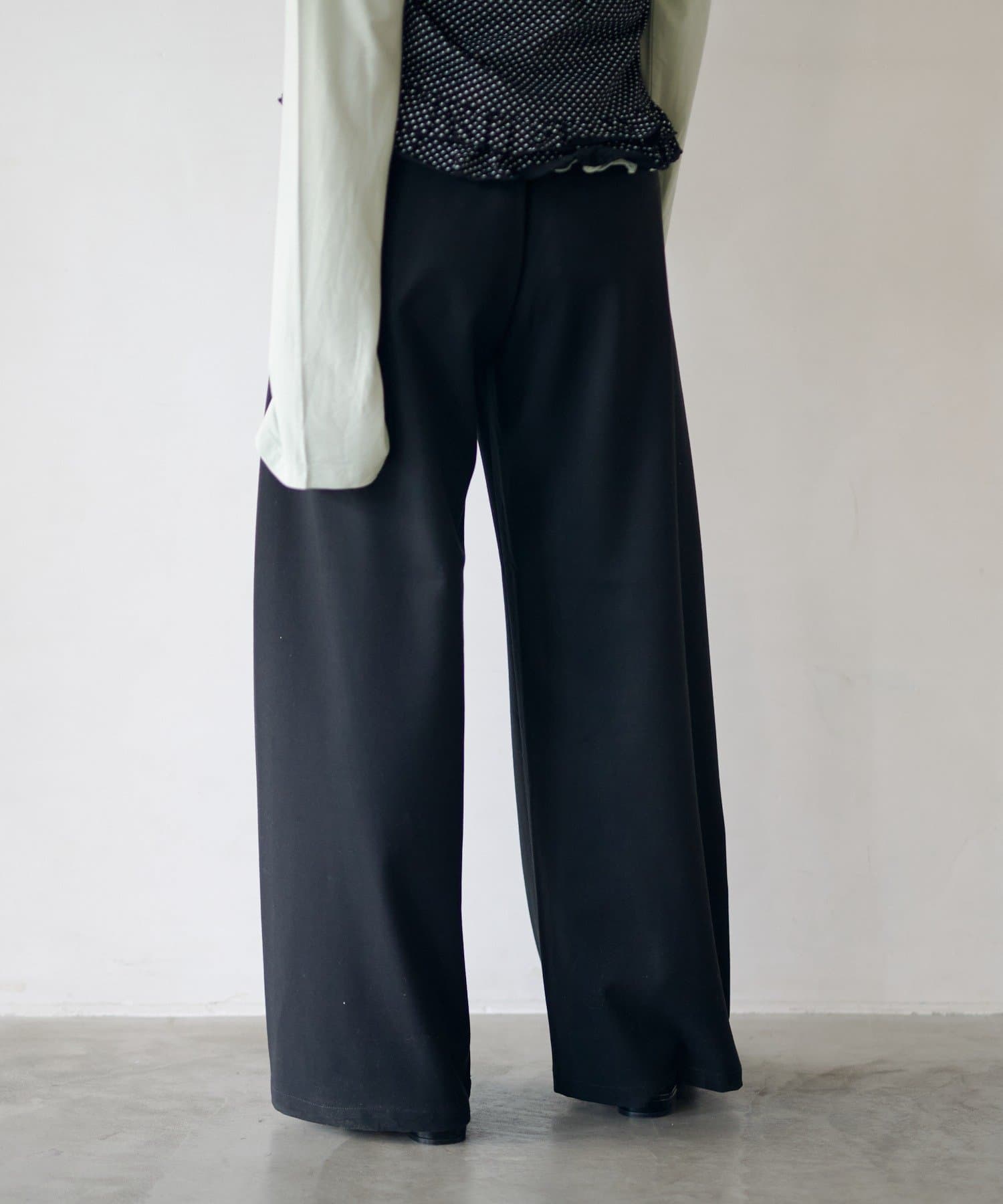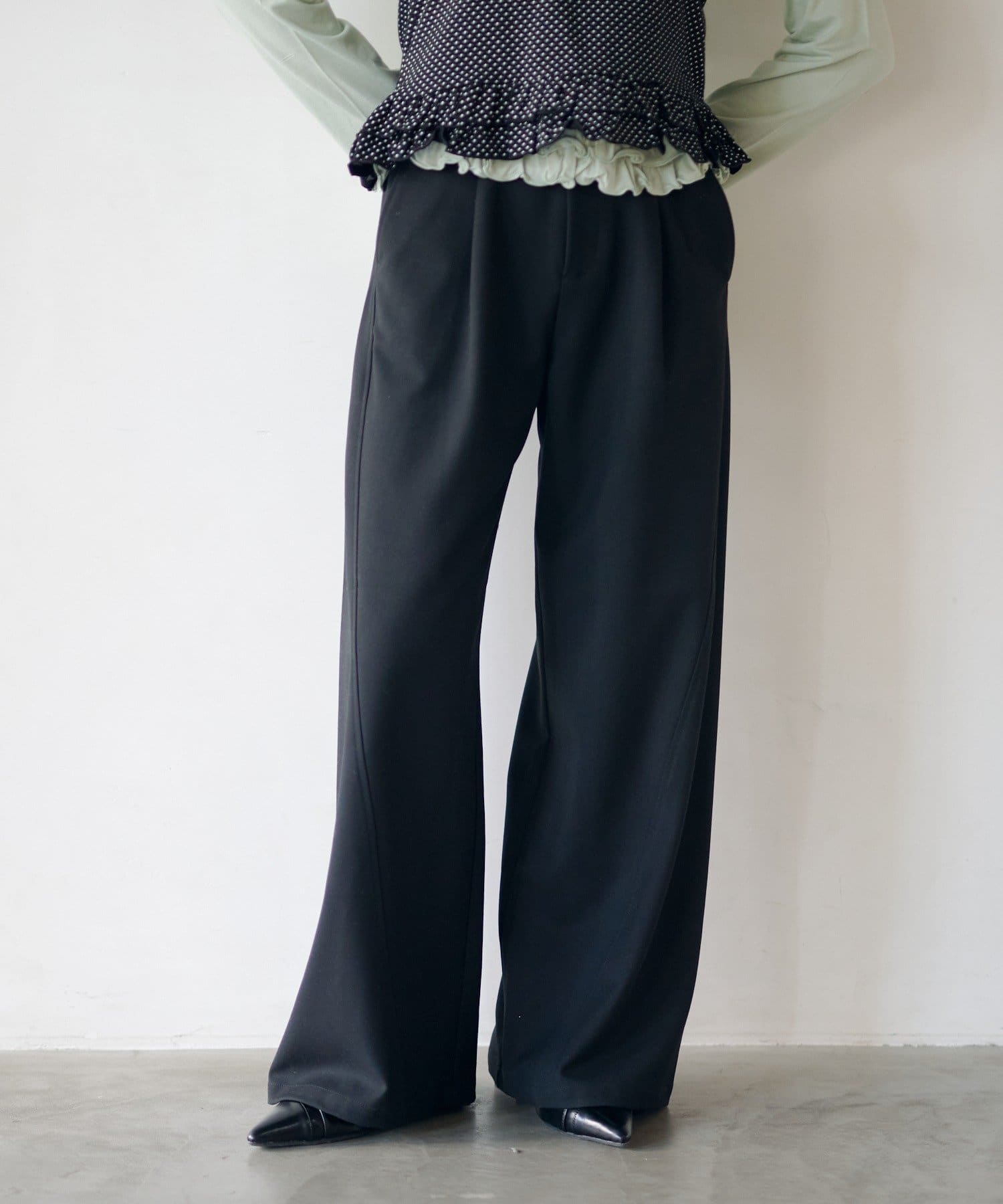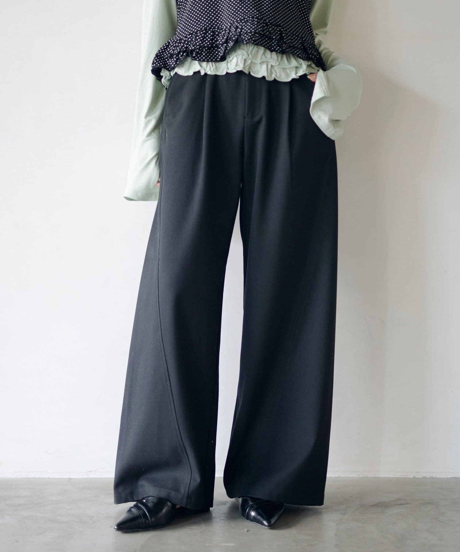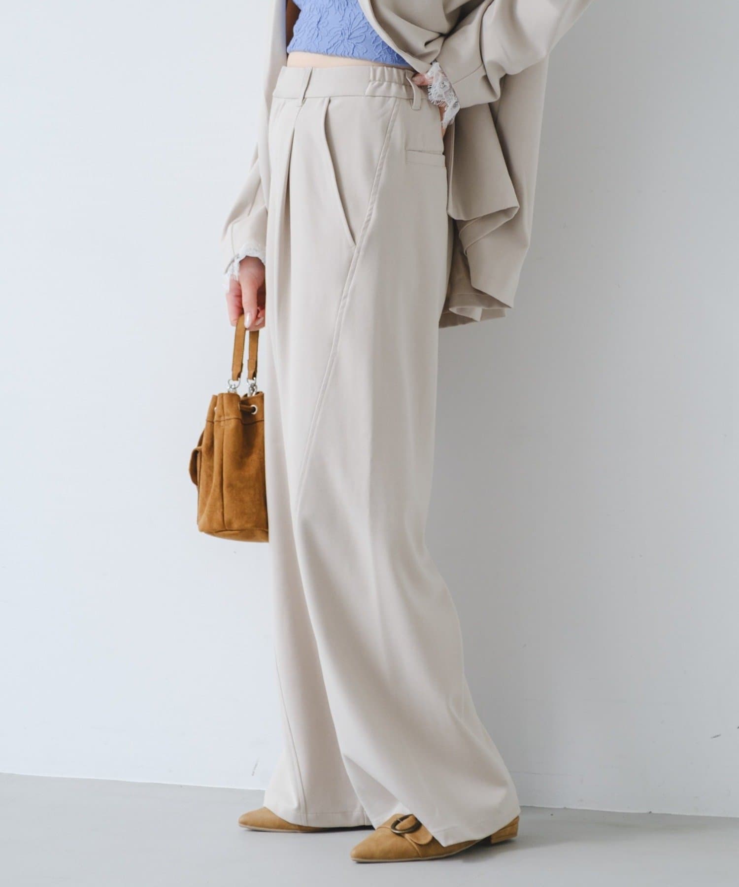 裾に向かって内側に入る切り替えのデザインを施すことで、立体感が生まれ自然と脚をすっきり見せてくれます。