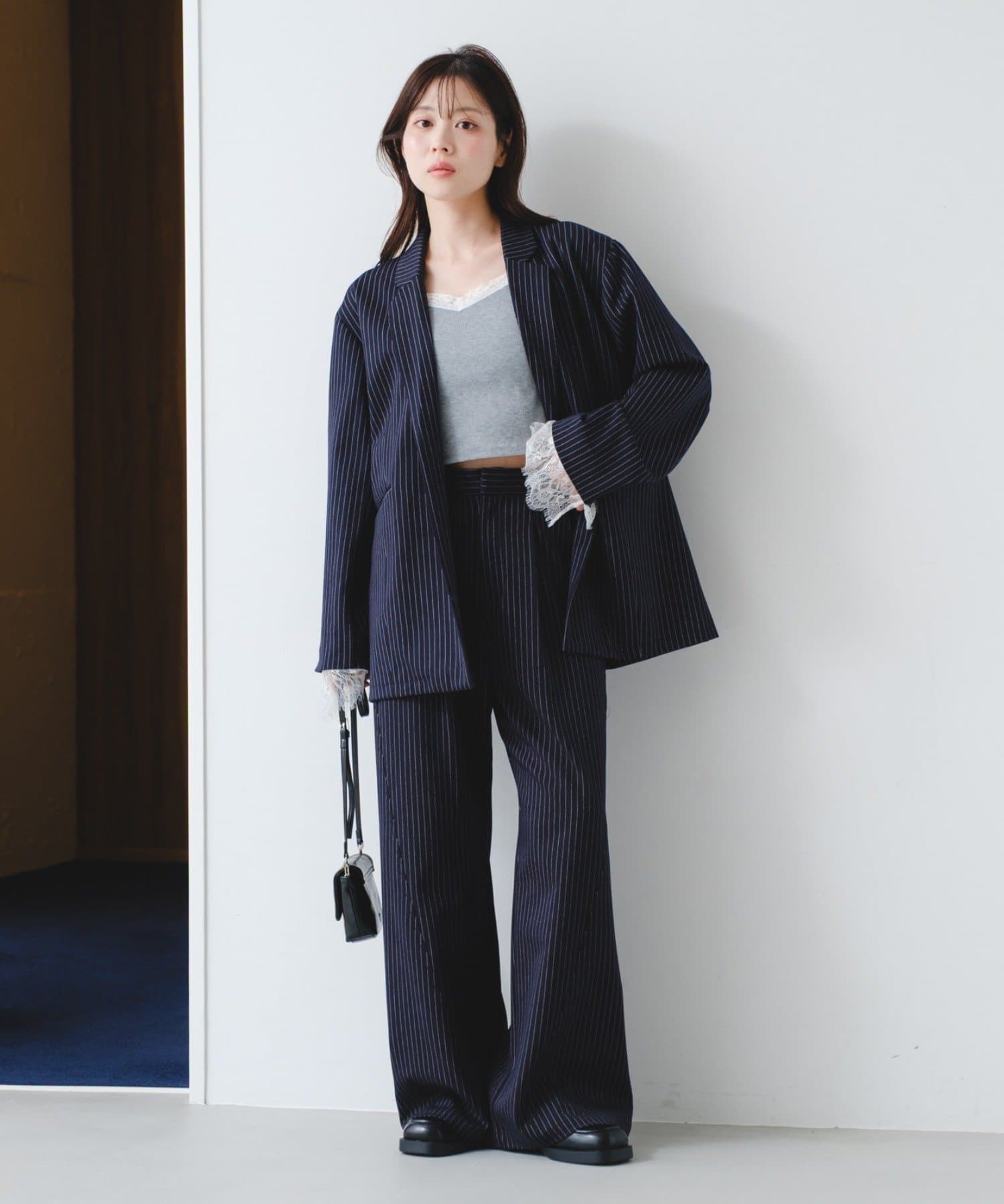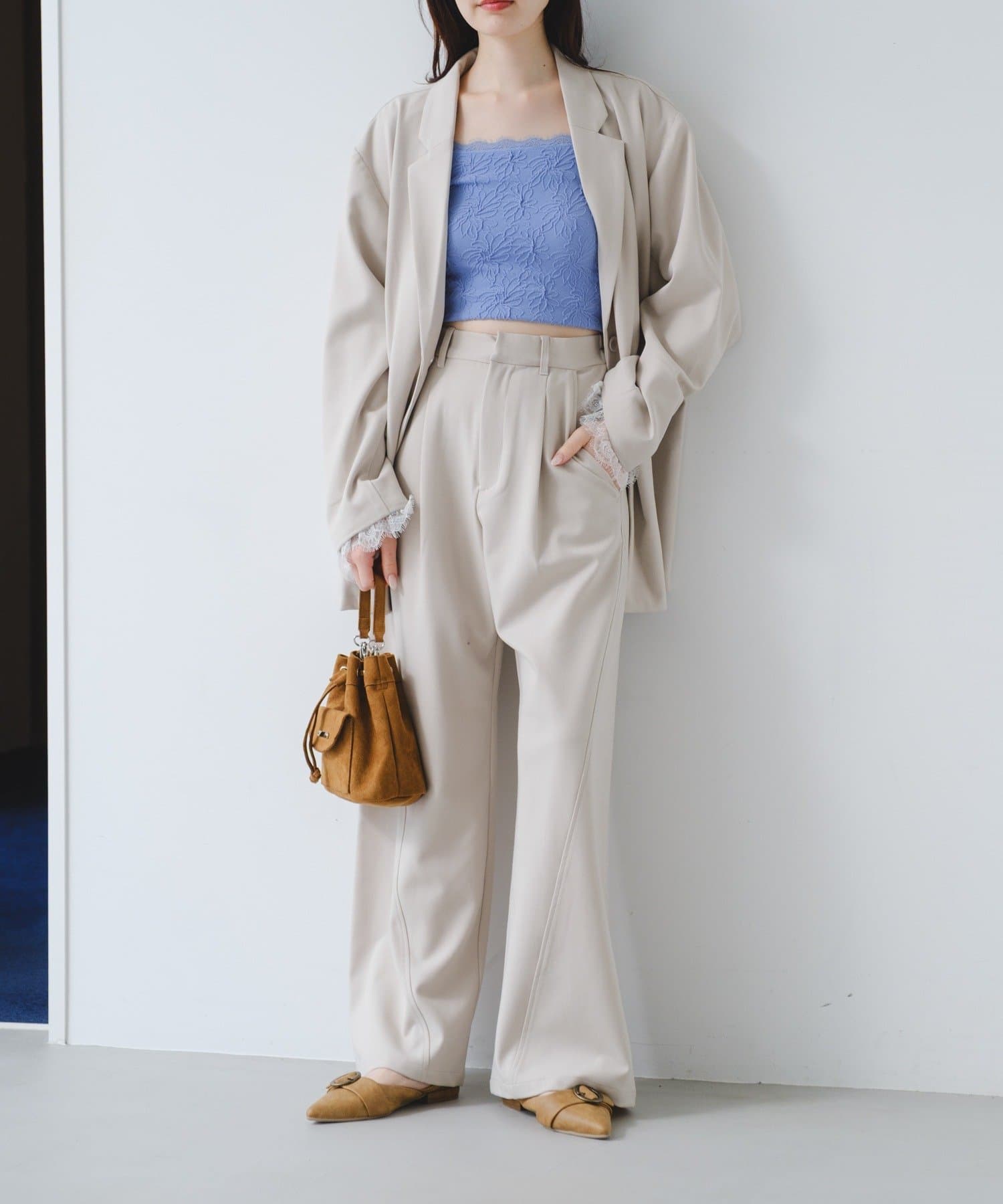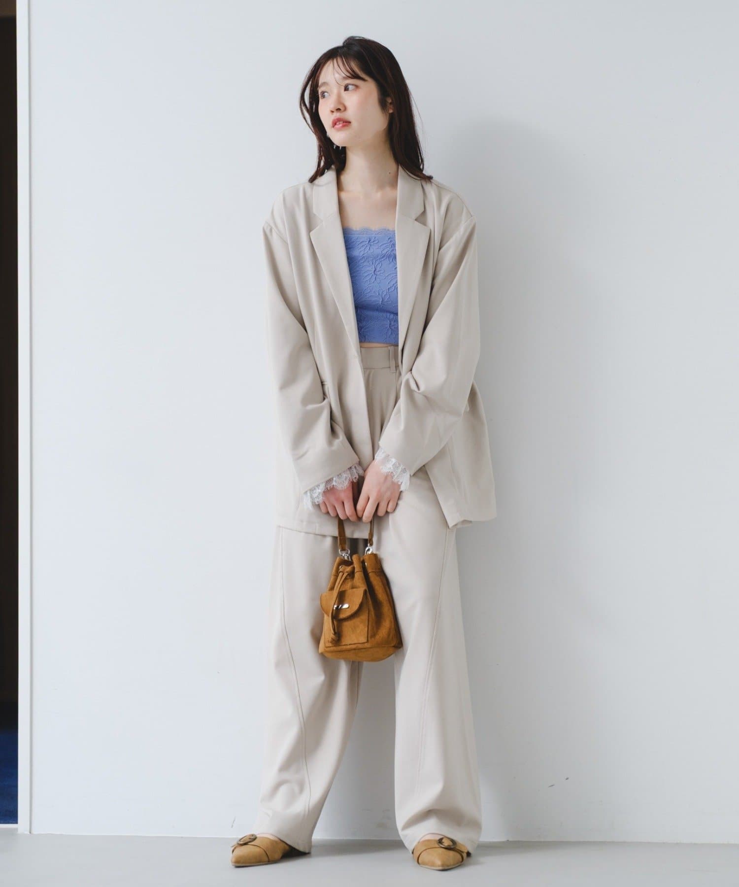 ジャケットに合わせたきれいめスタイルはもちろん、コンパクトトップスや