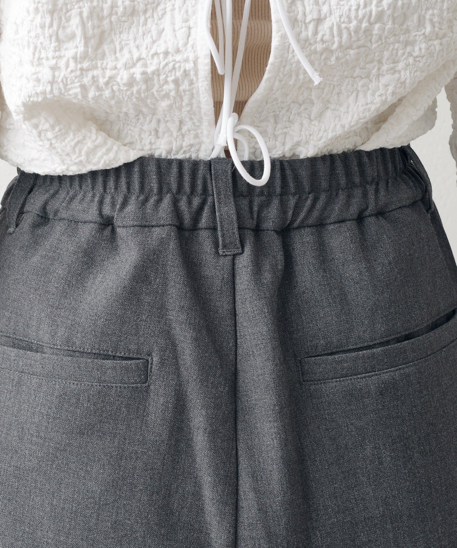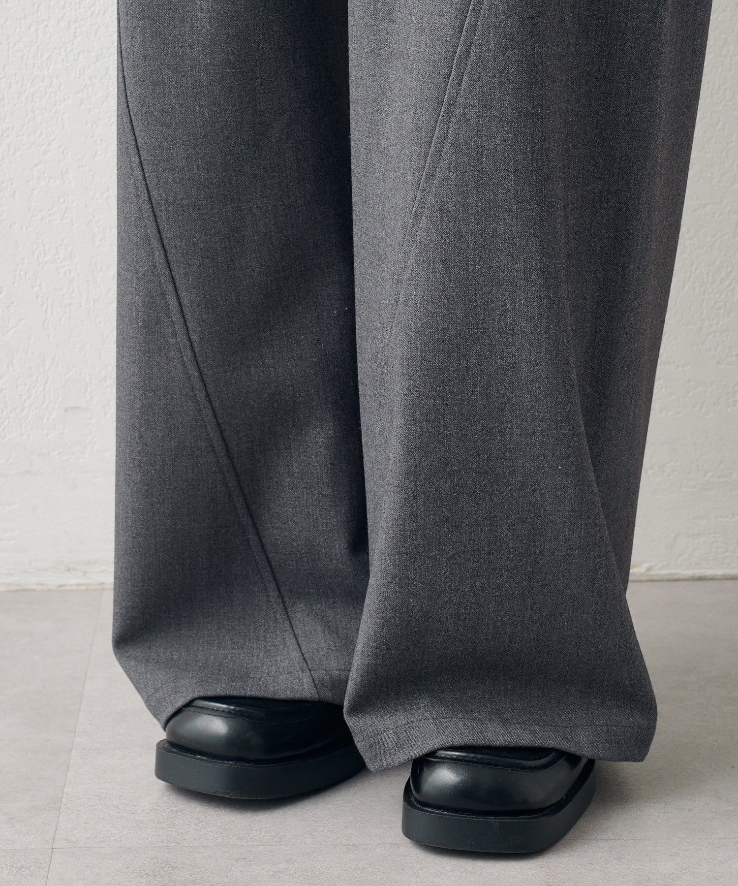 裾に向かって内側に入る切り替えのデザインを施すことで、立体感が生まれ自然と脚をすっきり見せてくれます。