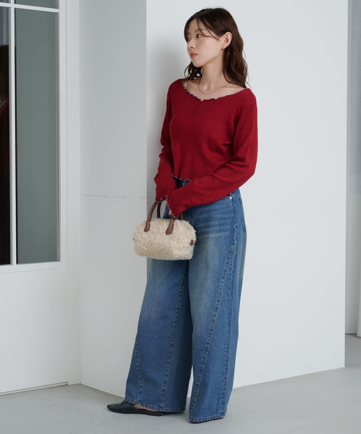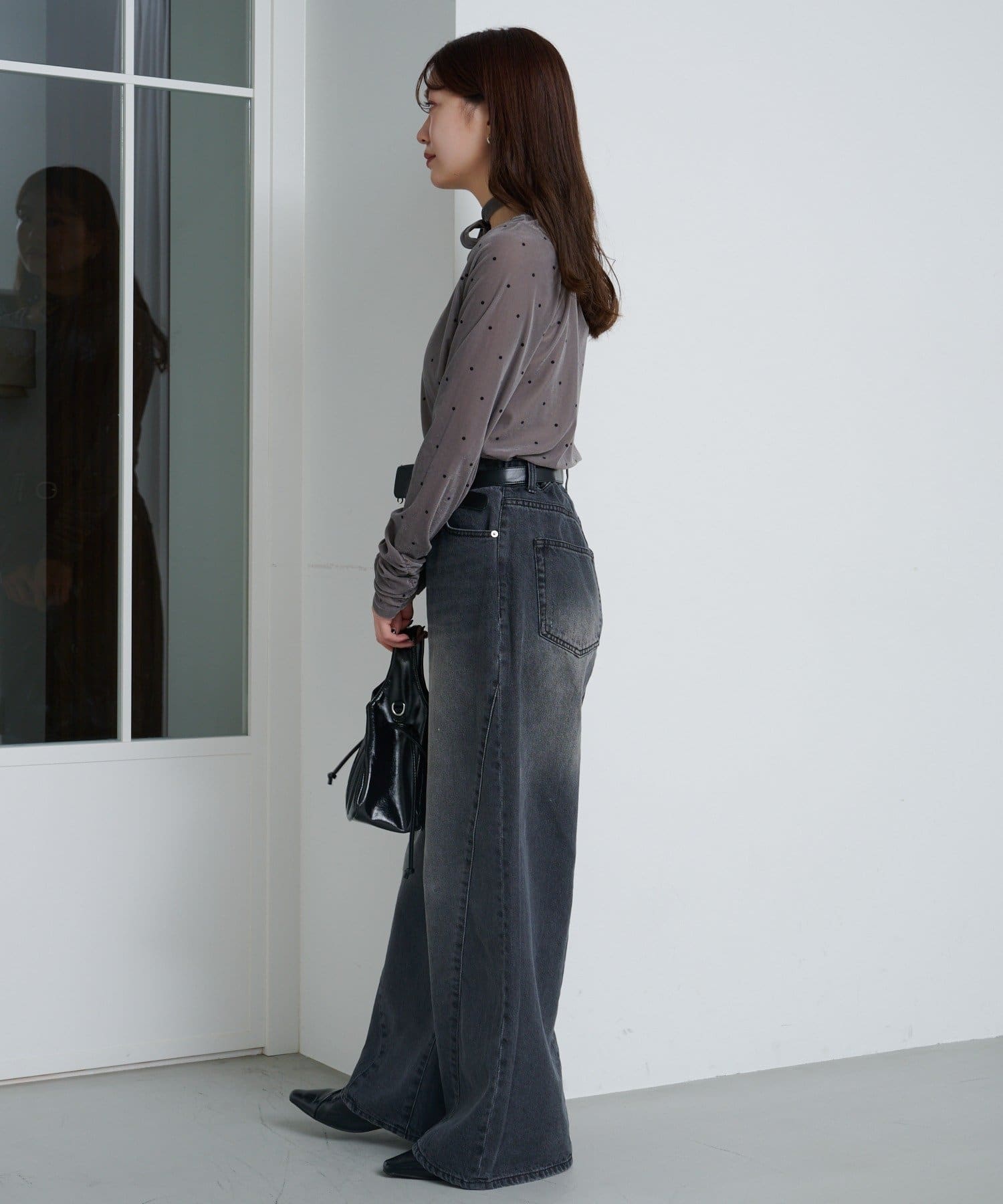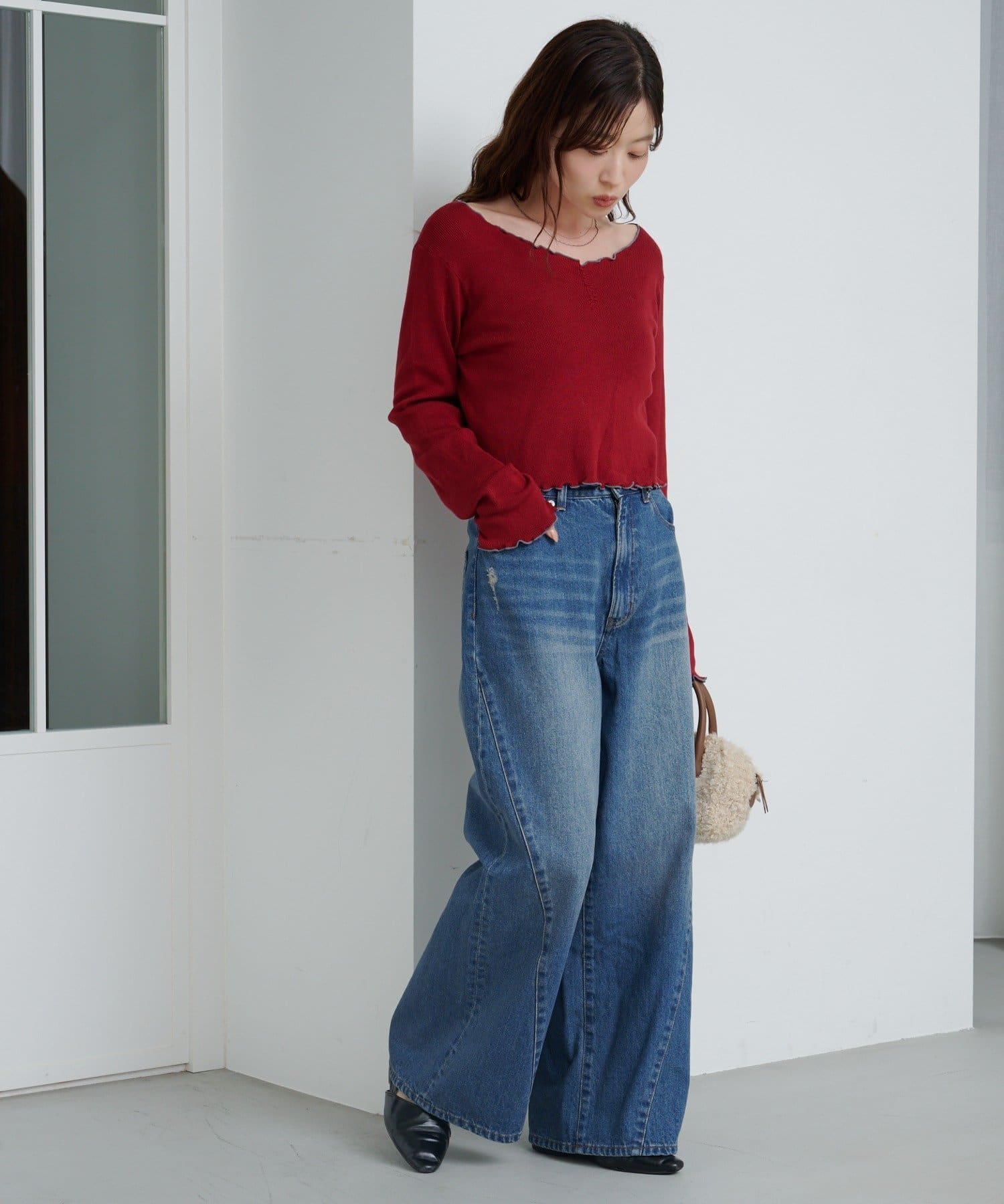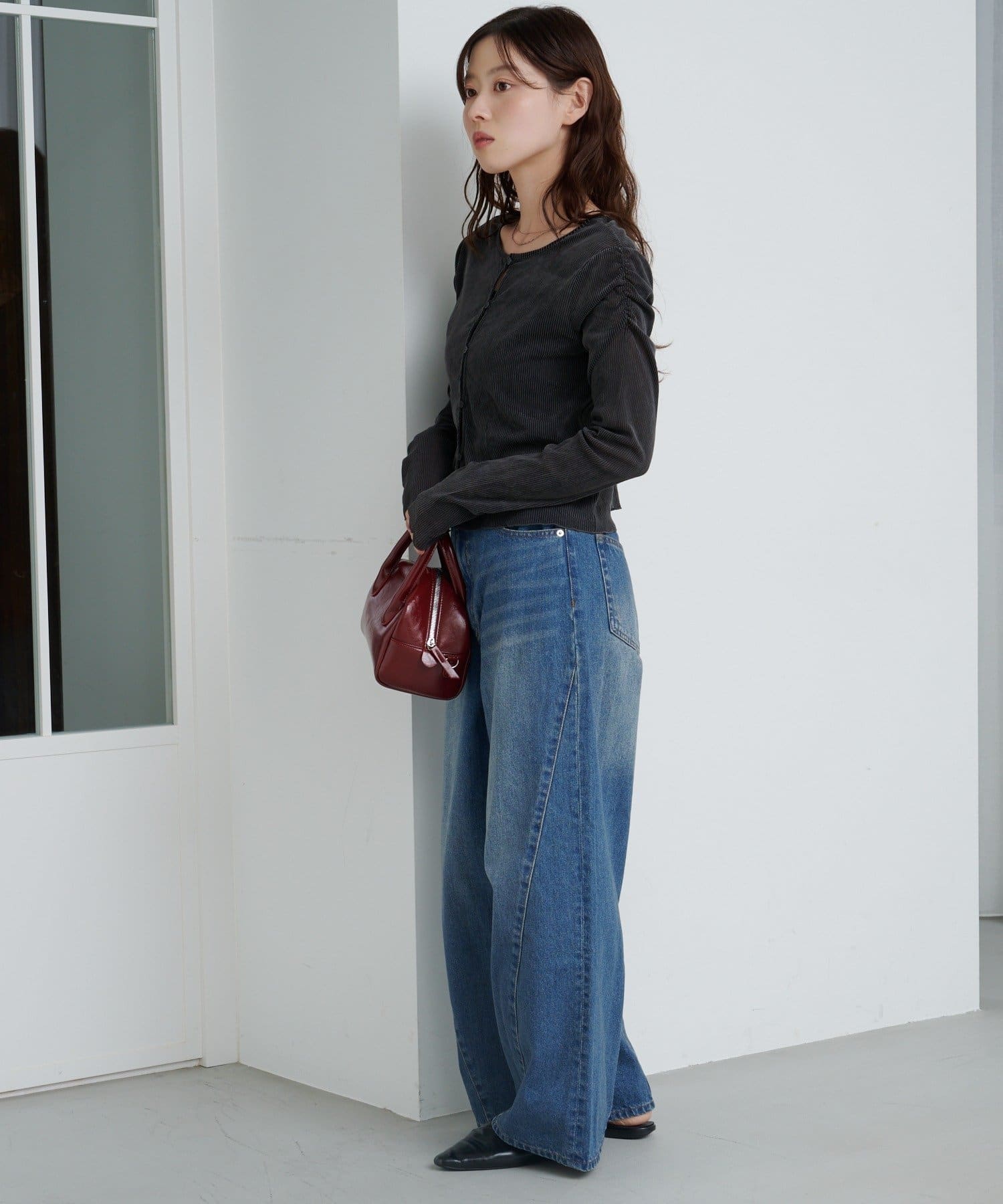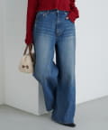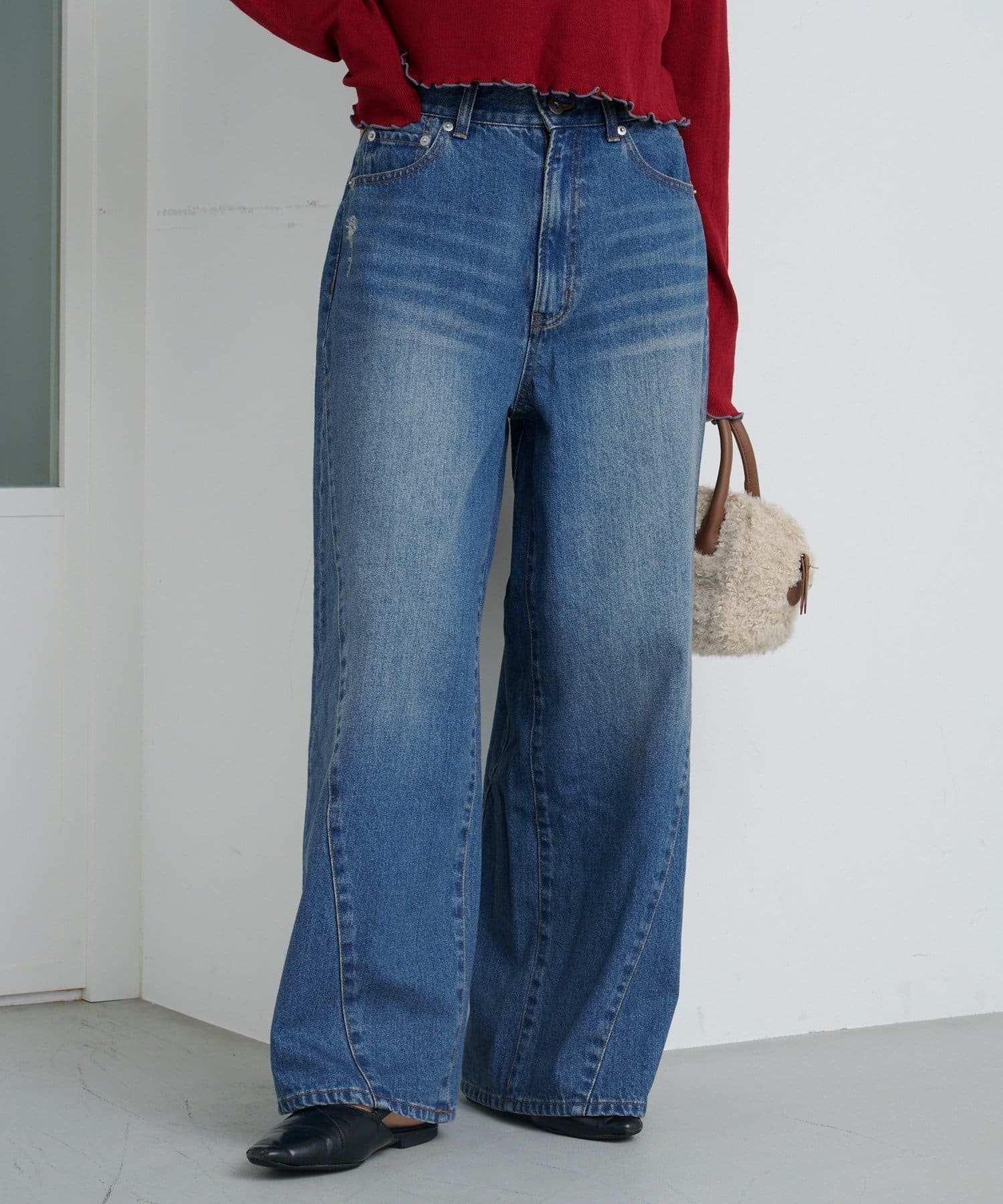 立体的なカーブステッチがポイントの、シルエット美人なワイドデニム