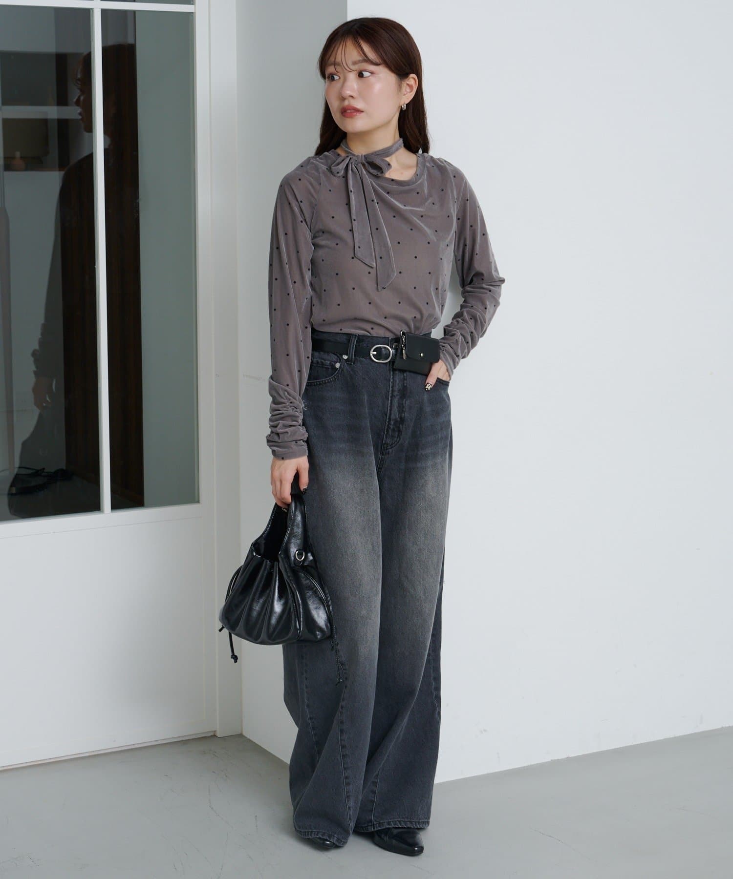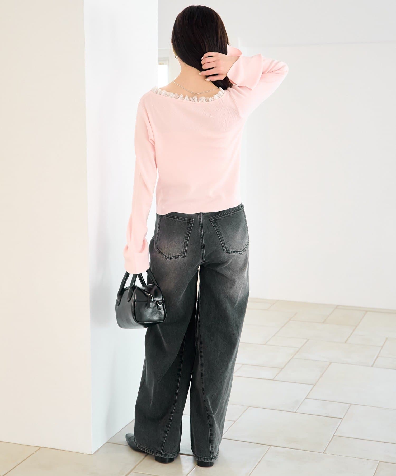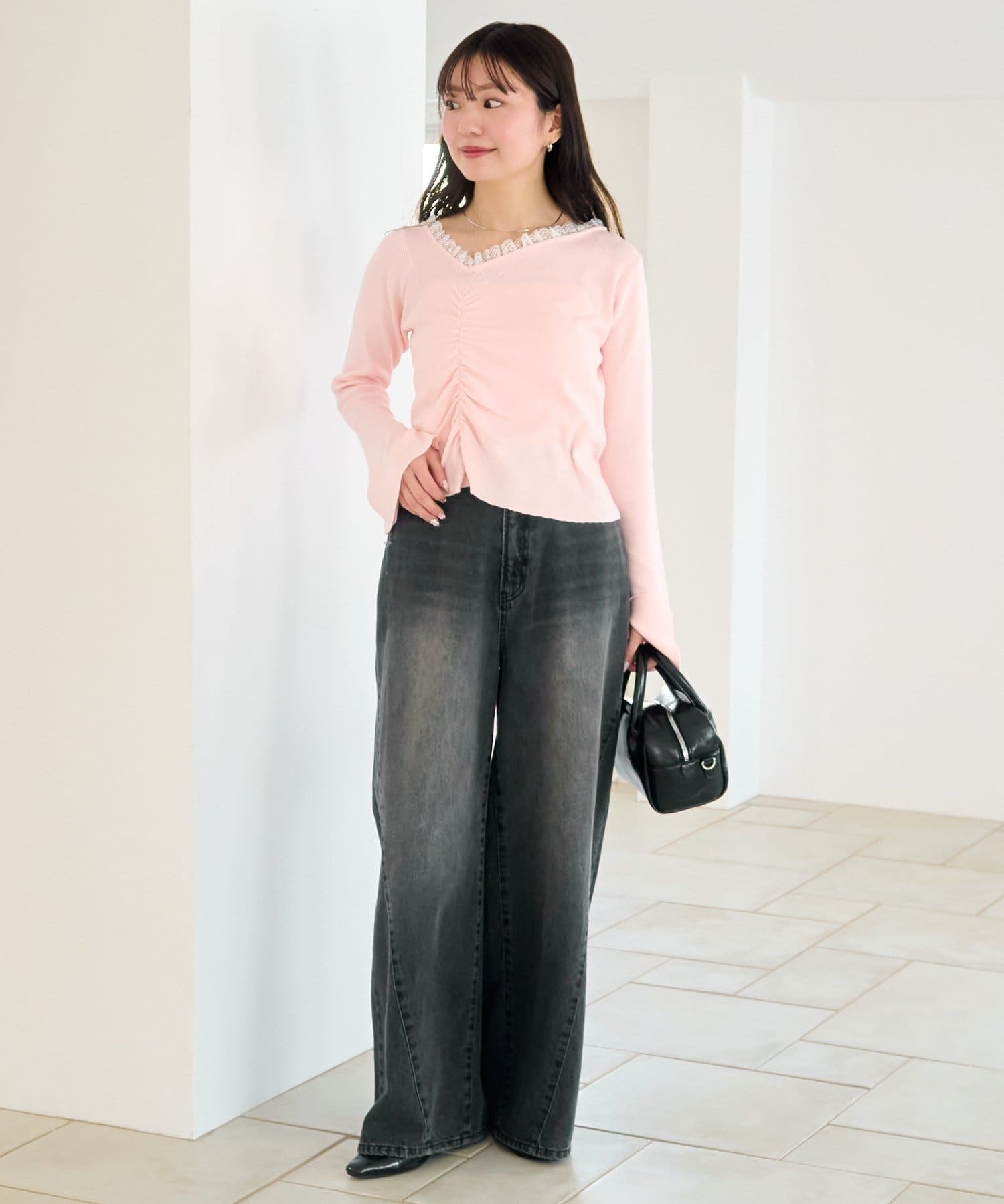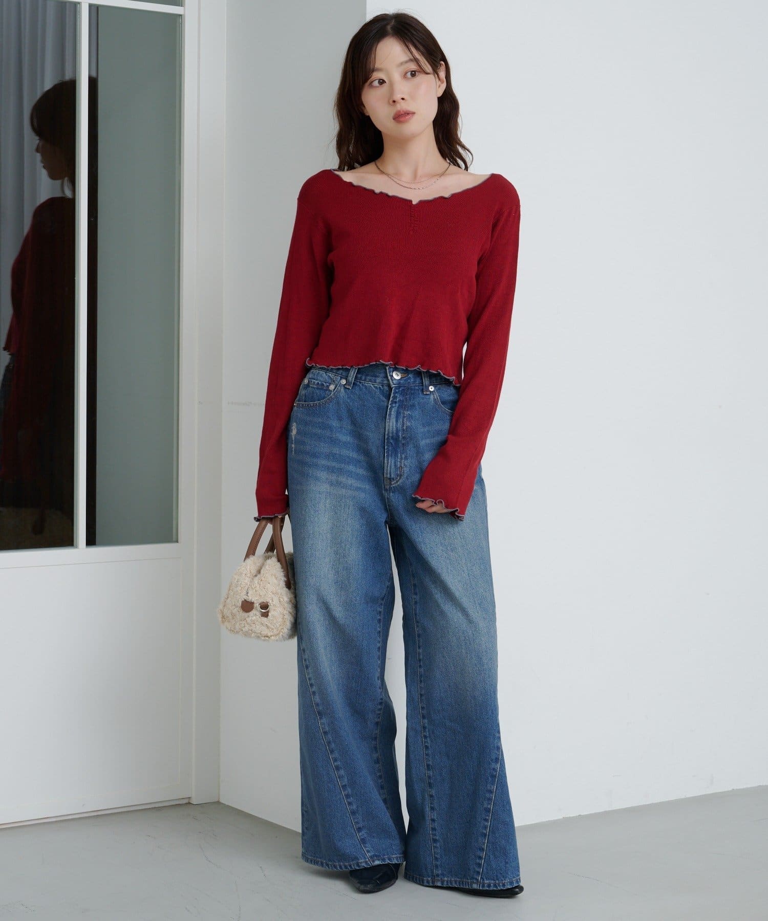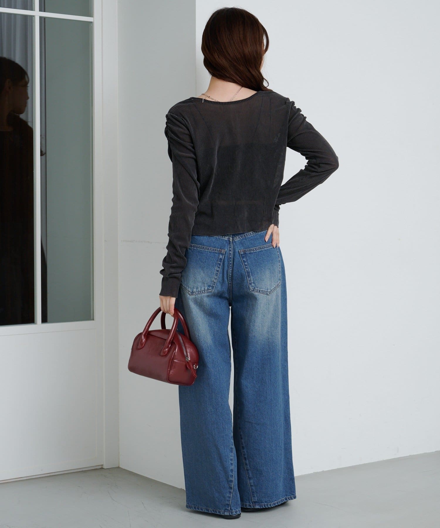 立体的なカーブステッチがポイントの、シルエット美人なワイドデニム