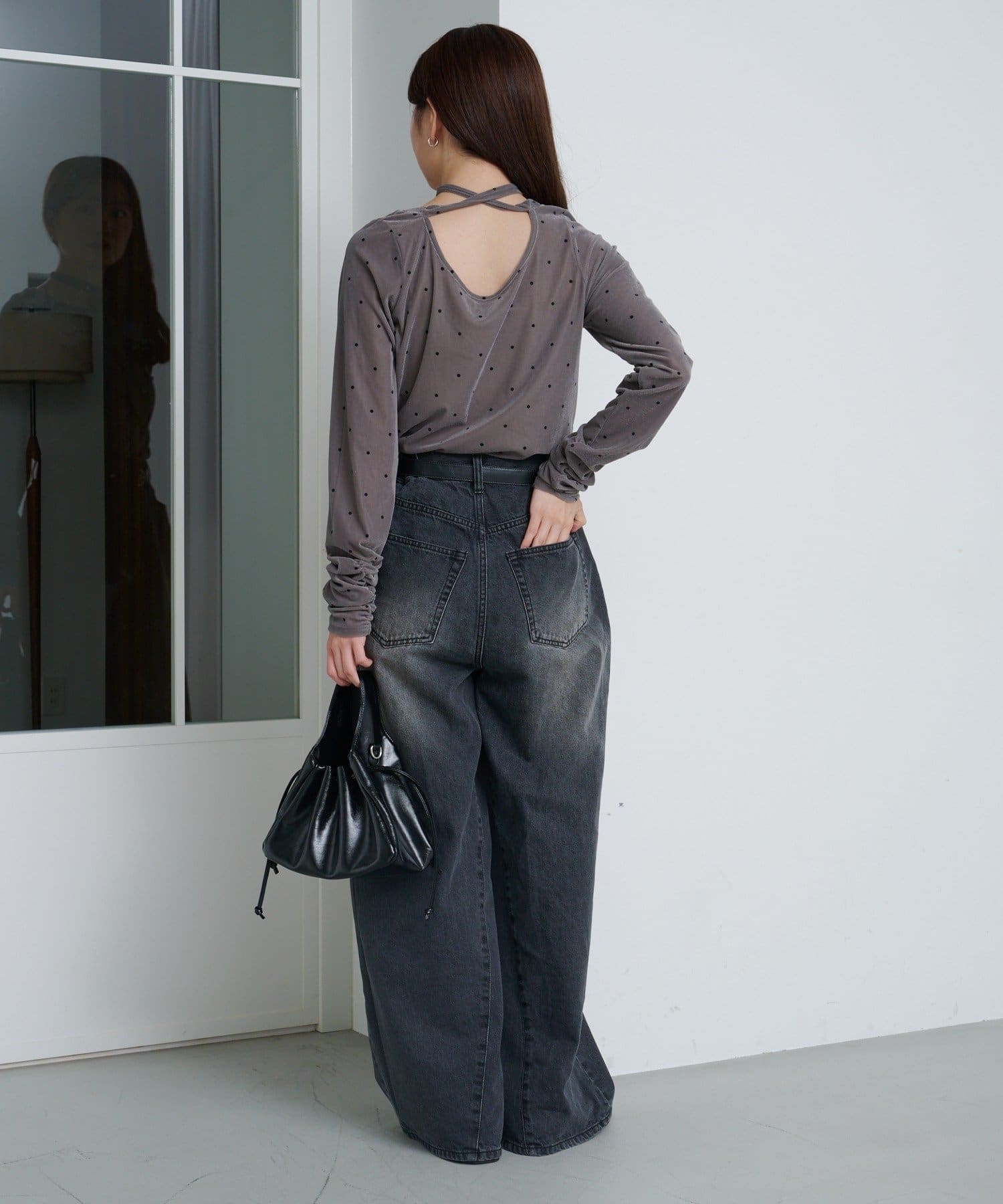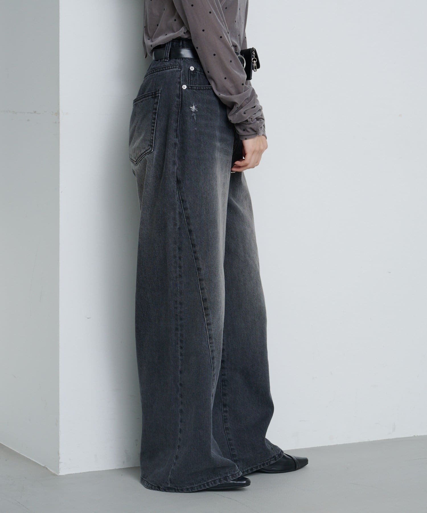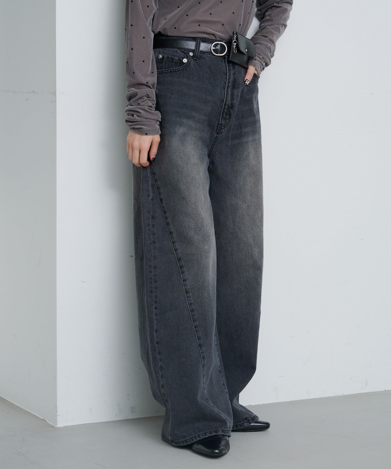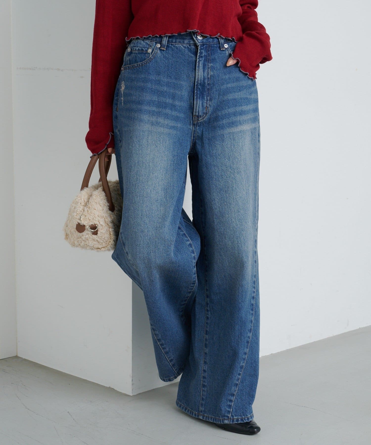 トレンド感のあるワイドシルエットに、立体的なカーブステッチを施した存在感抜群のデニムパンツ。