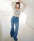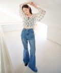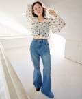 デニムと合わせて、甘さを程よく引いたカジュアルコーデに。