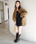 カーディガンを羽織って春らしいふんわりレイヤードに。