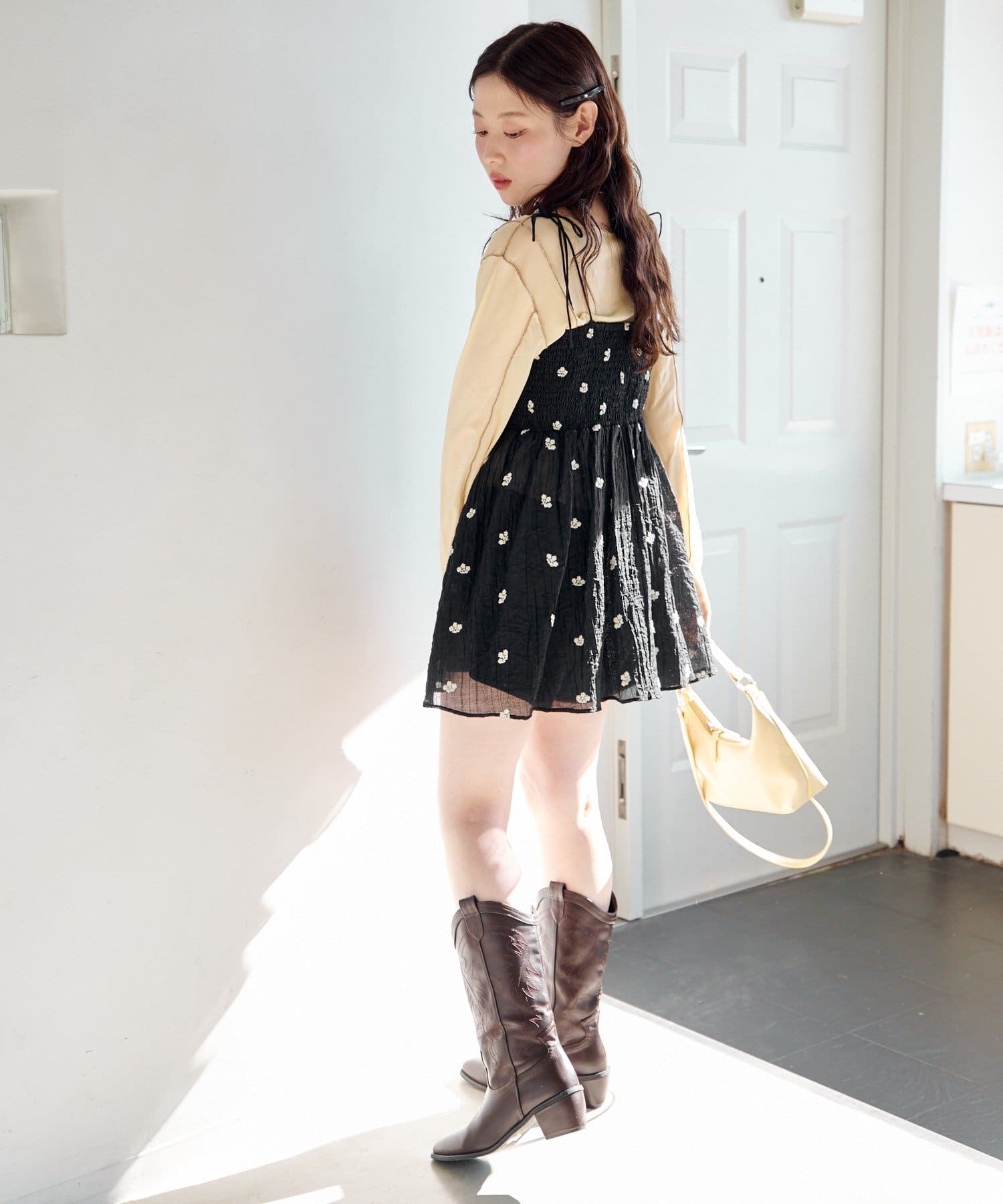 シアーインナーを合わせて、ふんわりガーリーに。
