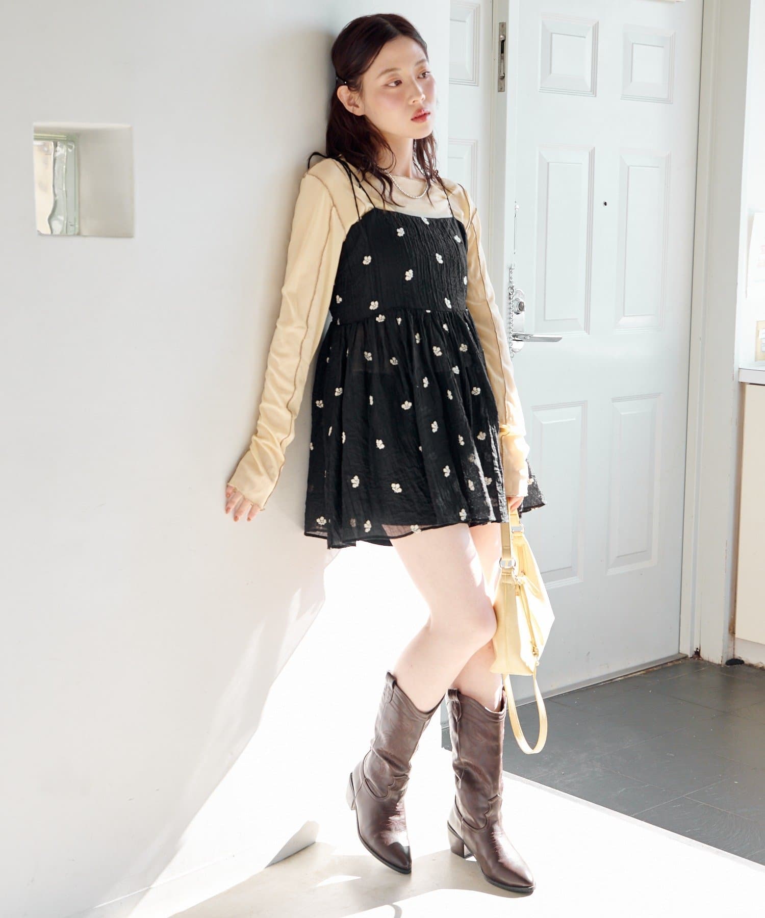 繊細なフラワーステッチが散りばめられたガーリーなキャミチュニック。