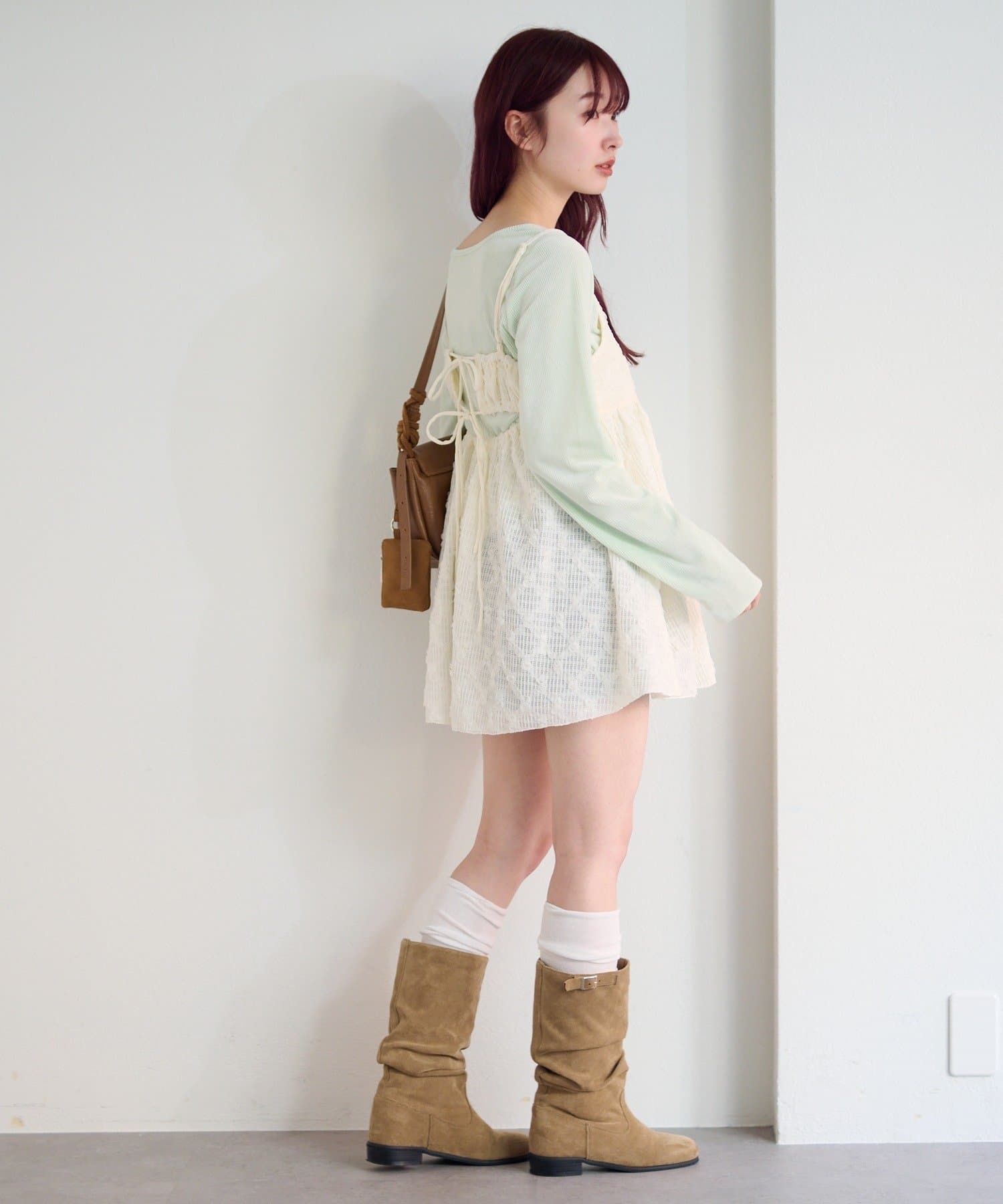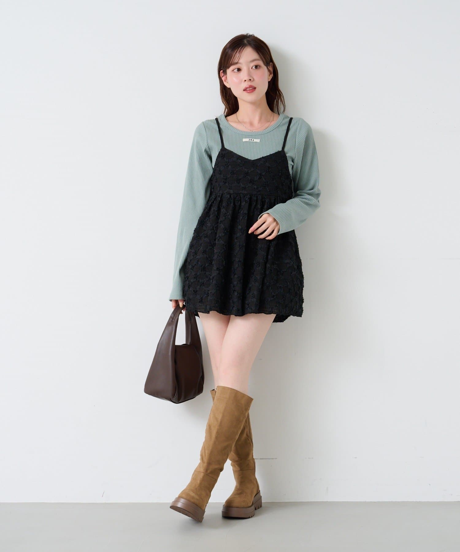 インナーを着て合わせるのもかわいいですし、上にトップスと合わせてもかわいかったです。上にトップスを着てあわせると、トップスとの相性によっては毛玉ができてしまったので注意が必要です。