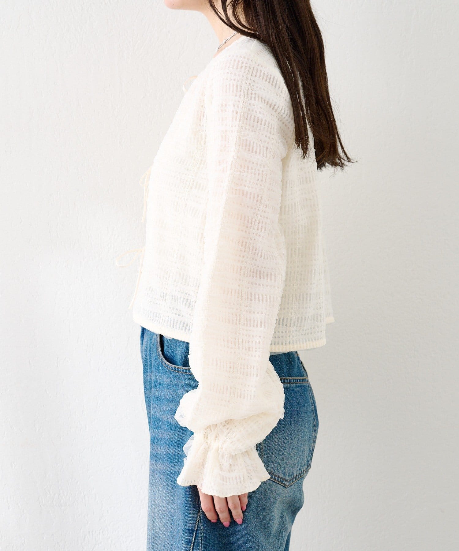 程よい透け感で軽やかな抜け感をプラスして旬の印象に。