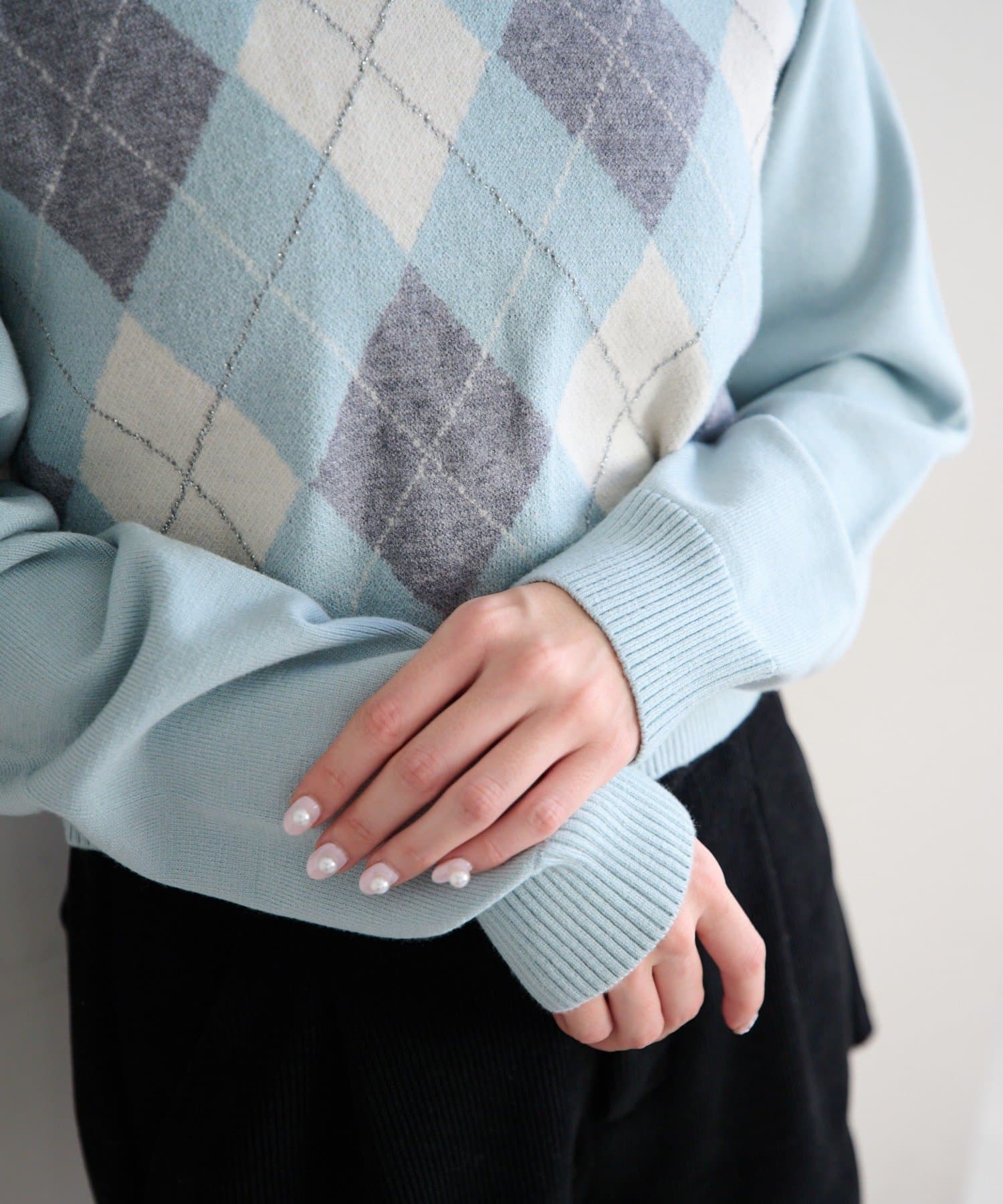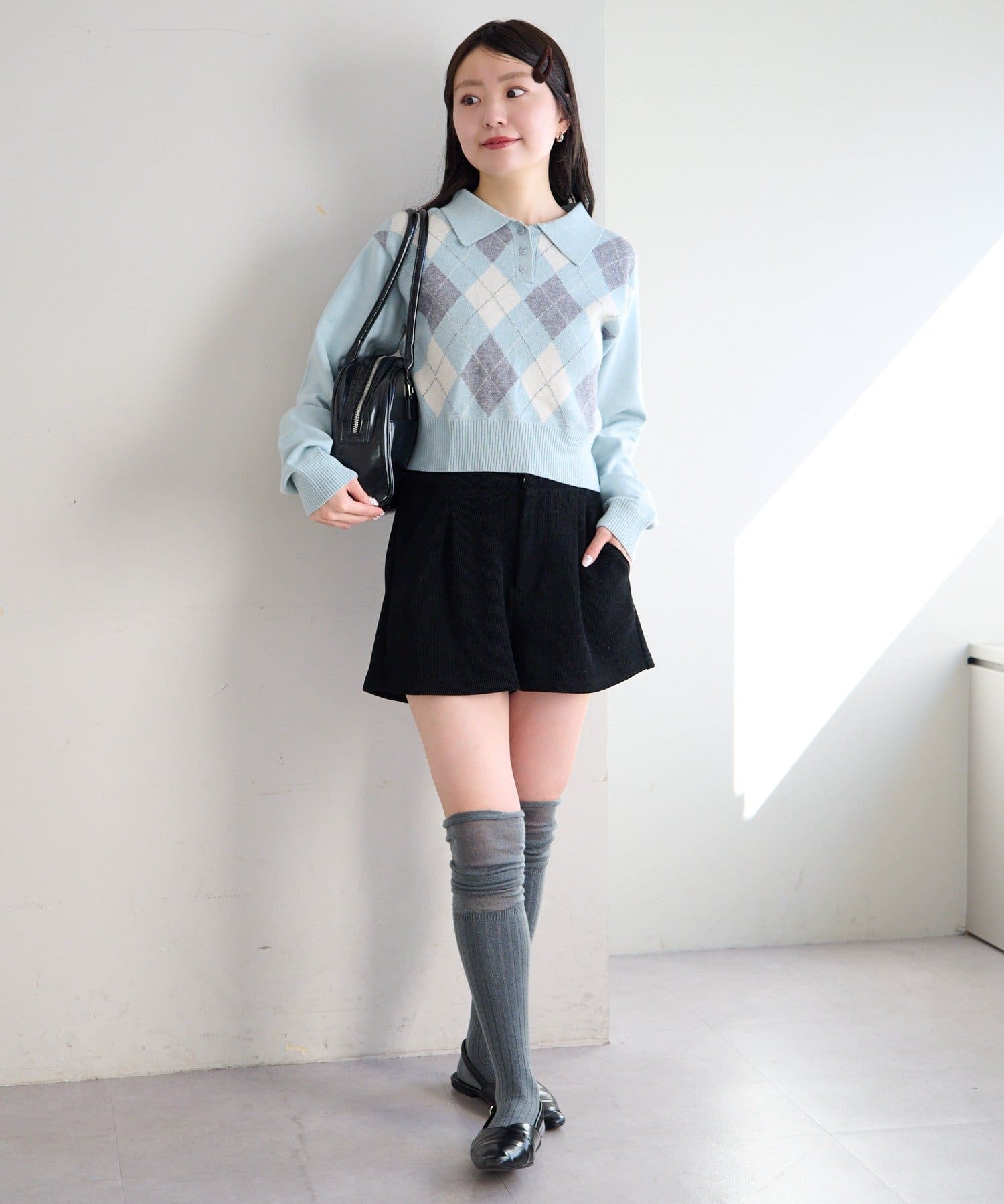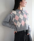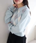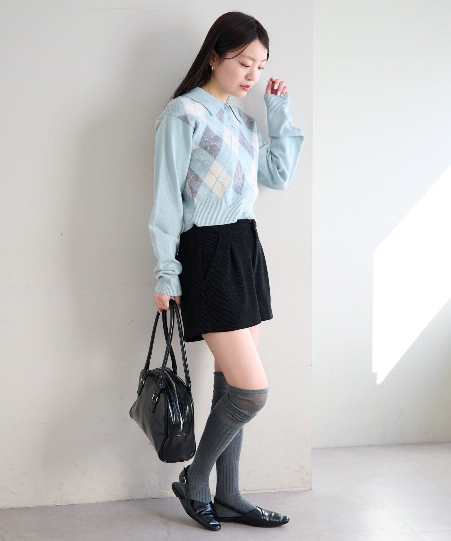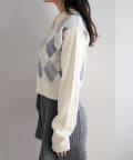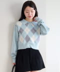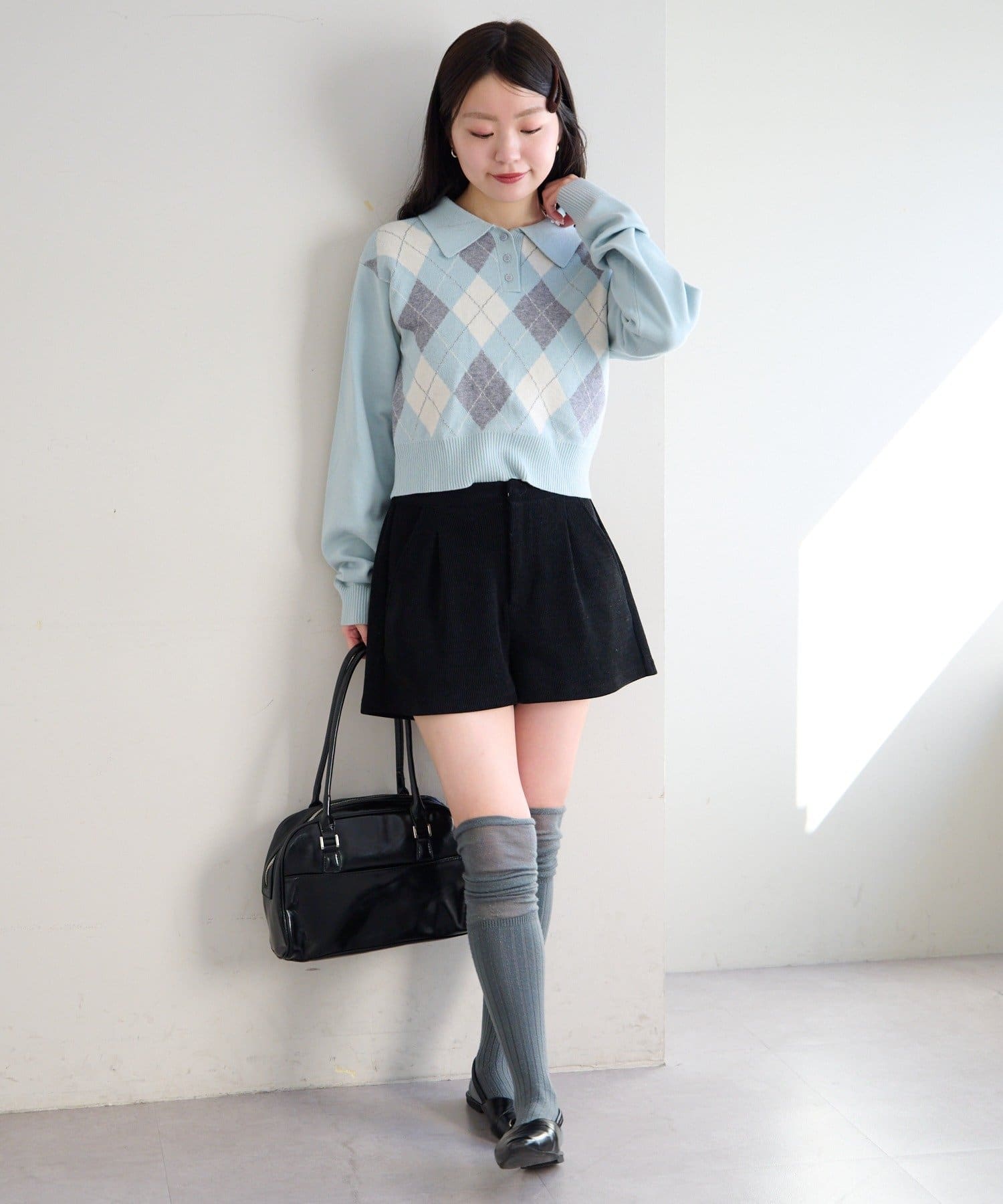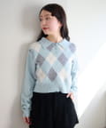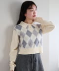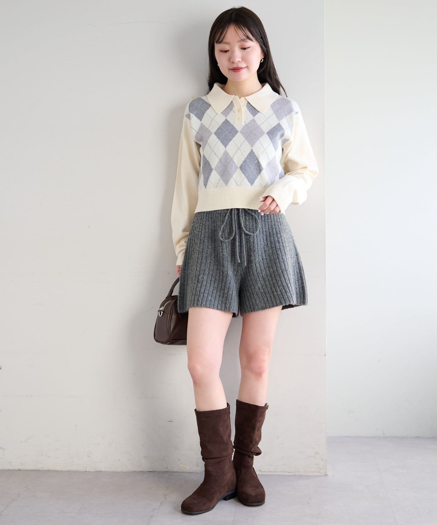 クラシカルなアーガイル柄が目を惹く、ポロデザインのニットトップス。