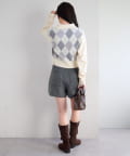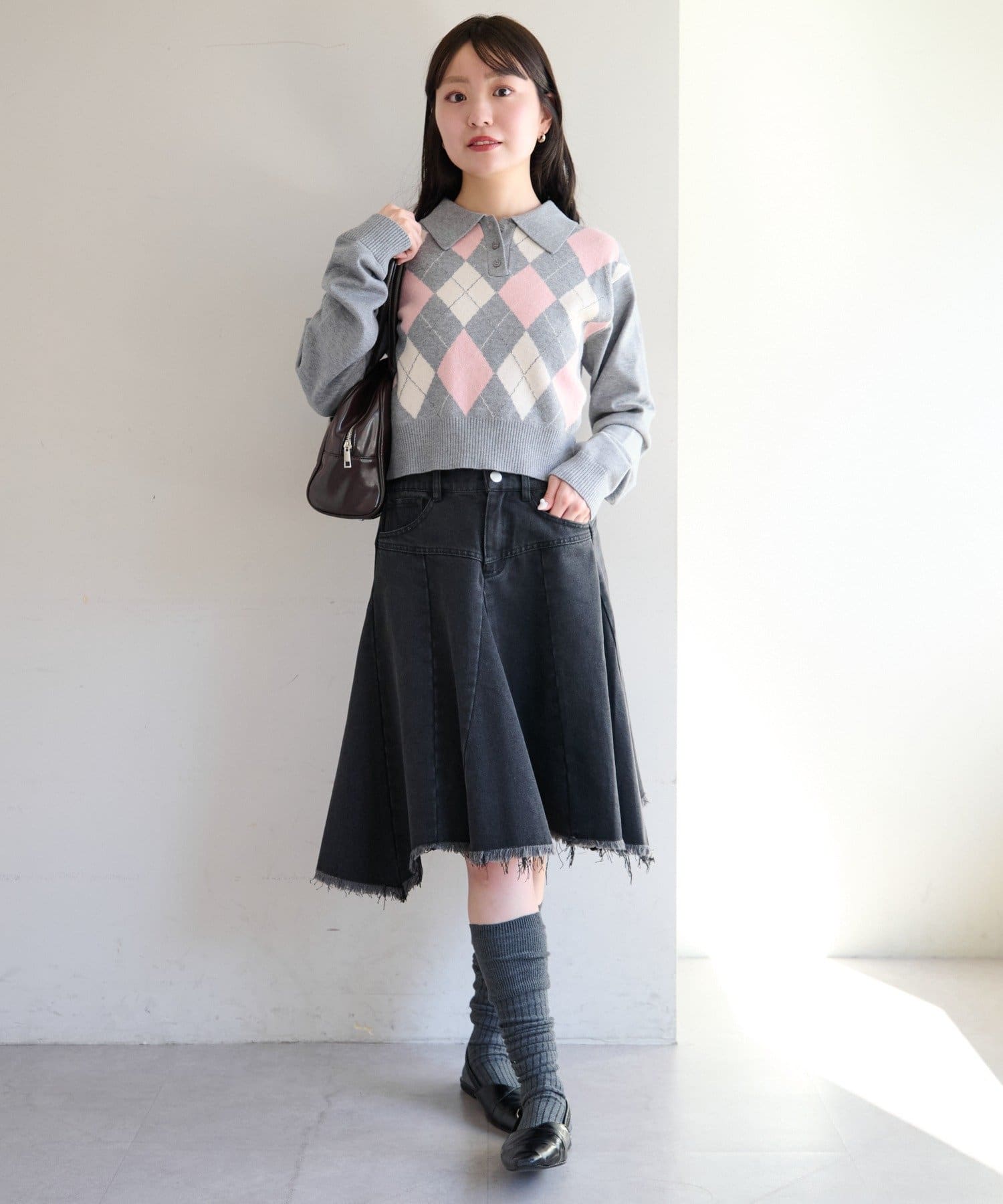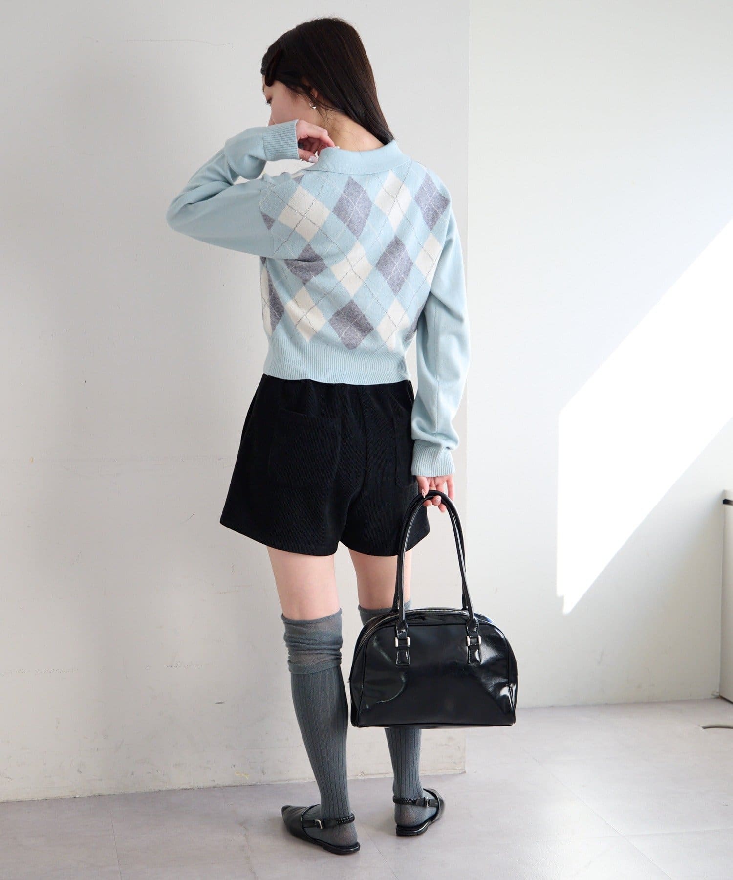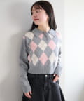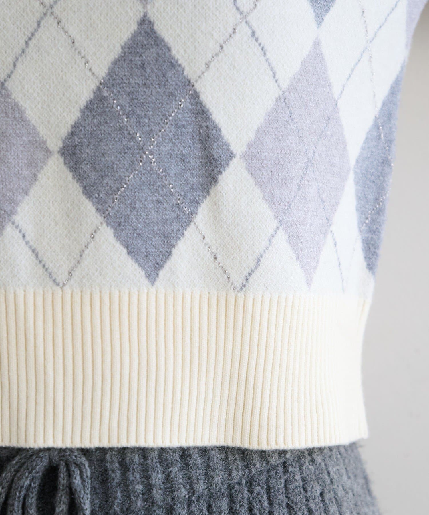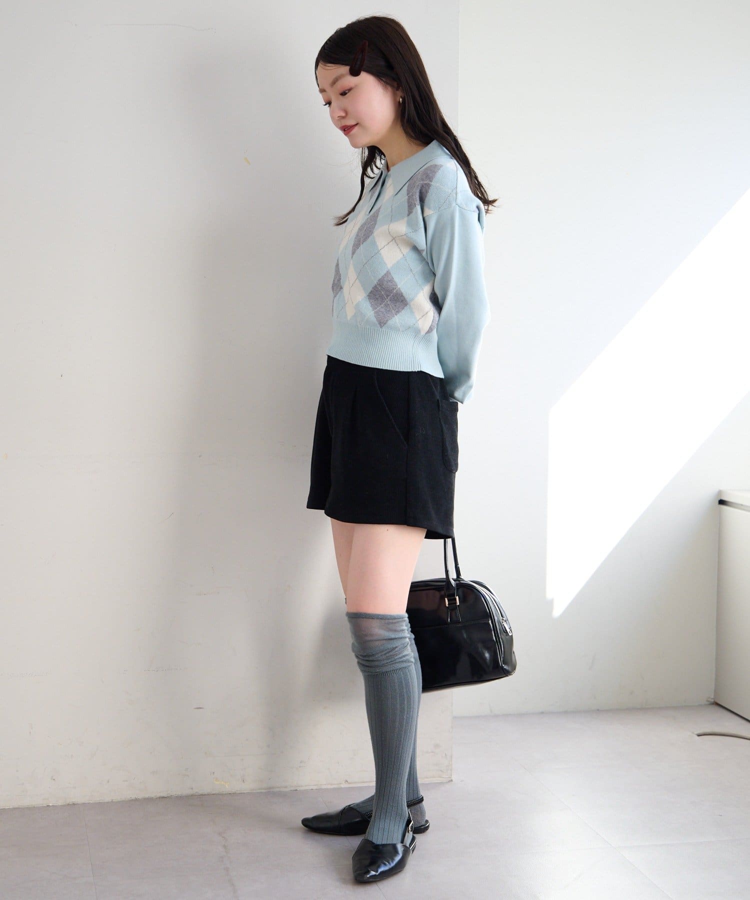 クラシカルなアーガイル柄が目を惹く、ポロデザインのニットトップス。